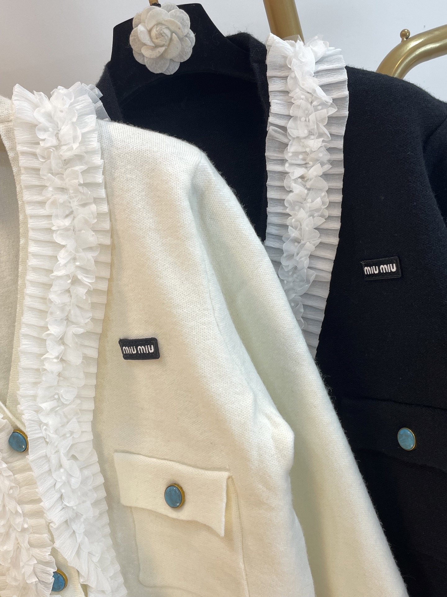 這款衣服是AAAAA 1:1 質量(非常棒). 使用了和原版一模一樣的材料. 商標部分也保持了和繆繆/Miu Miu一樣. 圖片拍攝是實物衣服拍攝, 您所收到的實物保證和我們圖片一模一樣.