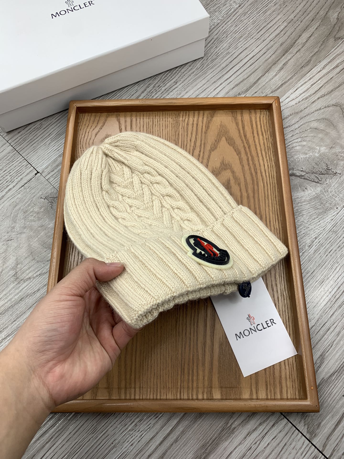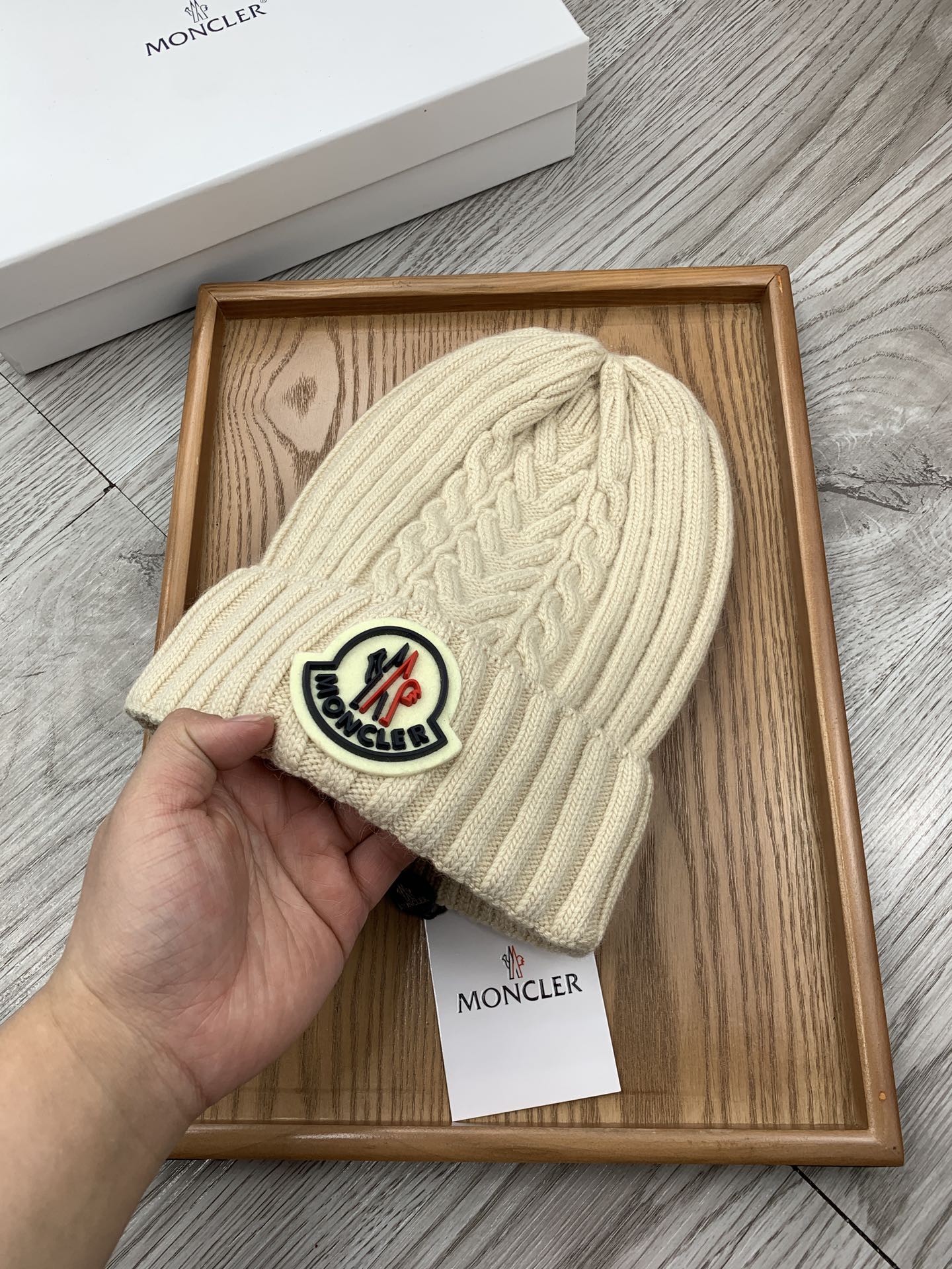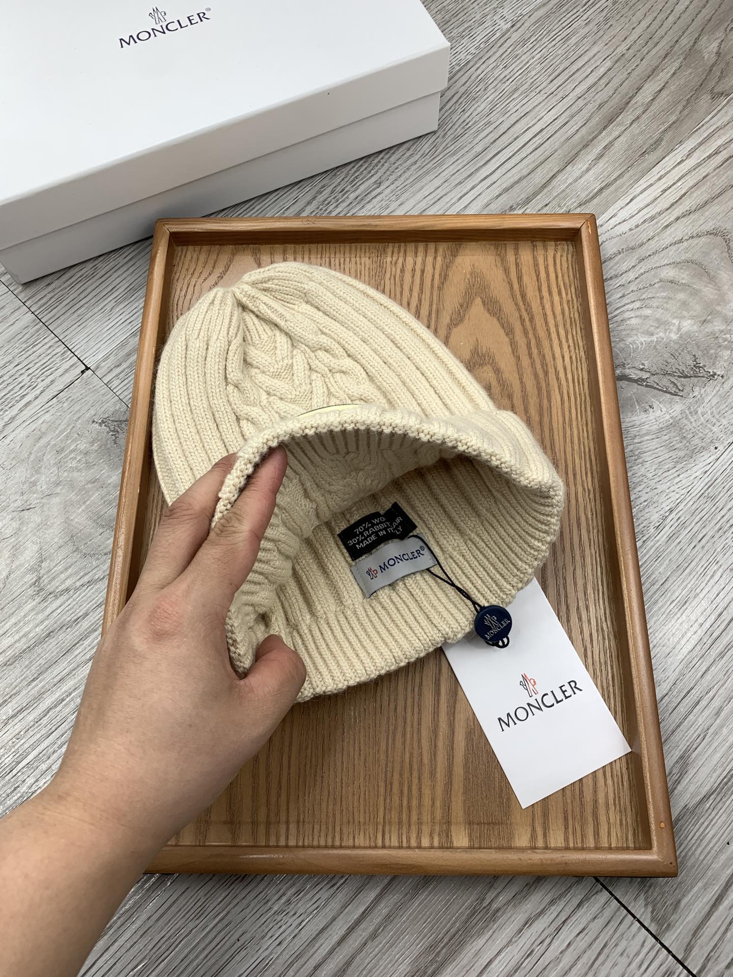 這款帽子是AAAAA 1:1 質量(非常棒). 使用了和原版一模一樣的材料. 商標部分也保持了和moncler一樣. 圖片拍攝是實物帽子拍攝, 您所收到的實物保證和我們圖片一模一樣.