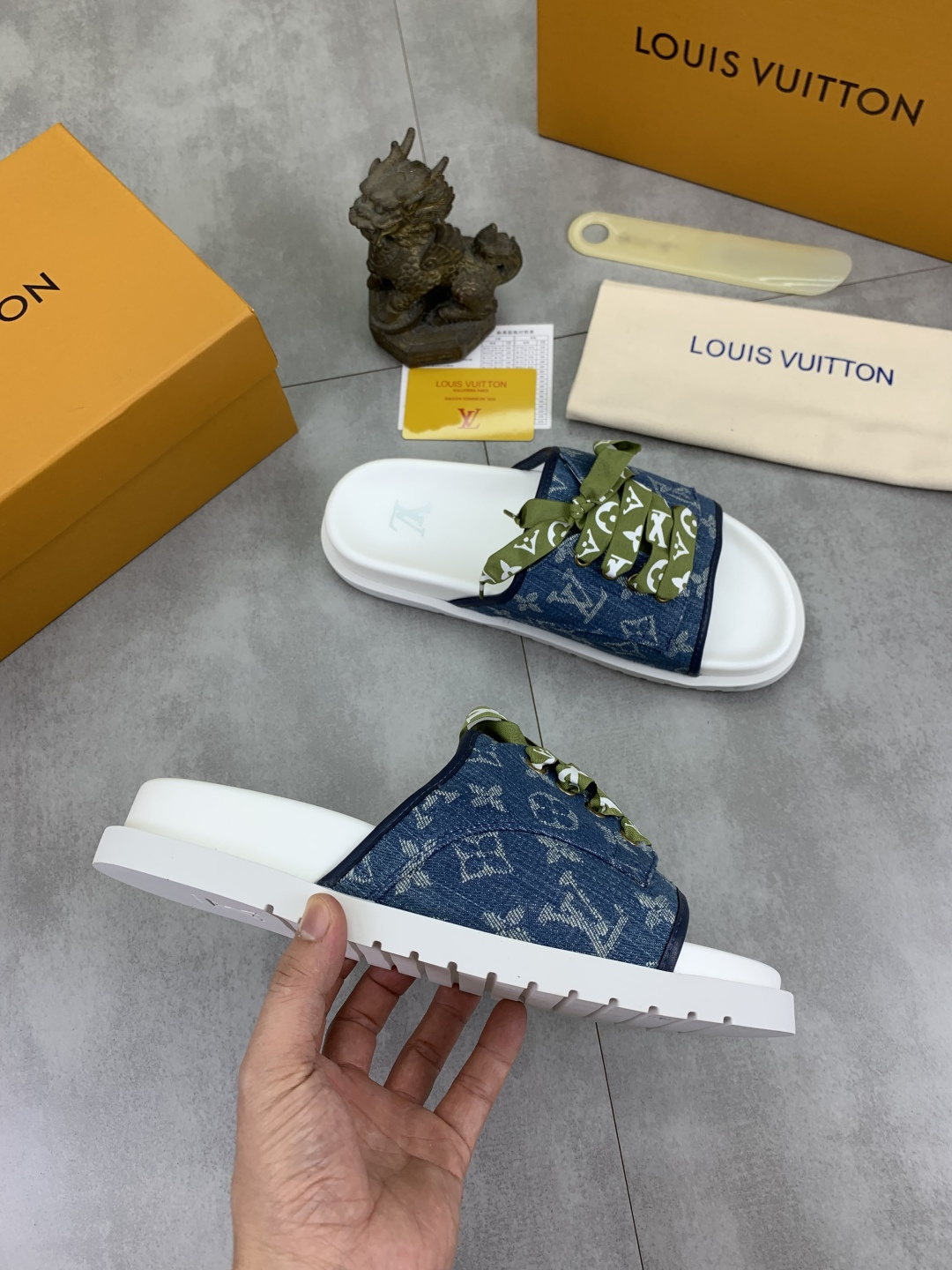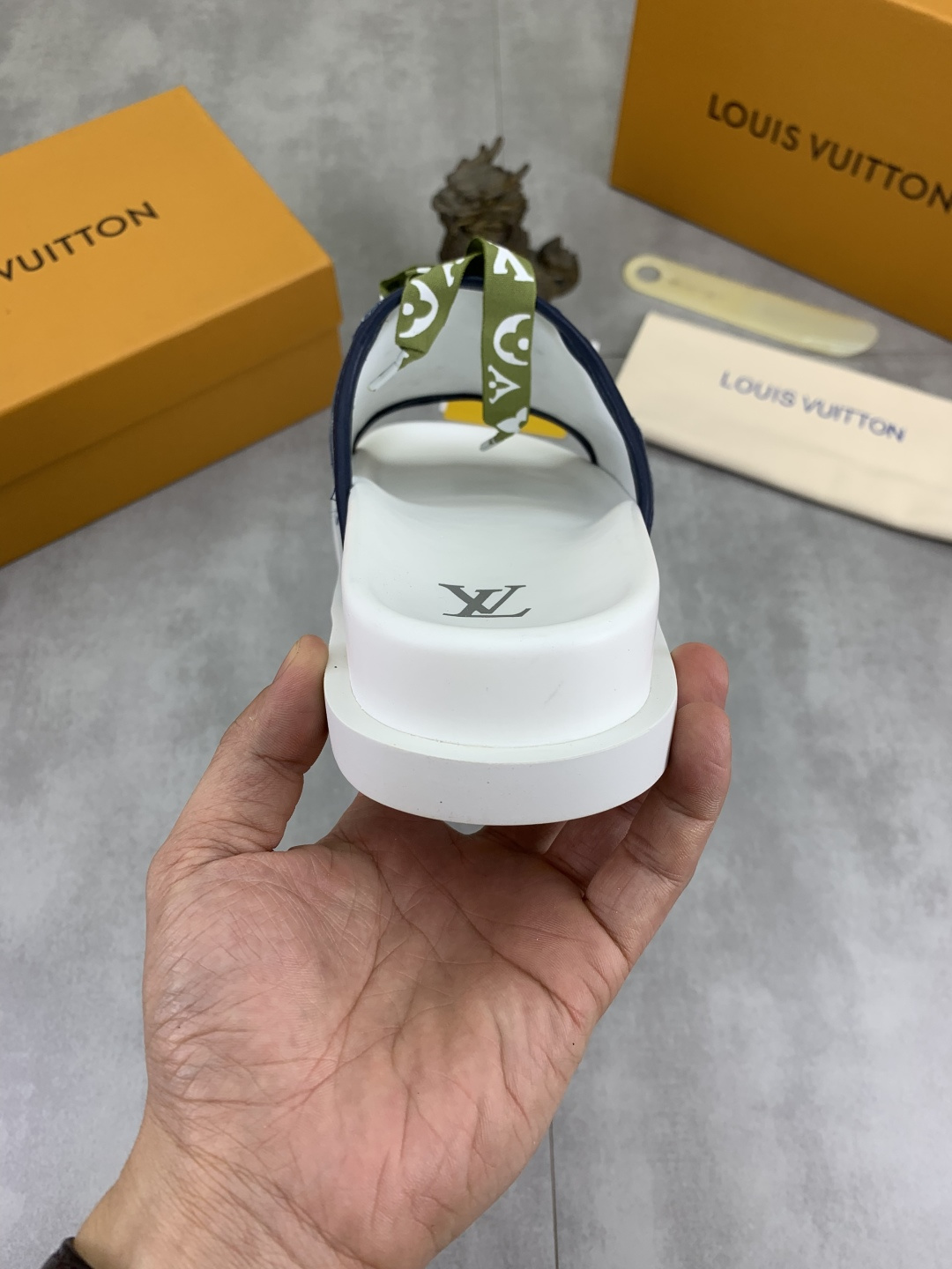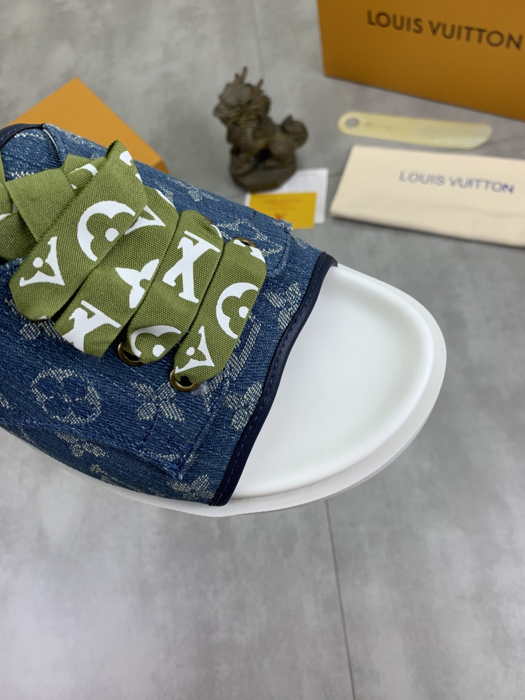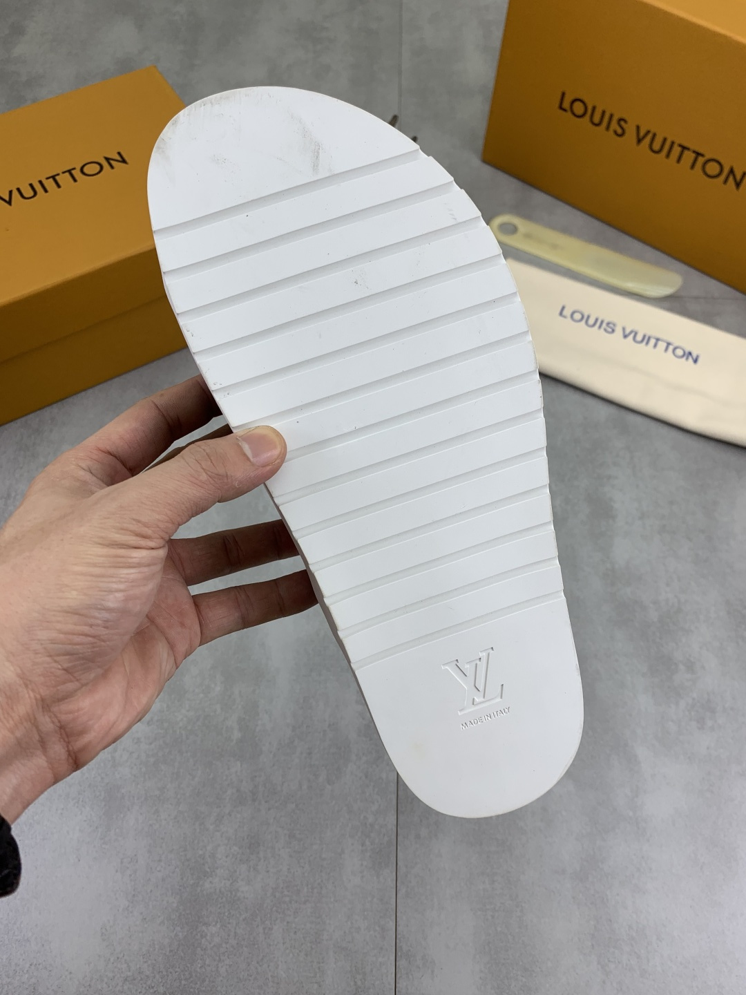 這款鞋子是AAAAA 1:1 質量(非常棒). 使用了和原版一模一樣的材料. 商標部分也保持了和路易威登/Louis Vuitton一樣. 圖片拍攝是實物鞋子拍攝, 您所收到的實物保證和我們圖片一模一樣.