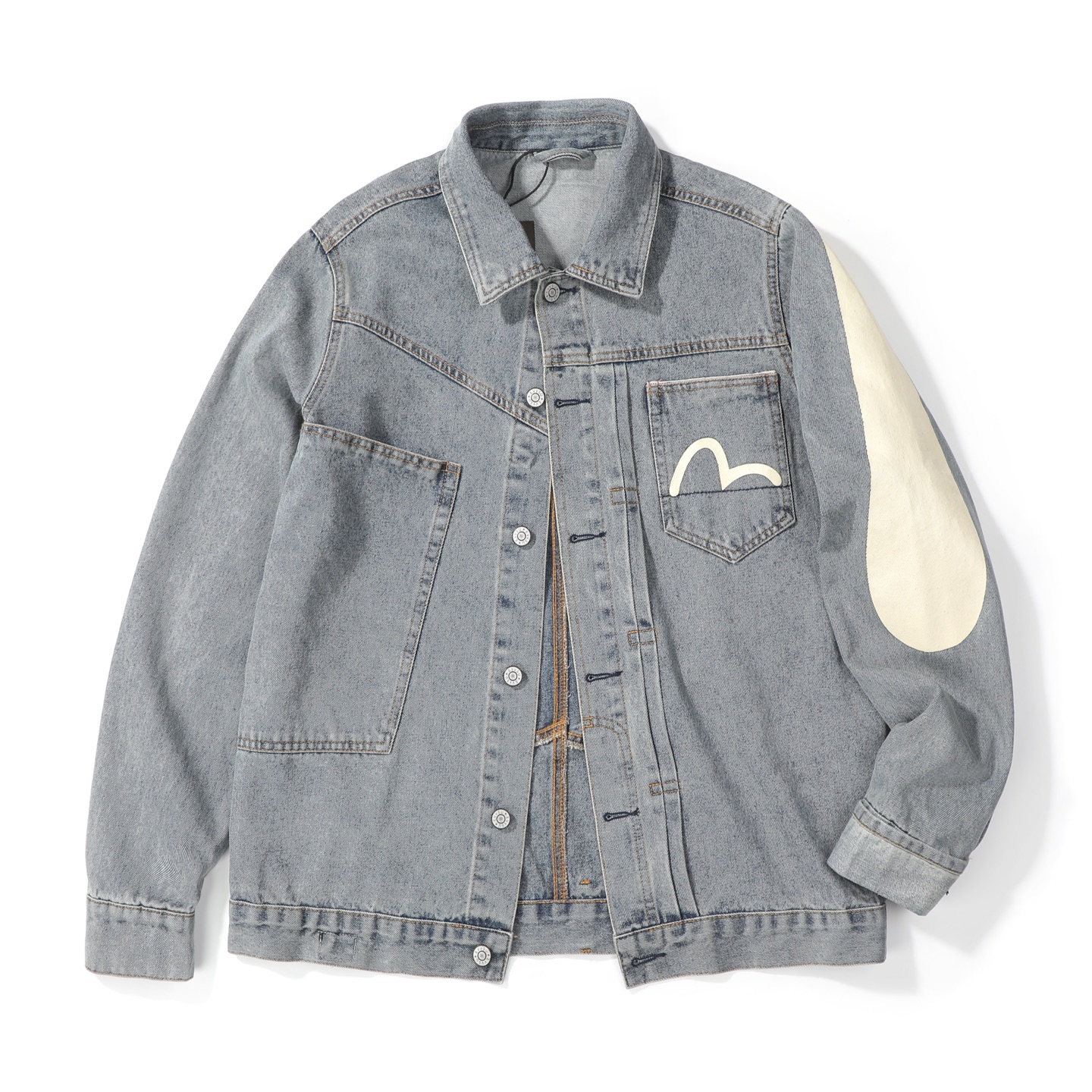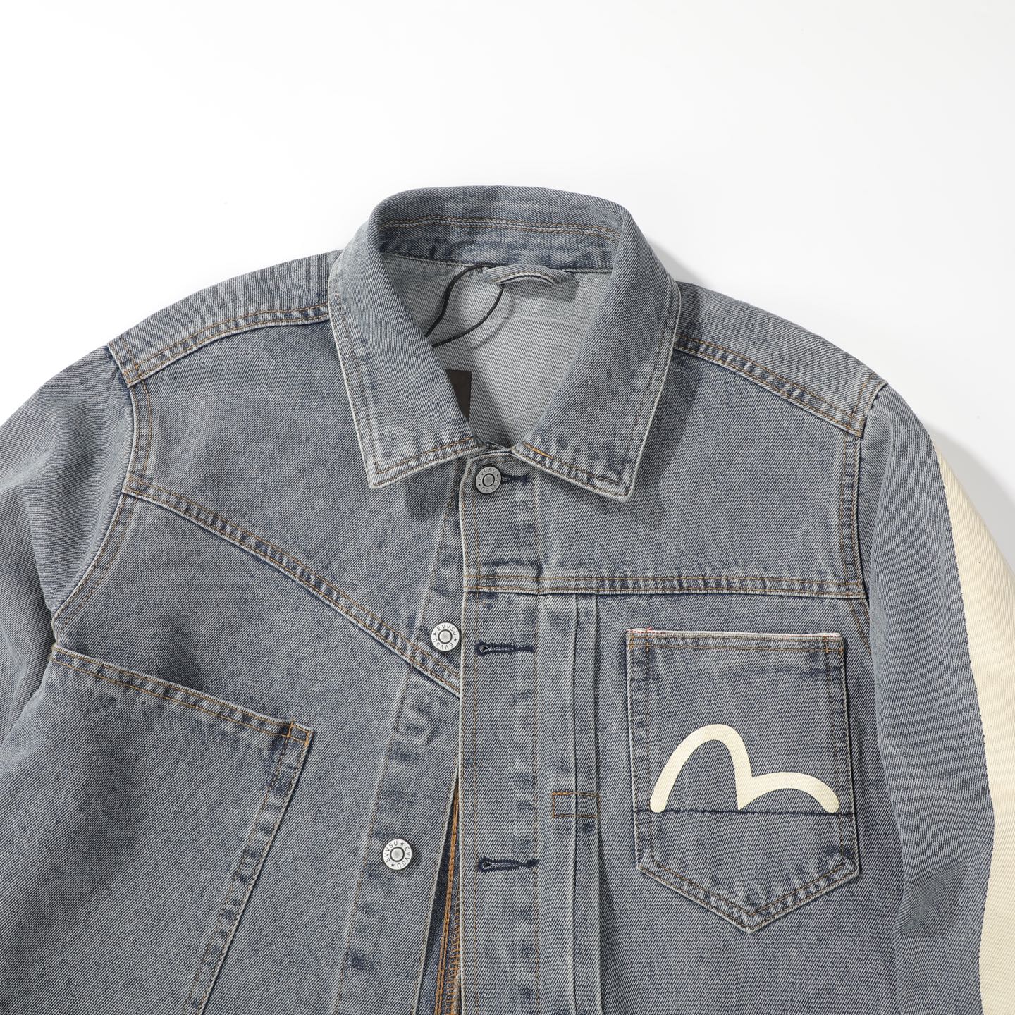 這款衣服是AAAAA 1:1 質量(非常棒). 使用了和原版一模一樣的材料. 商標部分也保持了和EVISU一樣. 圖片拍攝是實物衣服拍攝, 您所收到的實物保證和我們圖片一模一樣.