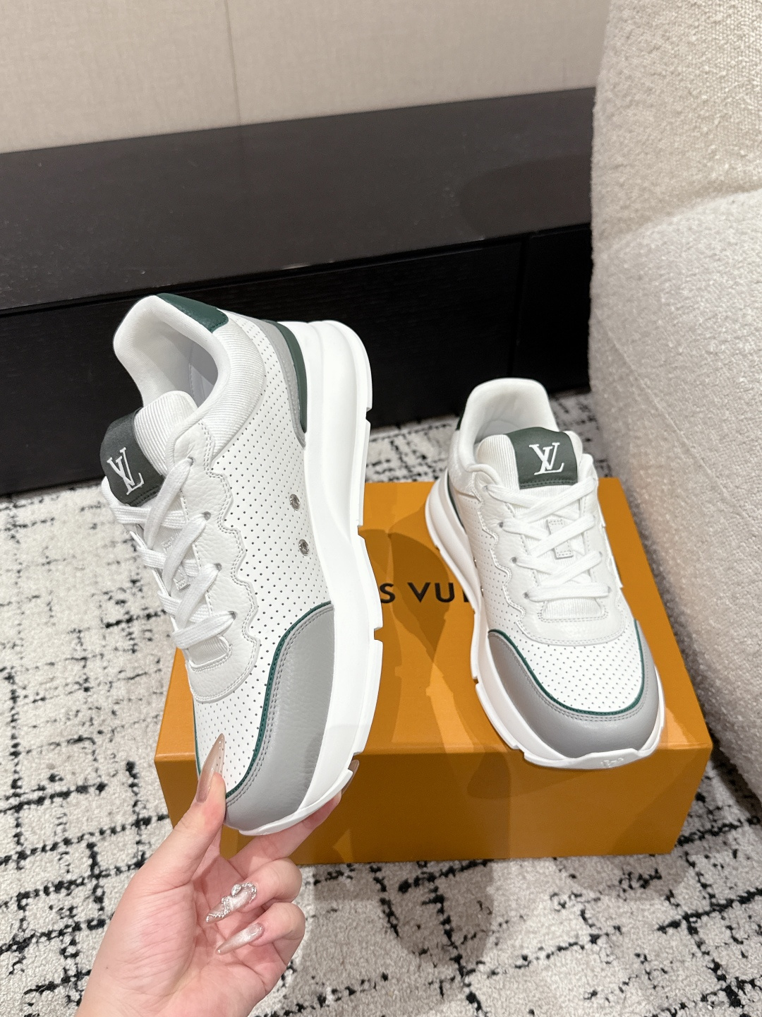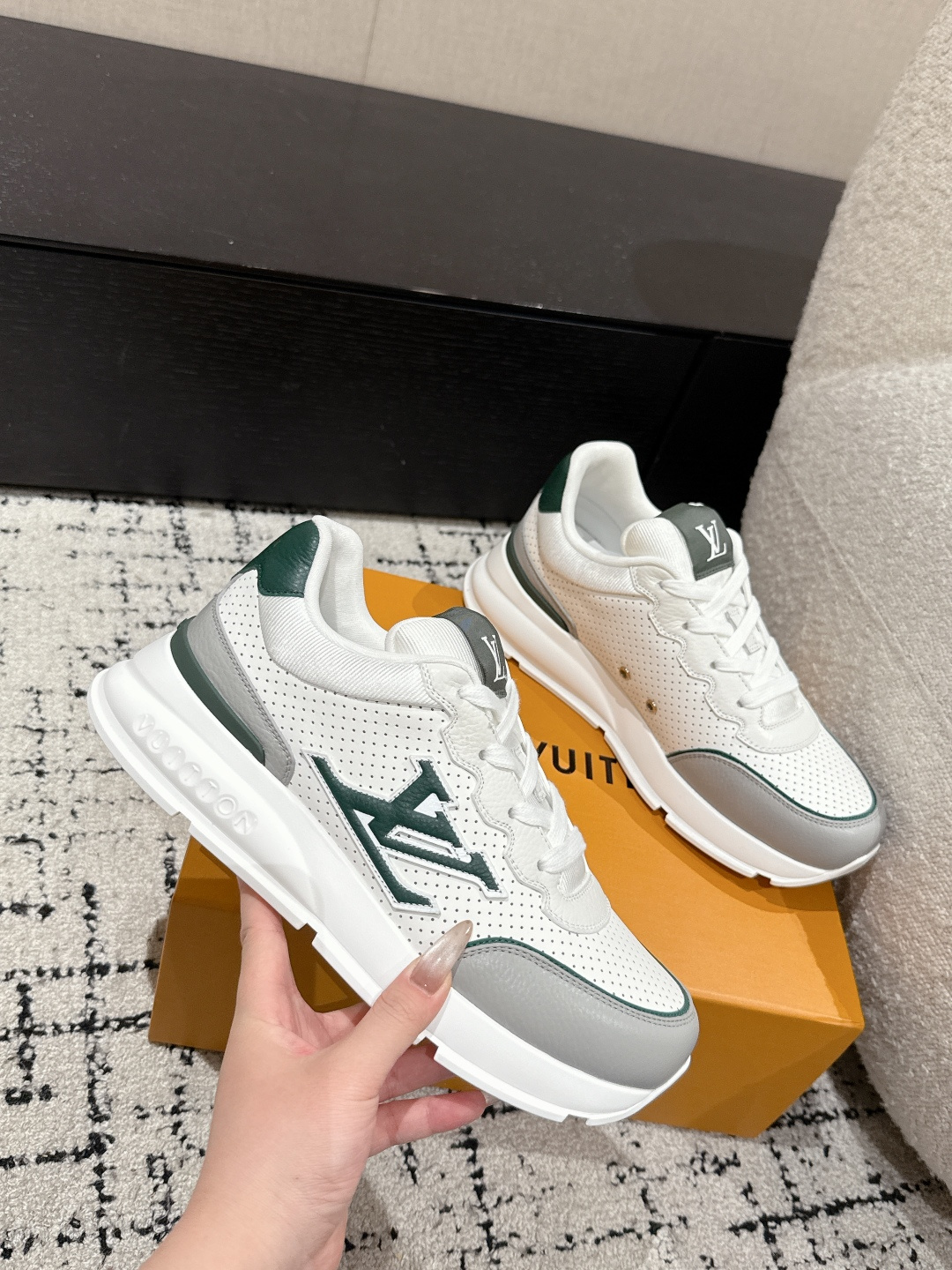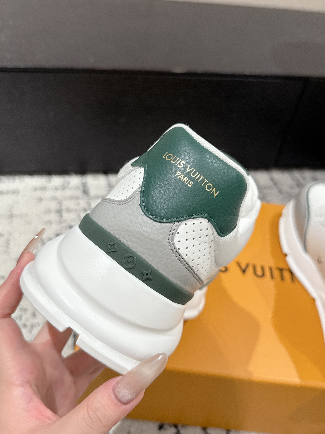 這款鞋子是AAAAA 1:1 質量(非常棒). 使用了和原版一模一樣的材料. 商標部分也保持了和路易威登/Louis Vuitton一樣. 圖片拍攝是實物鞋子拍攝, 您所收到的實物保證和我們圖片一模一樣.