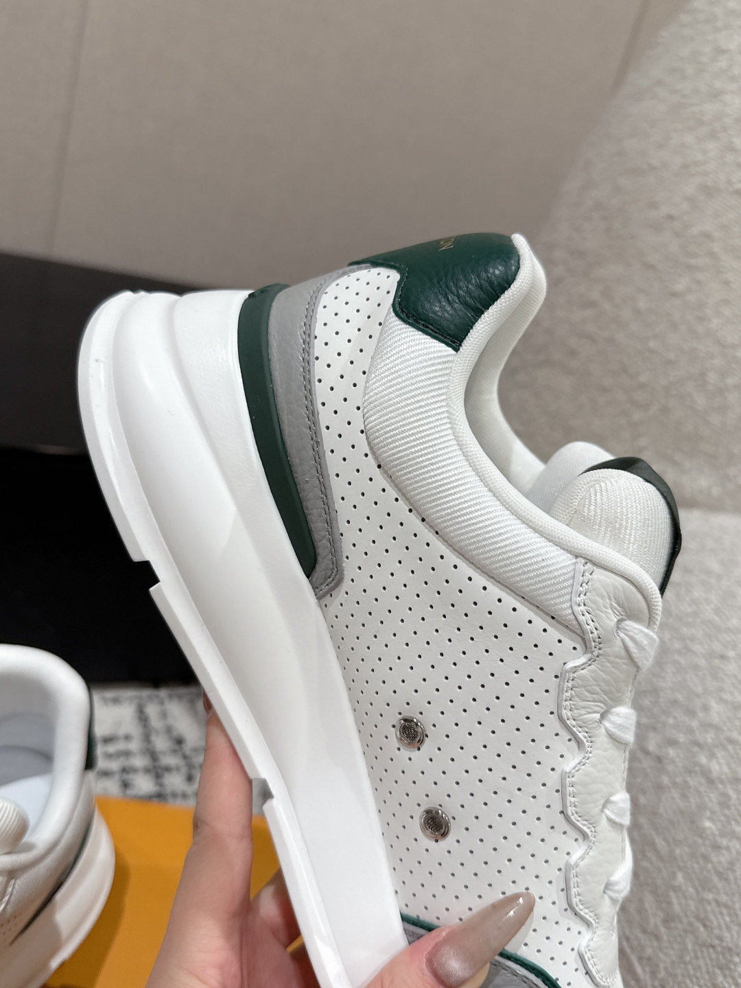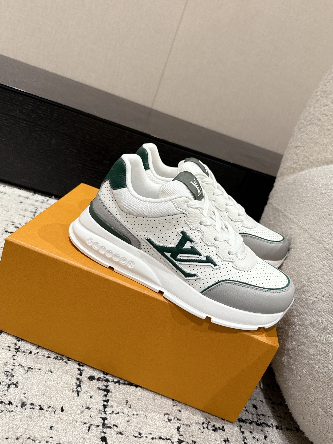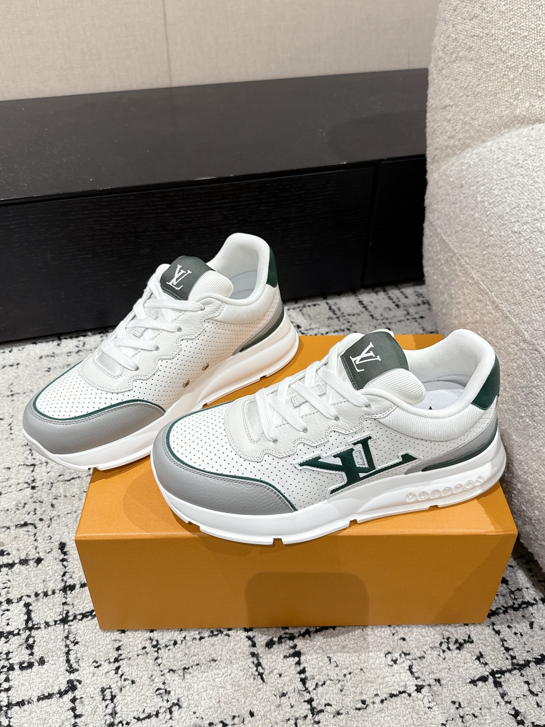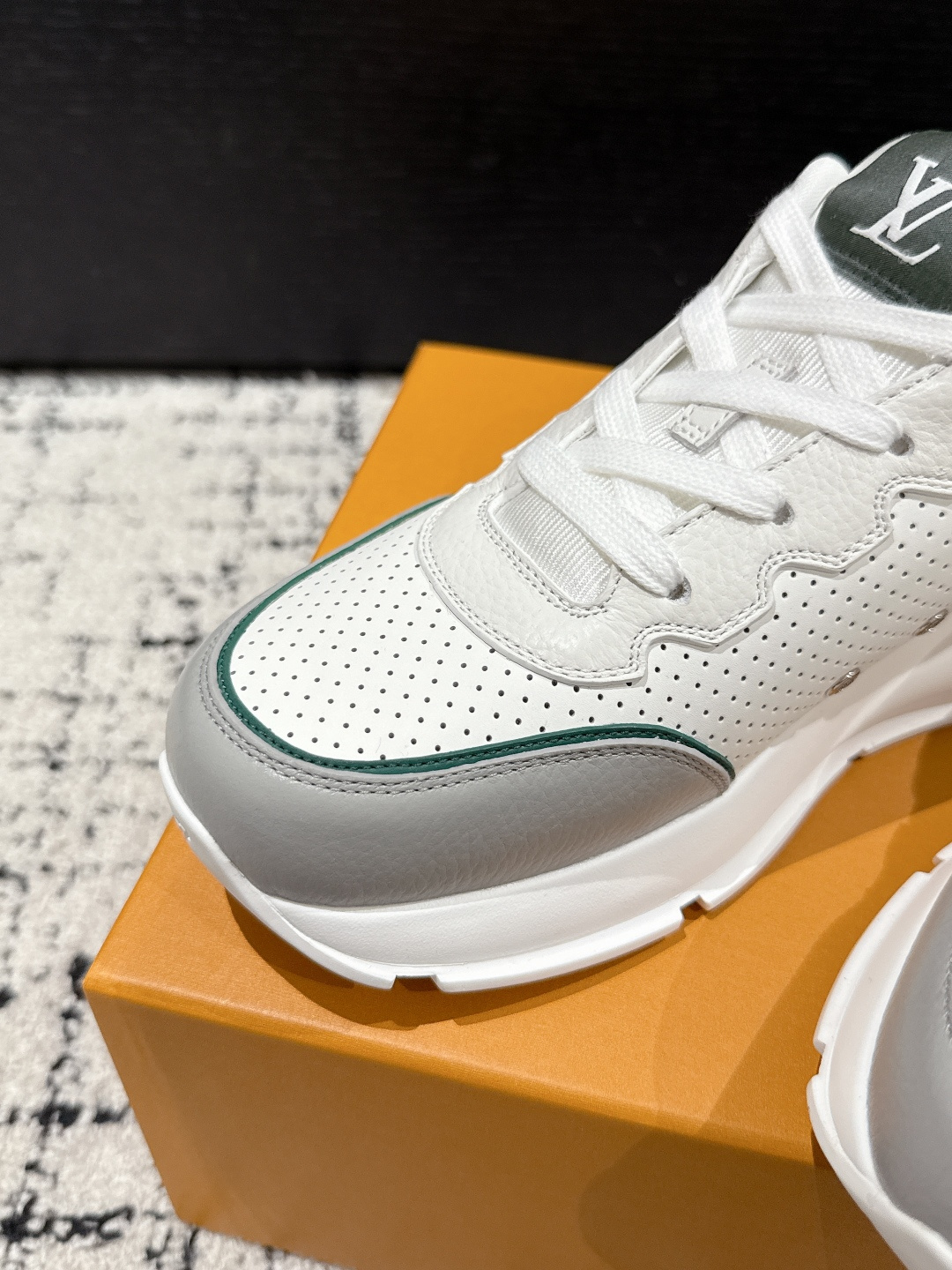 這款鞋子是AAAAA 1:1 質量(非常棒). 使用了和原版一模一樣的材料. 商標部分也保持了和路易威登/Louis Vuitton一樣. 圖片拍攝是實物鞋子拍攝, 您所收到的實物保證和我們圖片一模一樣.