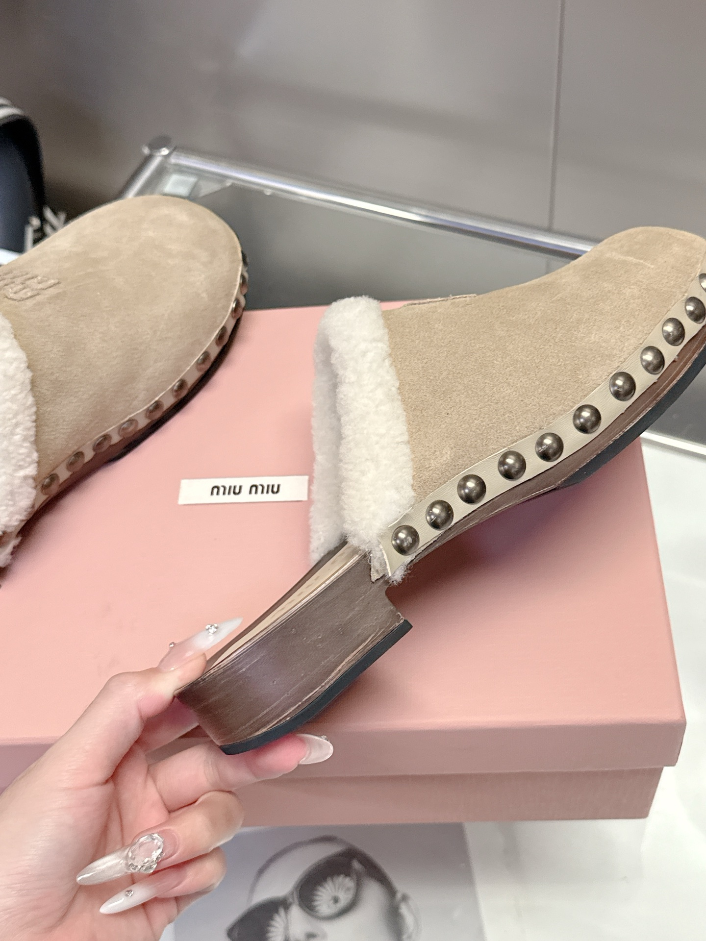 這款鞋子是AAAAA 1:1 質量(非常棒). 使用了和原版一模一樣的材料. 商標部分也保持了和繆繆/Miu Miu一樣. 圖片拍攝是實物鞋子拍攝, 您所收到的實物保證和我們圖片一模一樣.