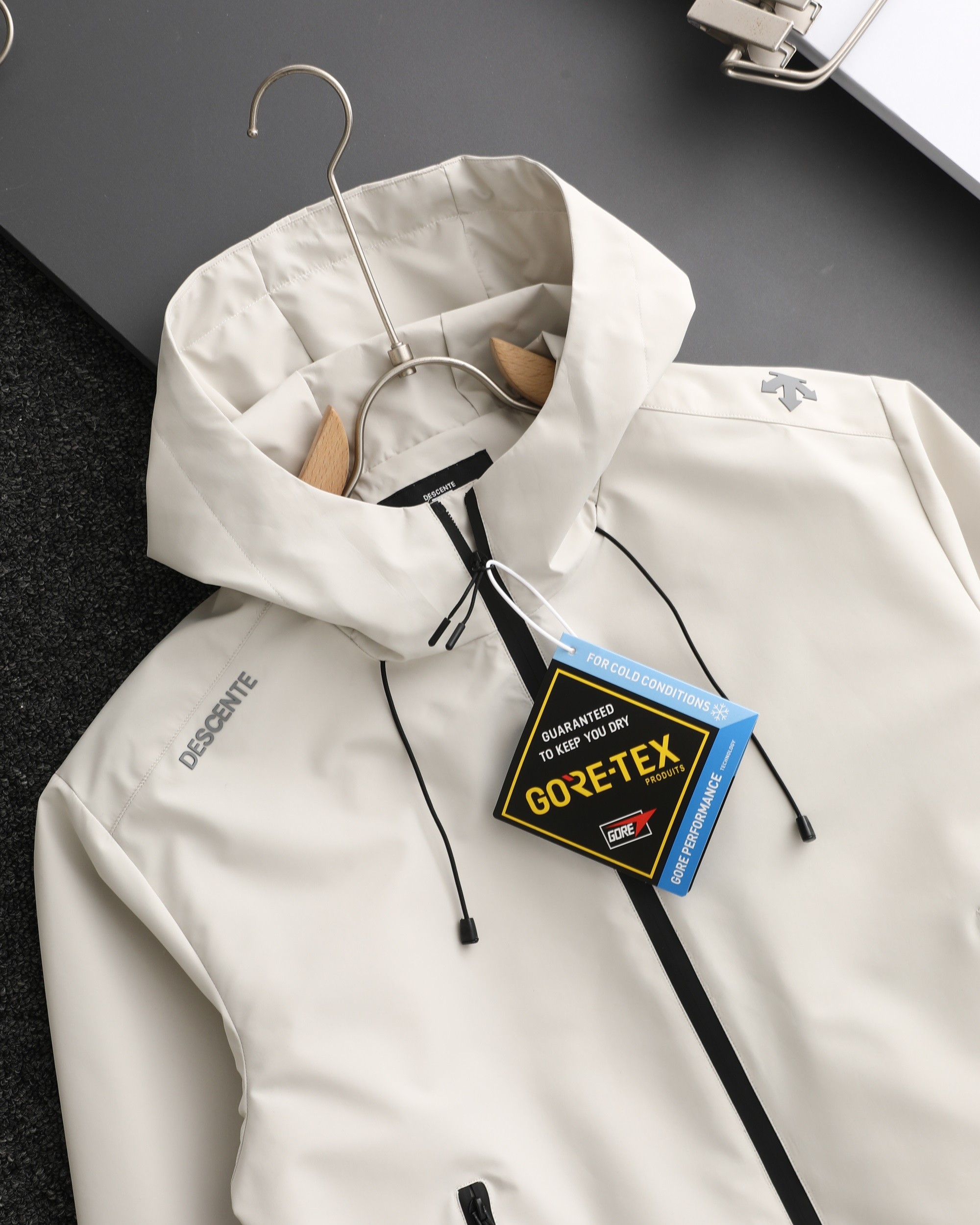 這款衣服是AAAAA 1:1 質量(非常棒). 使用了和原版一模一樣的材料. 商標部分也保持了和Descente一樣. 圖片拍攝是實物衣服拍攝, 您所收到的實物保證和我們圖片一模一樣.