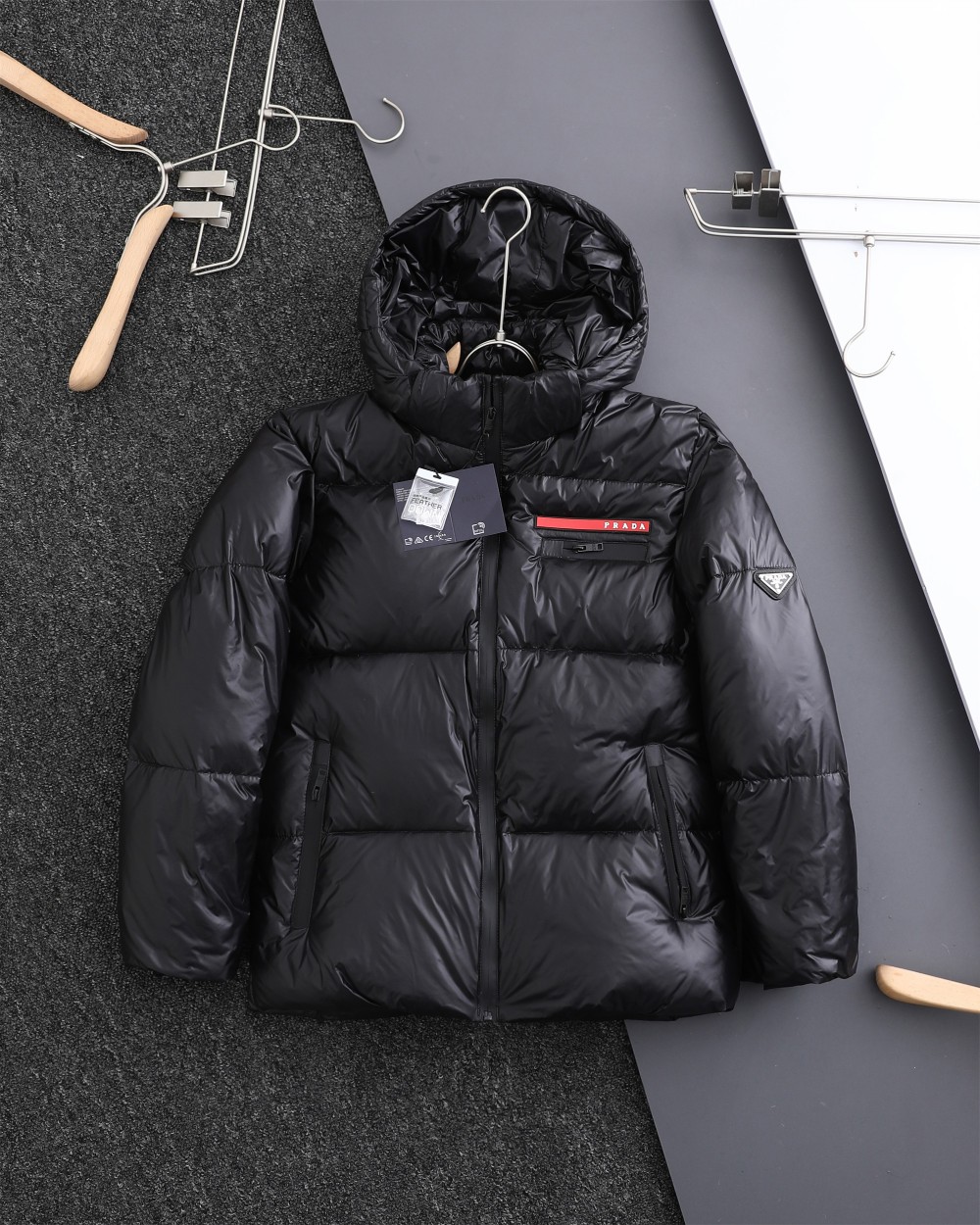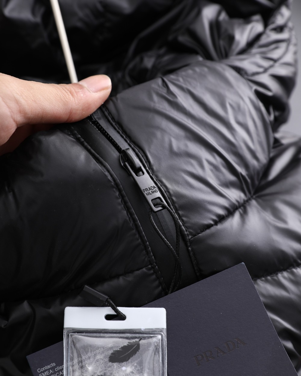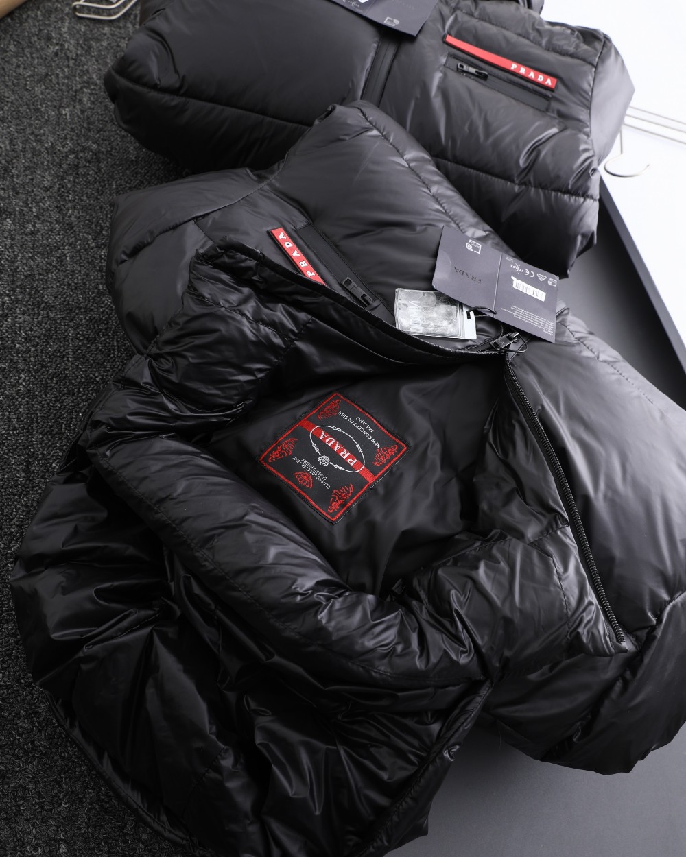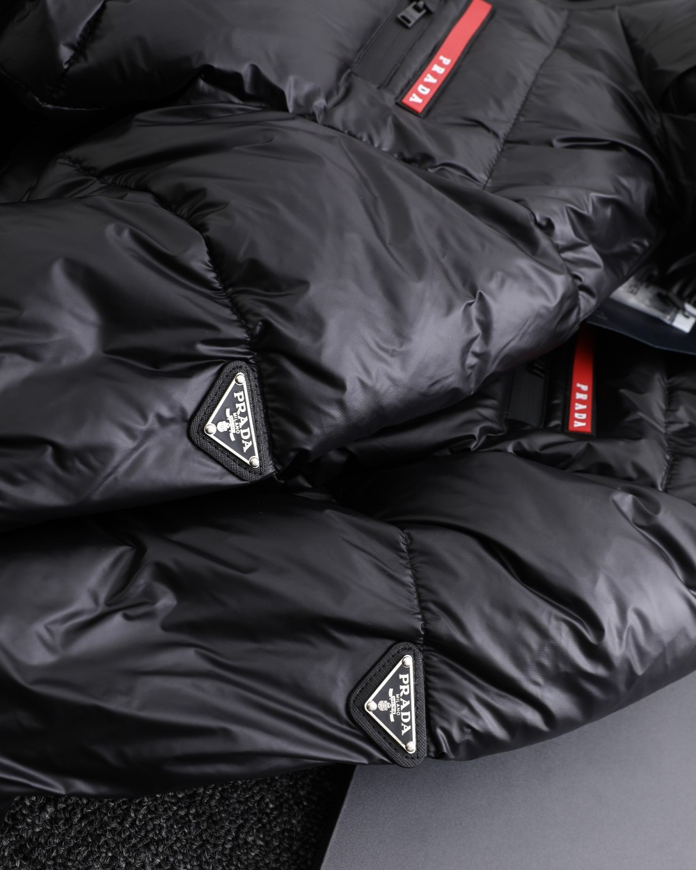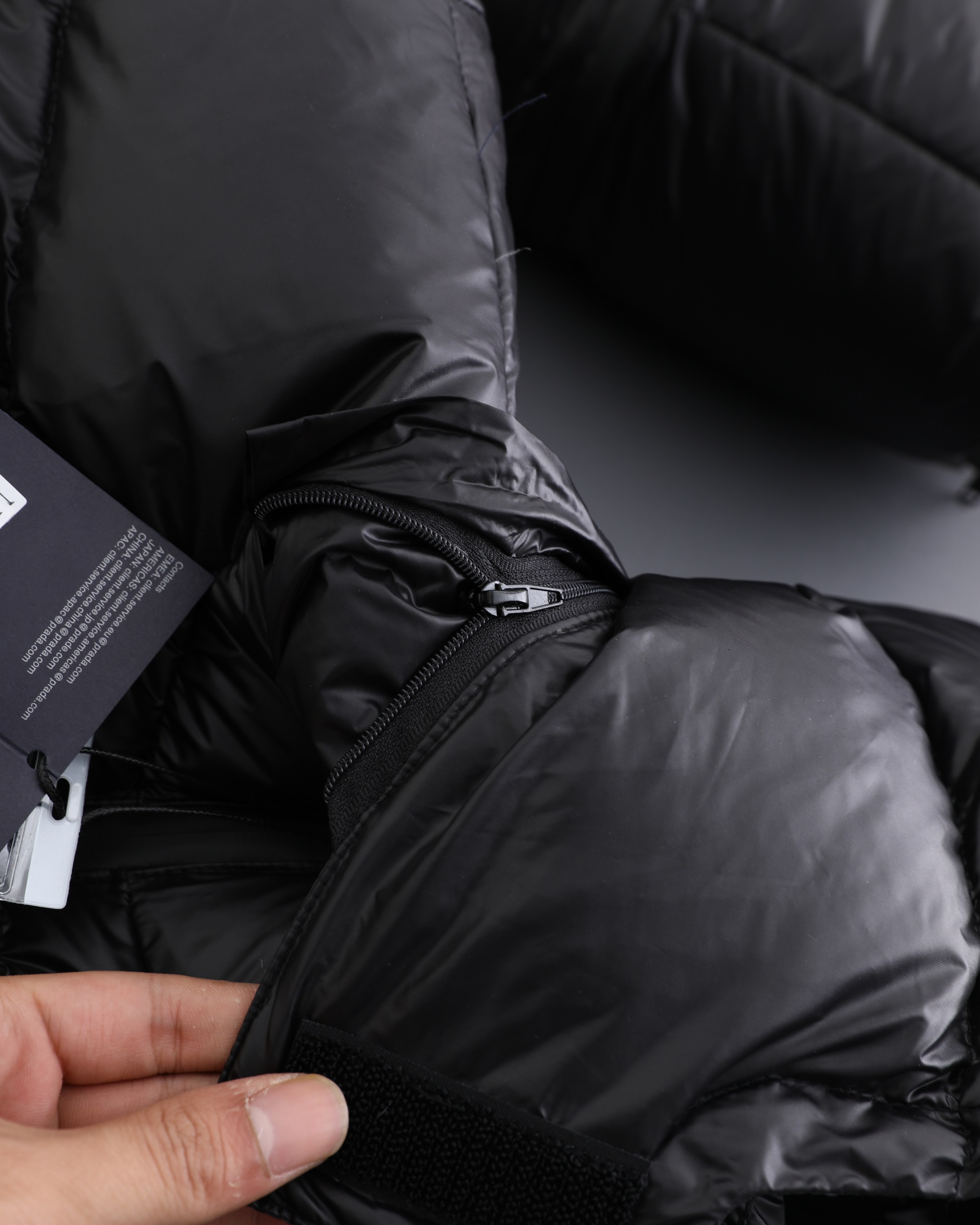 這款衣服是AAAAA 1:1 質量(非常棒). 使用了和原版一模一樣的材料. 商標部分也保持了和普拉達/Prada一樣. 圖片拍攝是實物衣服拍攝, 您所收到的實物保證和我們圖片一模一樣.