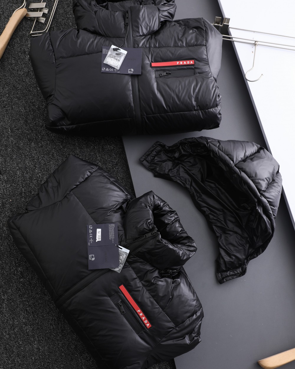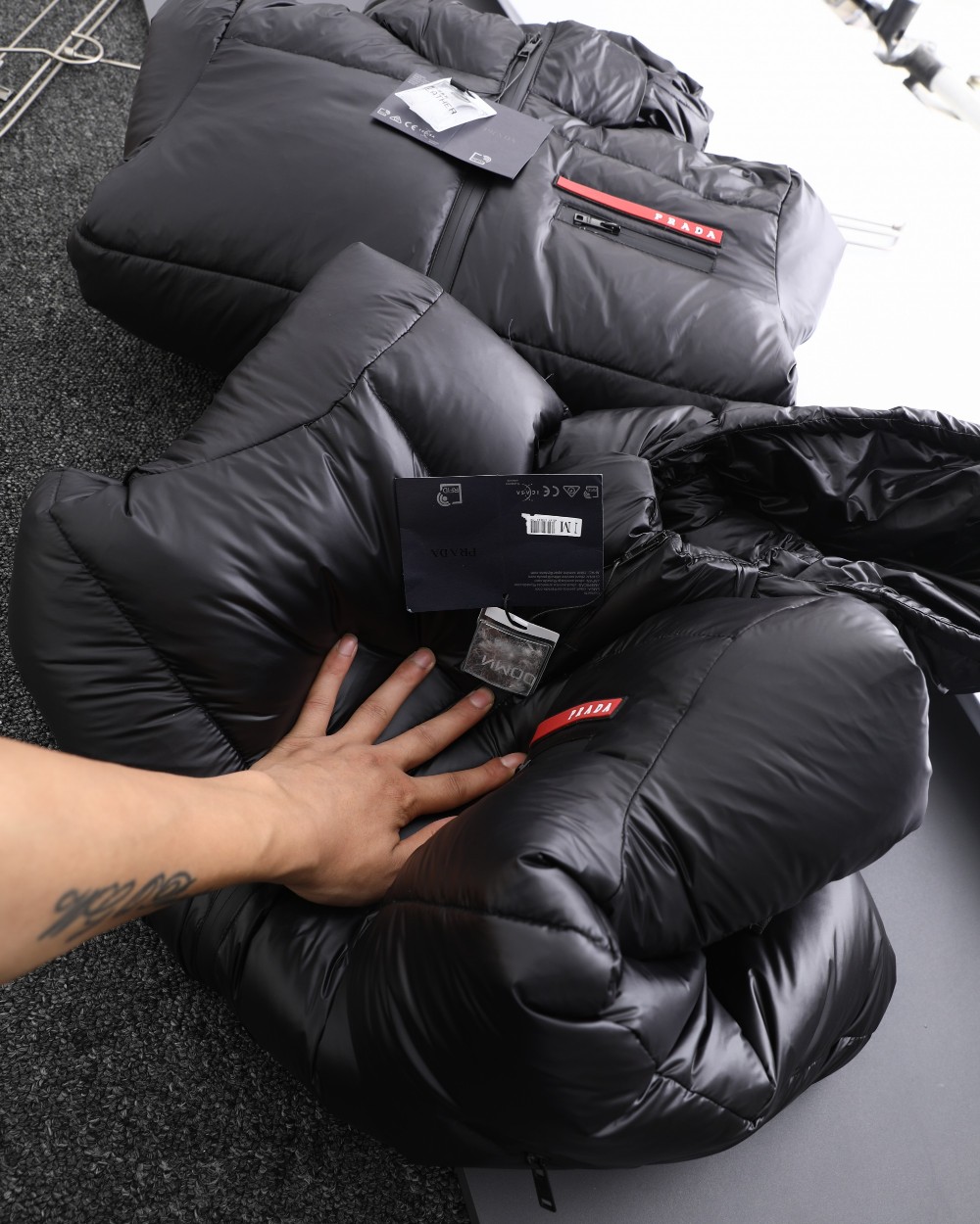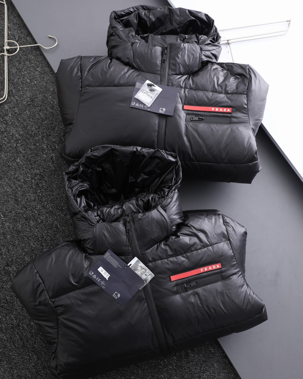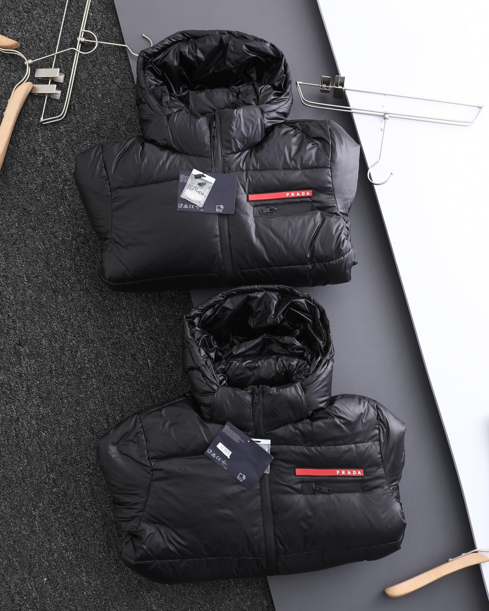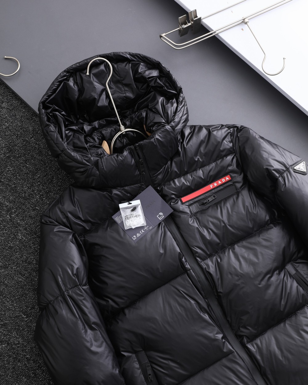 這款衣服是AAAAA 1:1 質量(非常棒). 使用了和原版一模一樣的材料. 商標部分也保持了和普拉達/Prada一樣. 圖片拍攝是實物衣服拍攝, 您所收到的實物保證和我們圖片一模一樣.
