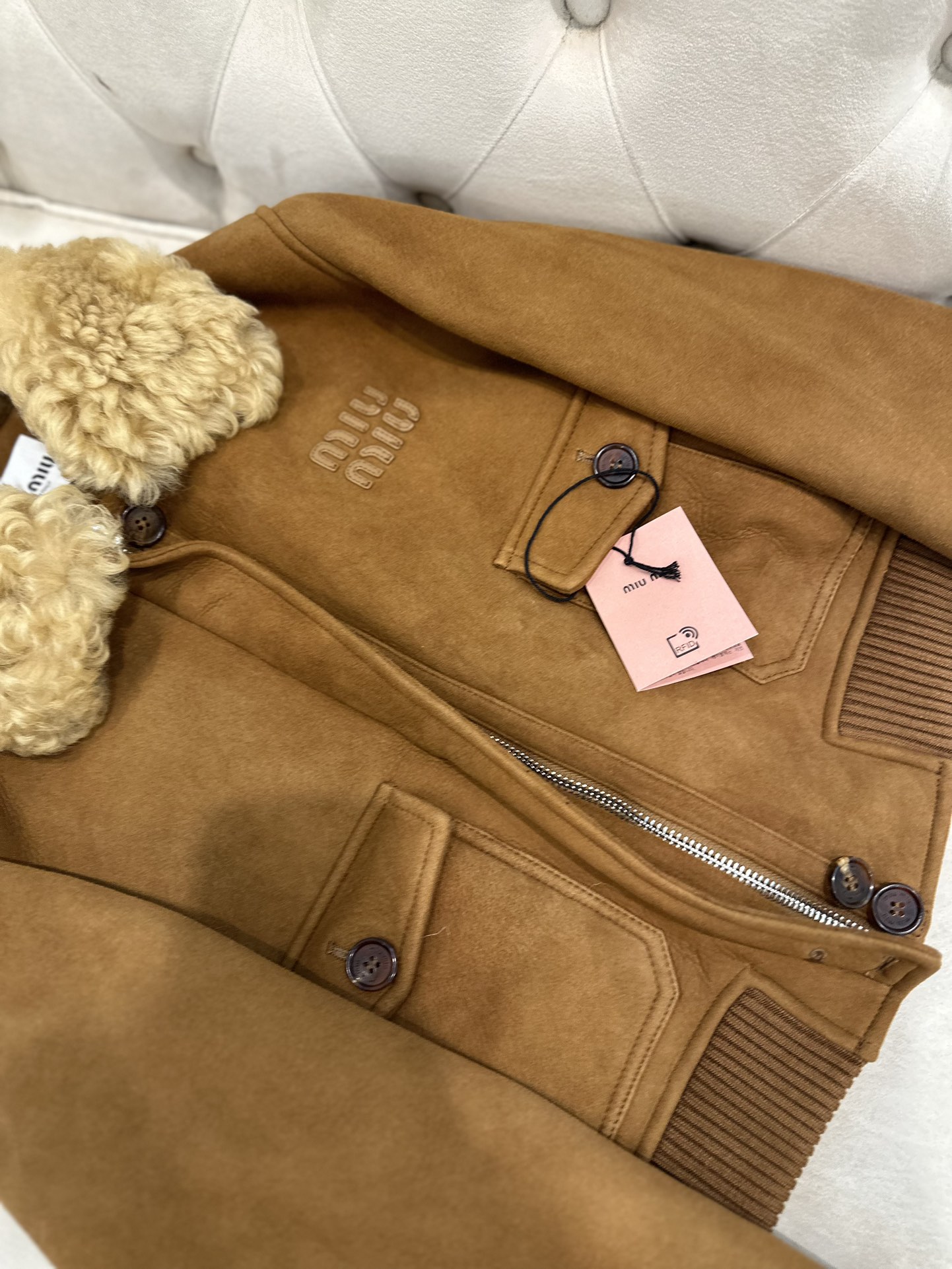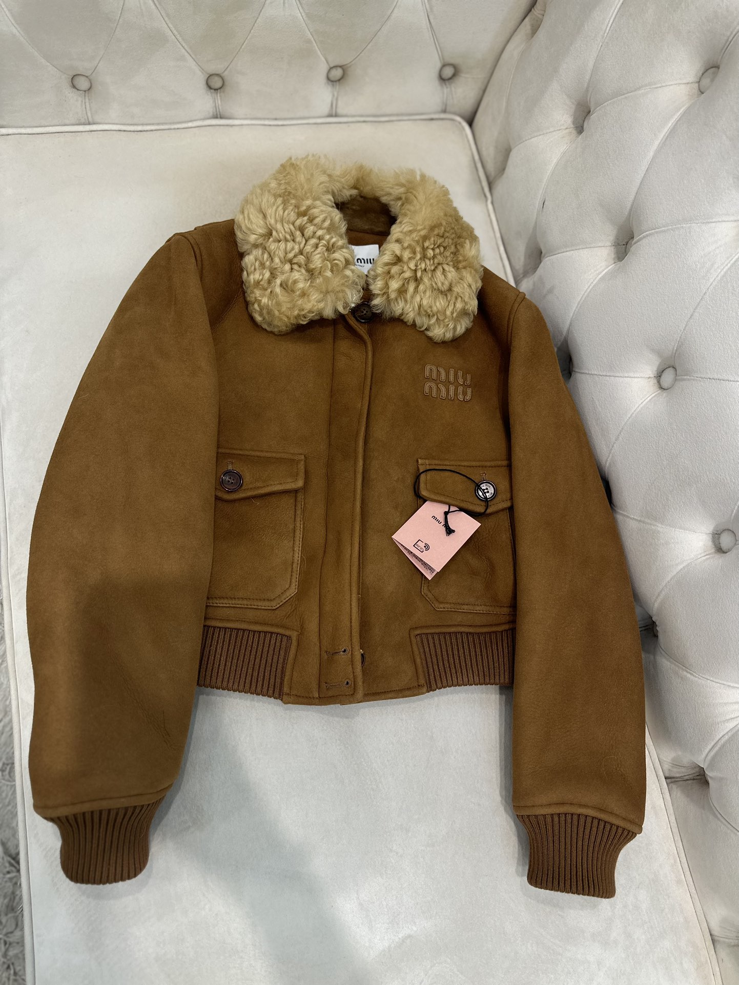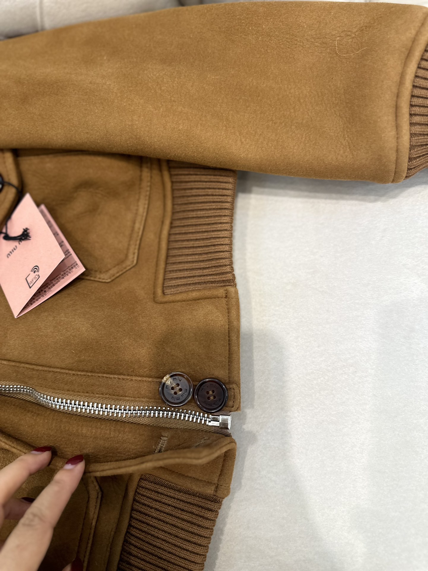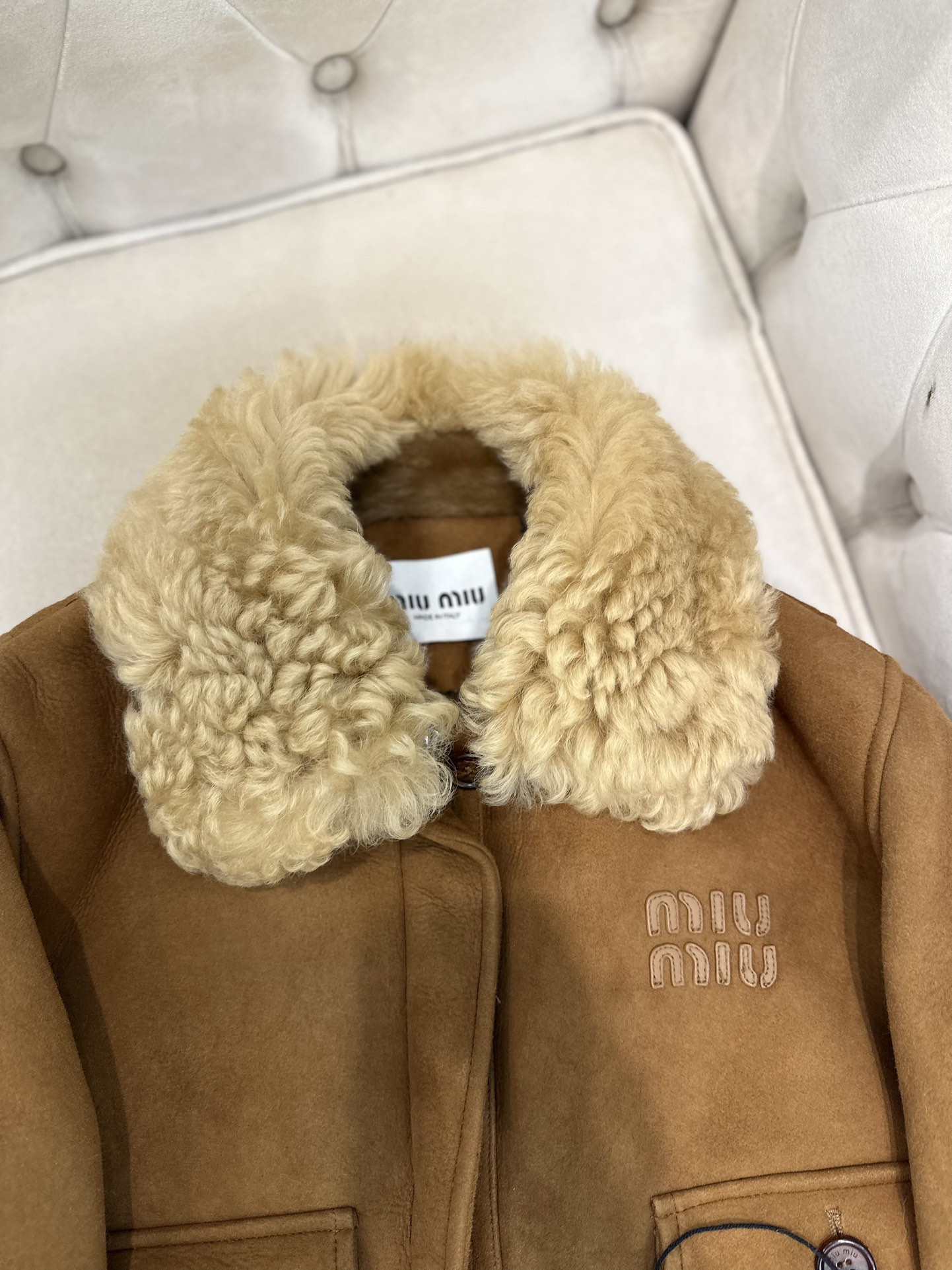 這款衣服是AAAAA 1:1 質量(非常棒). 使用了和原版一模一樣的材料. 商標部分也保持了和繆繆/Miu Miu一樣. 圖片拍攝是實物衣服拍攝, 您所收到的實物保證和我們圖片一模一樣.