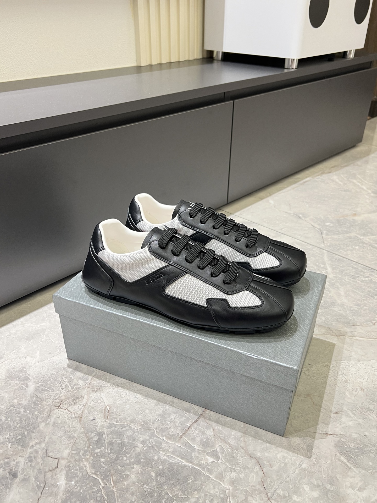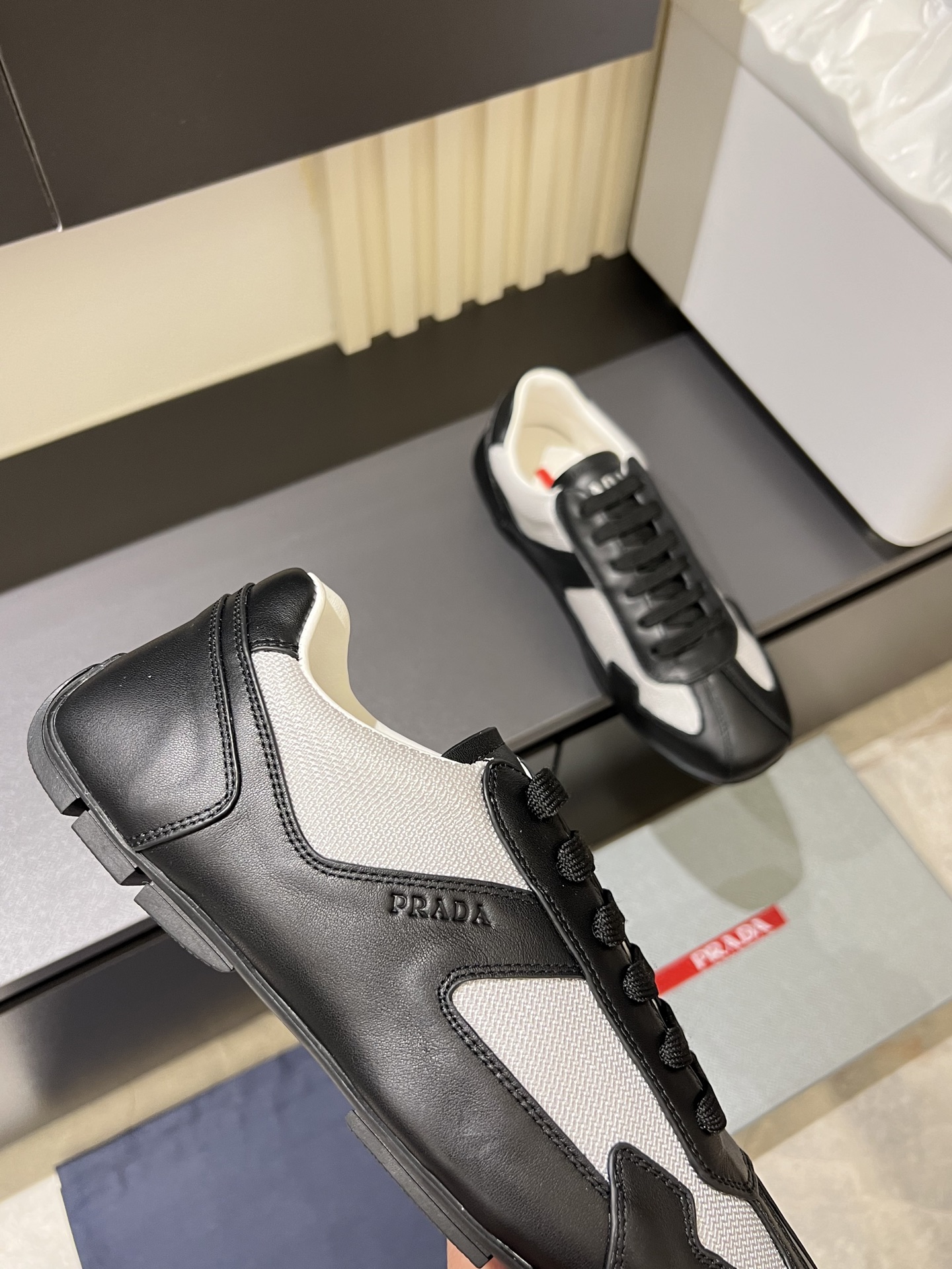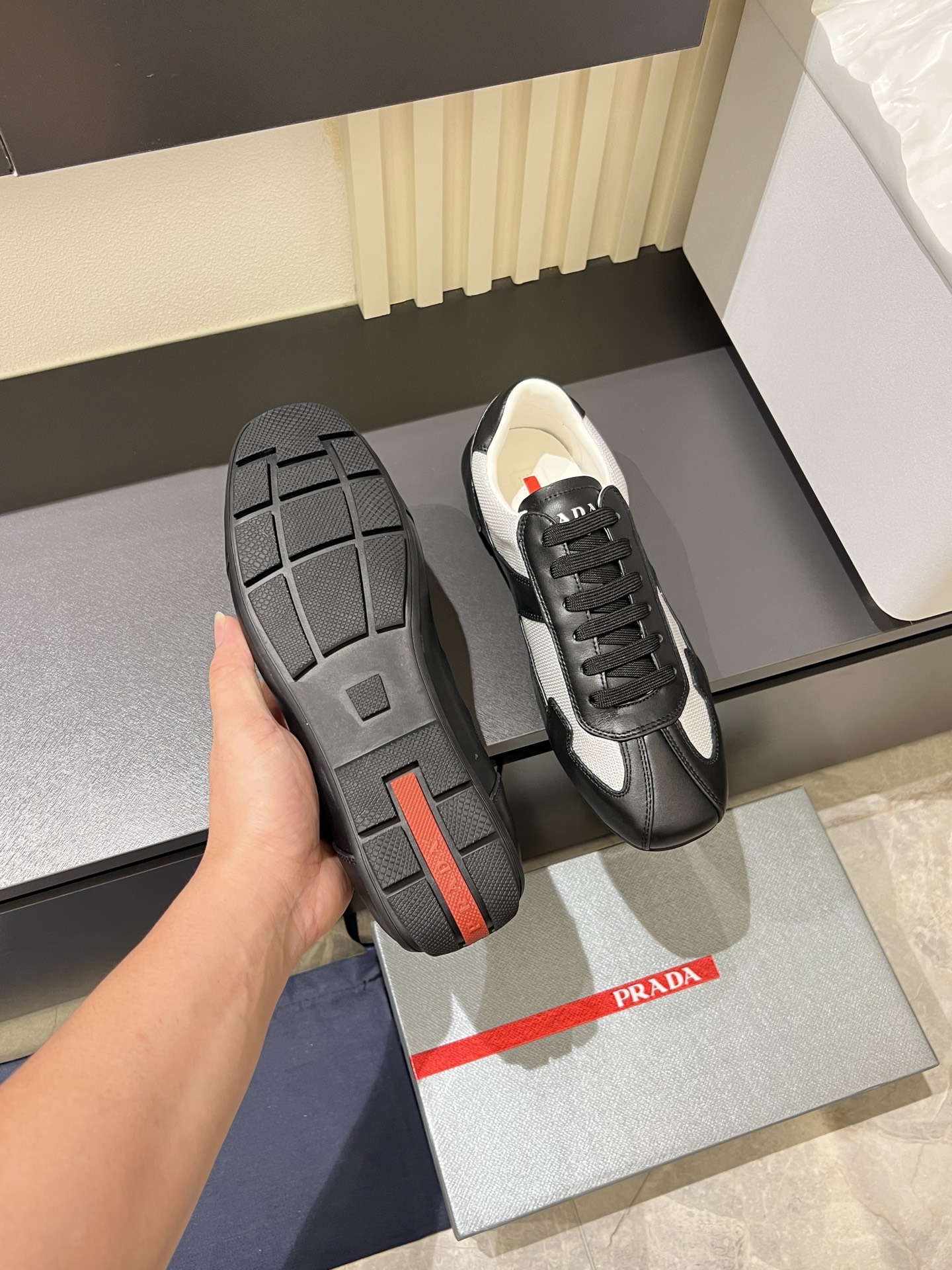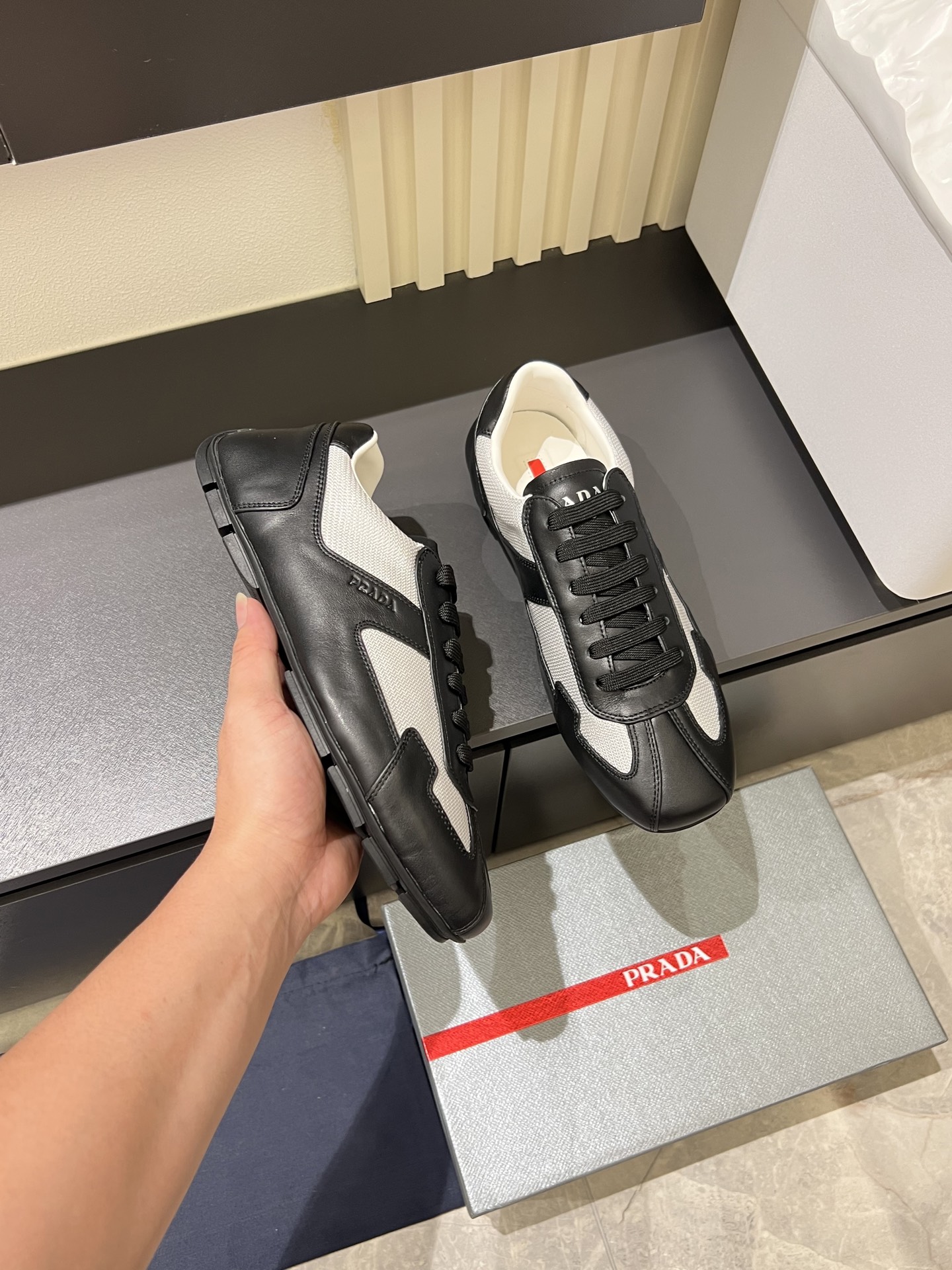 這款鞋子是AAAAA 1:1 質量(非常棒). 使用了和原版一模一樣的材料. 商標部分也保持了和普拉達/Prada一樣. 圖片拍攝是實物鞋子拍攝, 您所收到的實物保證和我們圖片一模一樣.