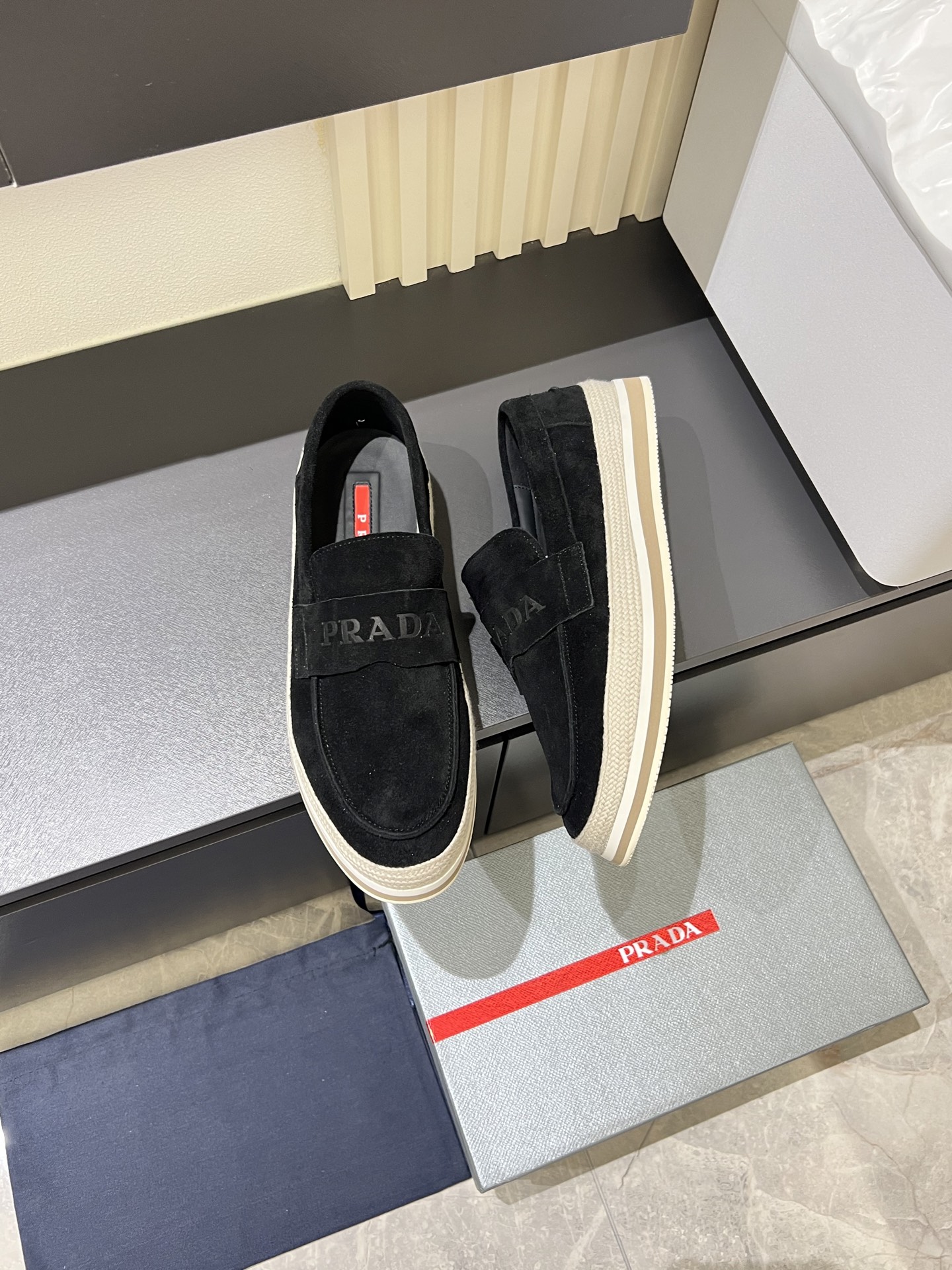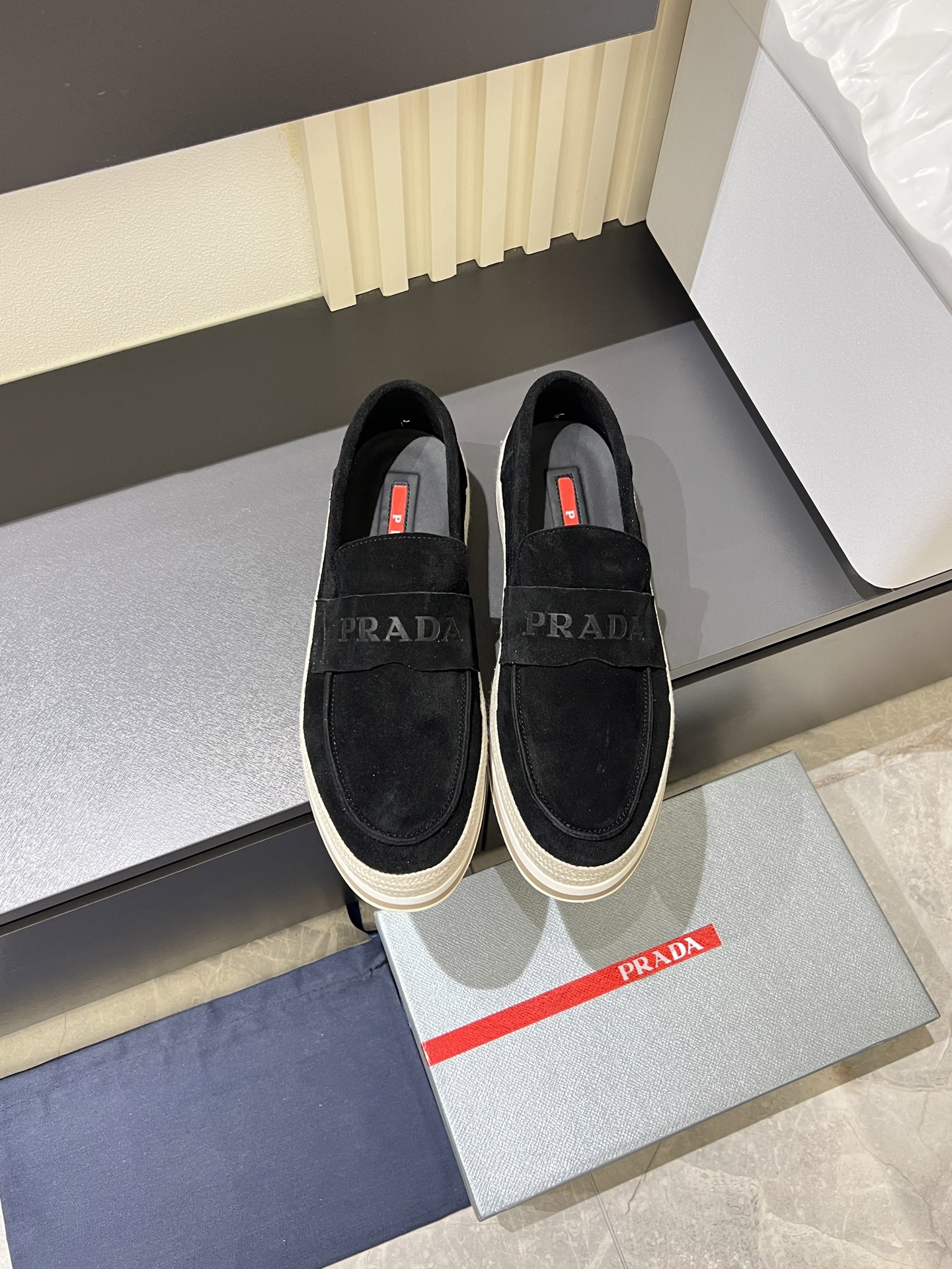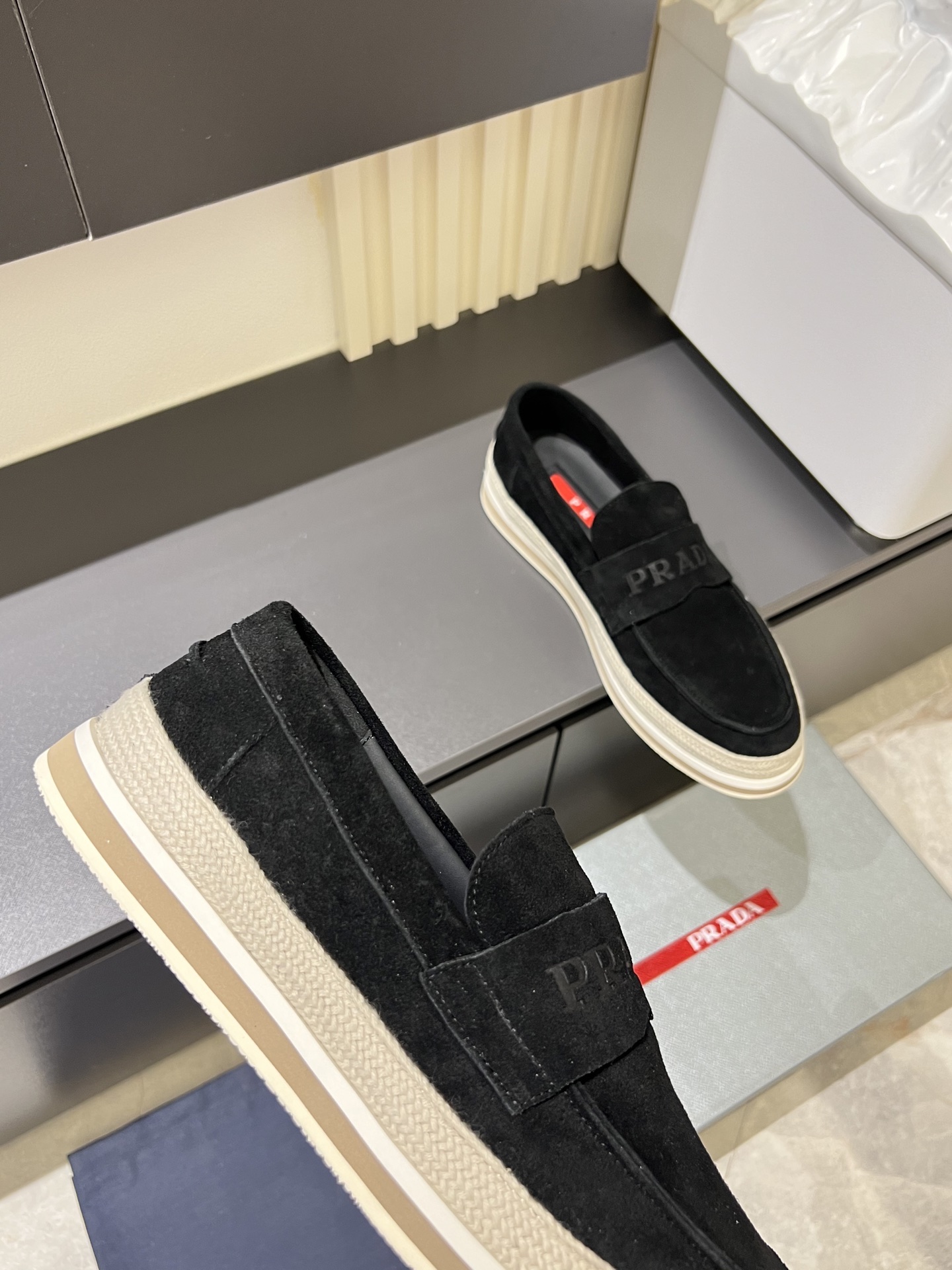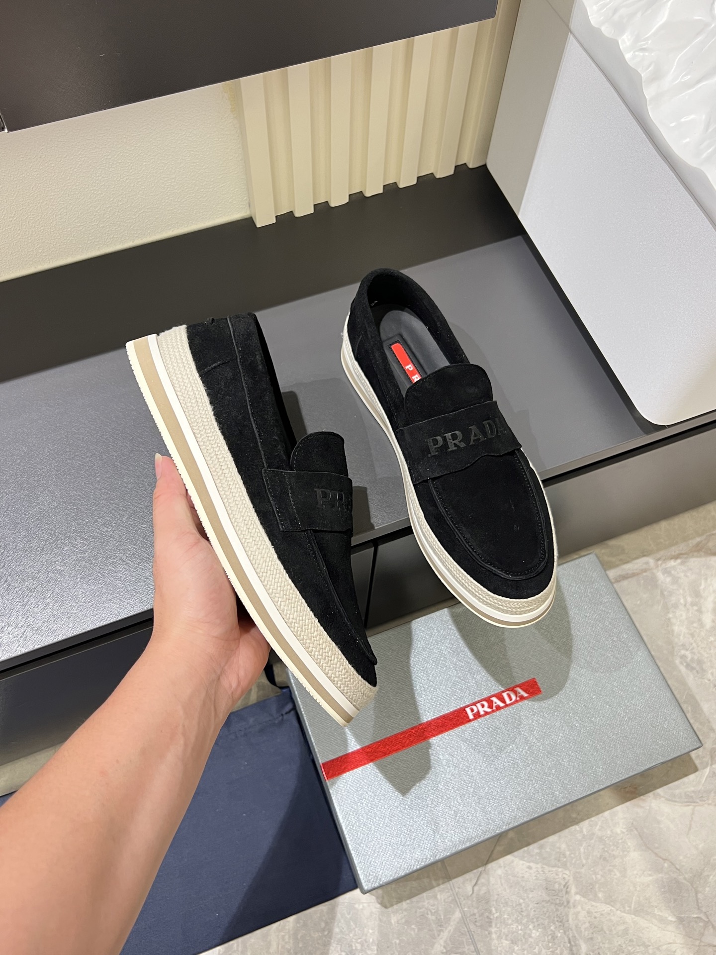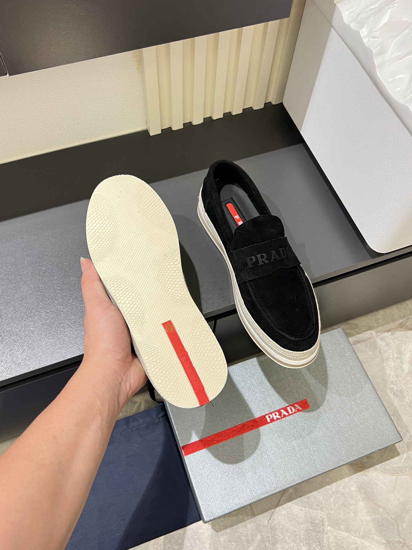 這款鞋子是AAAAA 1:1 質量(非常棒). 使用了和原版一模一樣的材料. 商標部分也保持了和普拉達/Prada一樣. 圖片拍攝是實物鞋子拍攝, 您所收到的實物保證和我們圖片一模一樣.