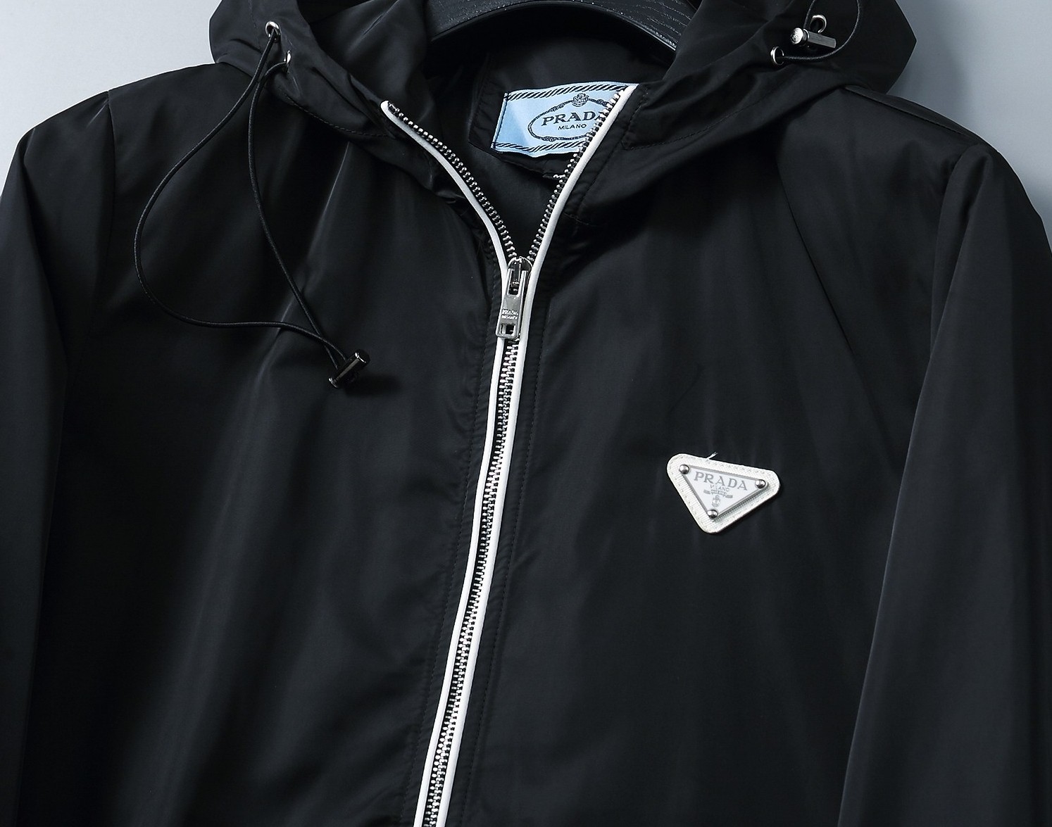 這款衣服是AAAAA 1:1 質量(非常棒). 使用了和原版一模一樣的材料. 商標部分也保持了和普拉達/Prada一樣. 圖片拍攝是實物衣服拍攝, 您所收到的實物保證和我們圖片一模一樣.