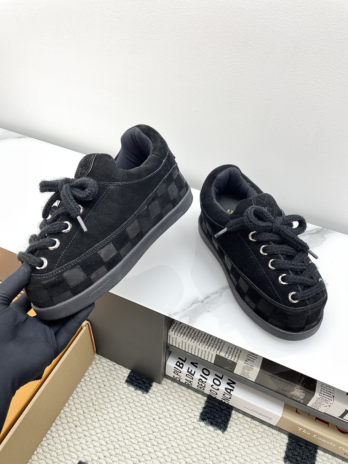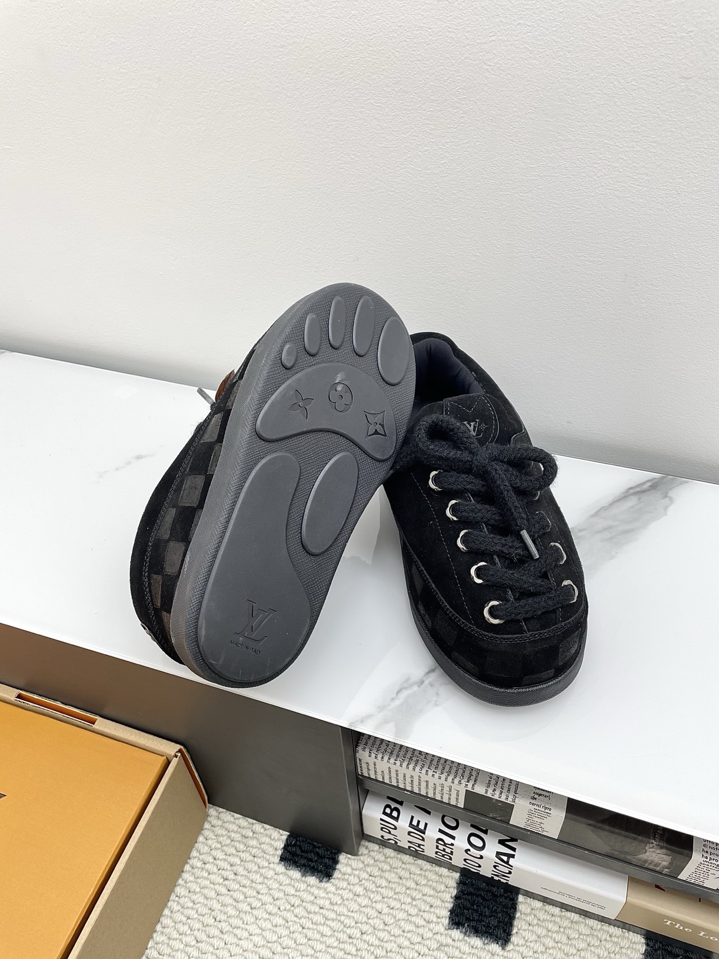 這款鞋子是AAAAA 1:1 質量(非常棒). 使用了和原版一模一樣的材料. 商標部分也保持了和路易威登/Louis Vuitton一樣. 圖片拍攝是實物鞋子拍攝, 您所收到的實物保證和我們圖片一模一樣.