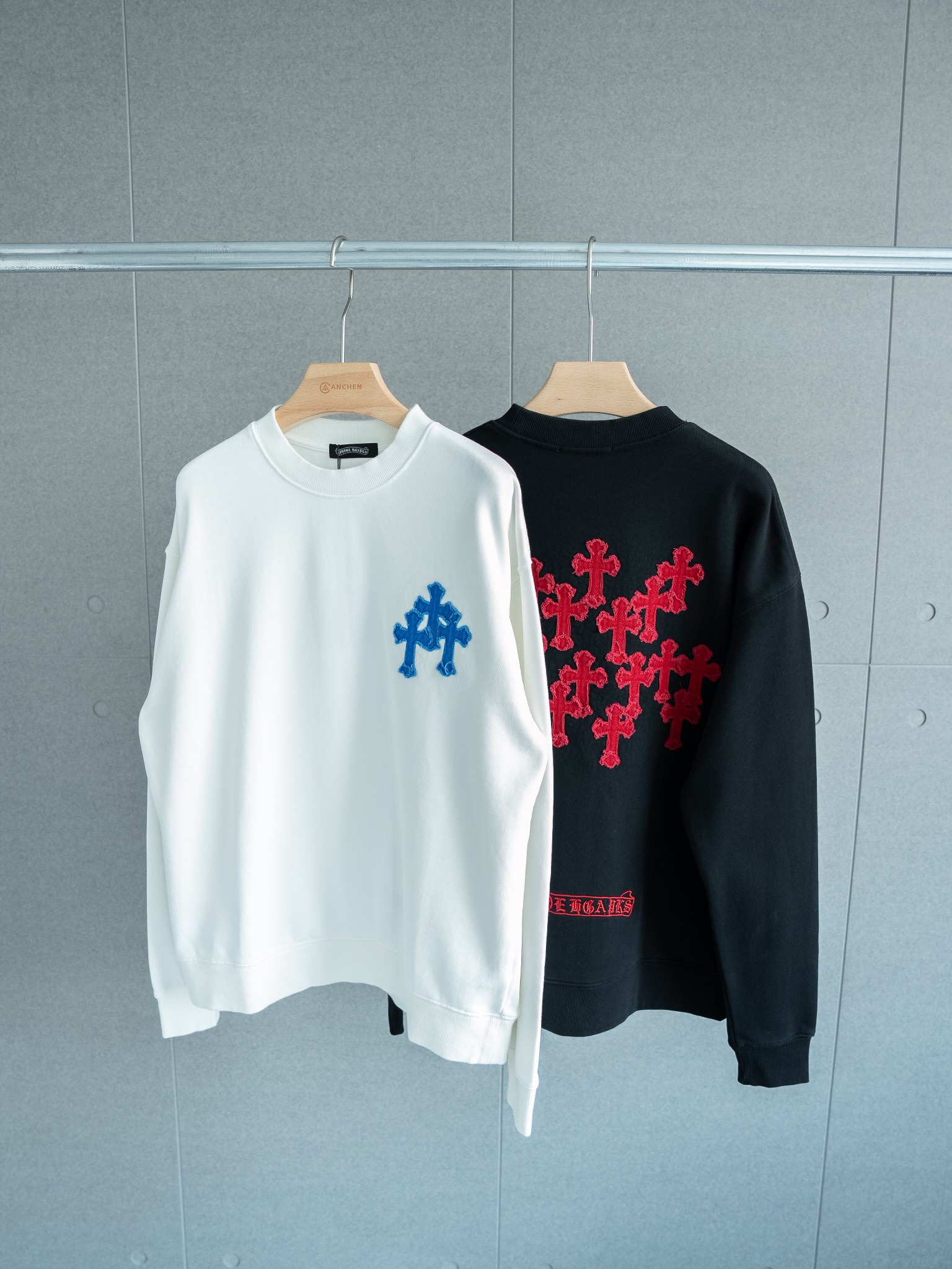 這款衣服是AAAAA 1:1 質量(非常棒). 使用了和原版一模一樣的材料. 商標部分也保持了和鉻心/Chrome Hearts一樣. 圖片拍攝是實物衣服拍攝, 您所收到的實物保證和我們圖片一模一樣.