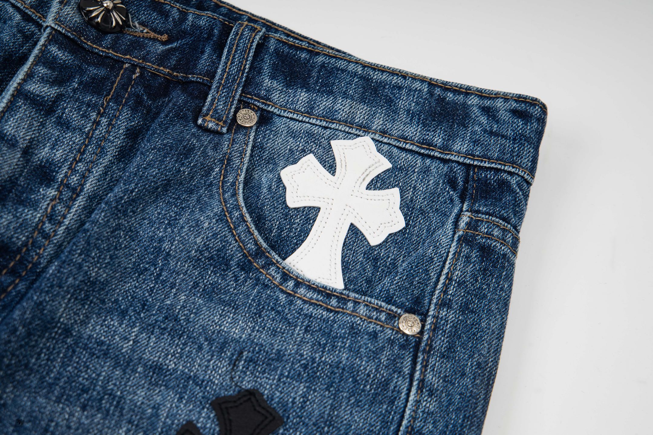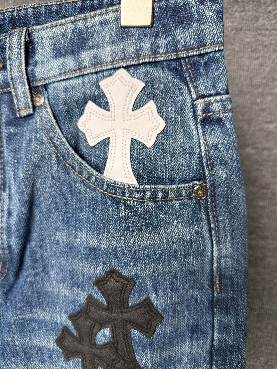這款衣服是AAAAA 1:1 質量(非常棒). 使用了和原版一模一樣的材料. 商標部分也保持了和鉻心/Chrome Hearts一樣. 圖片拍攝是實物衣服拍攝, 您所收到的實物保證和我們圖片一模一樣.