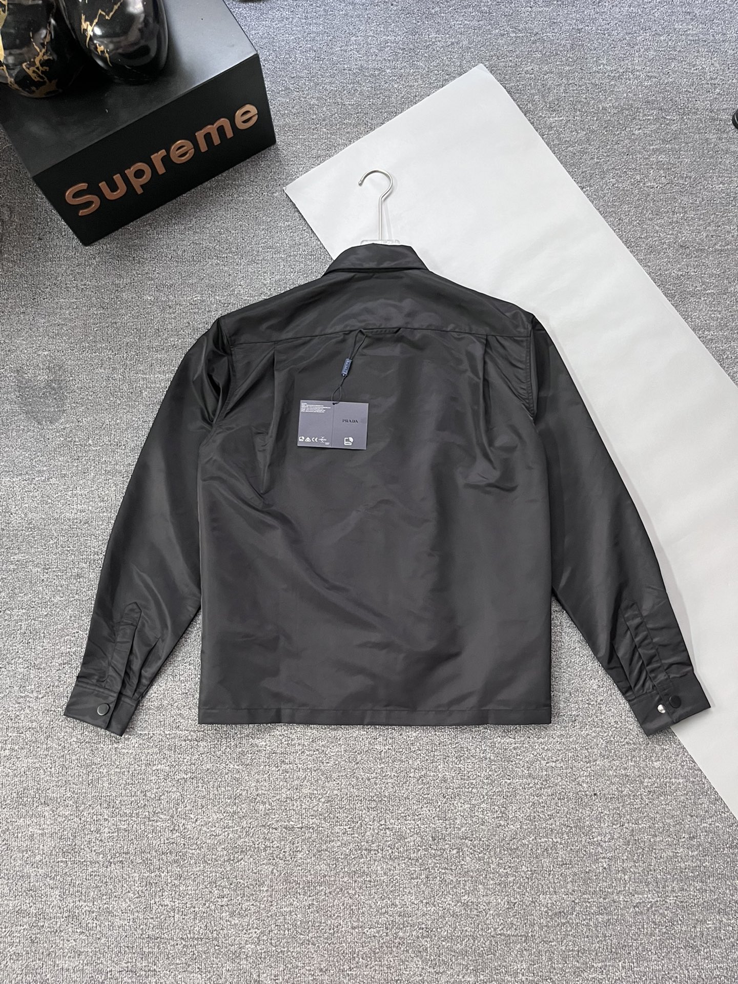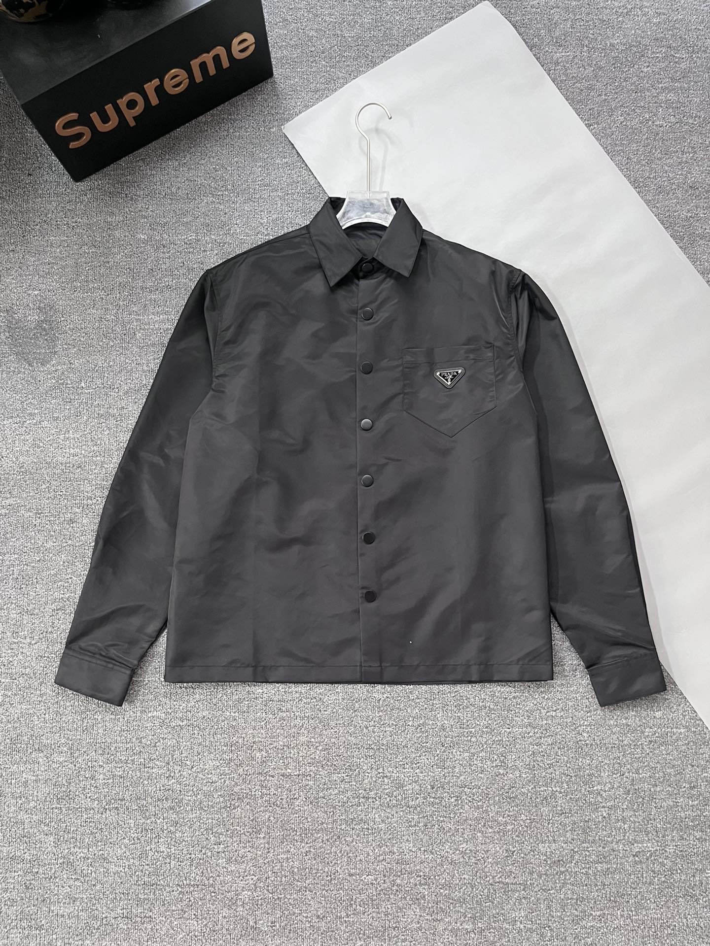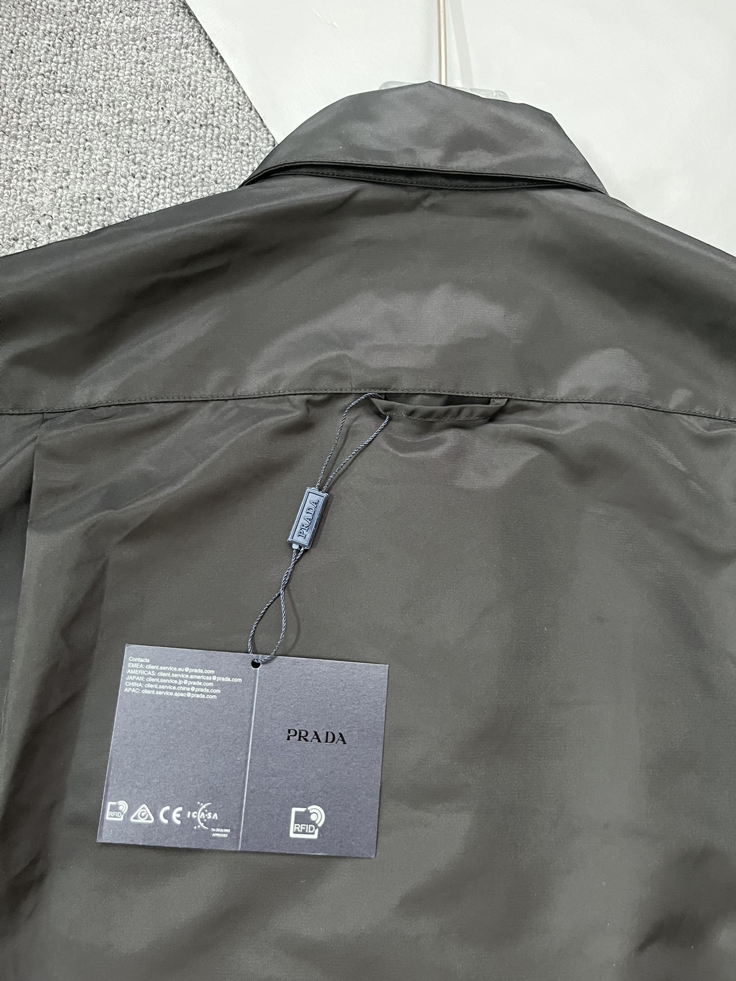 這款衣服是AAAAA 1:1 質量(非常棒). 使用了和原版一模一樣的材料. 商標部分也保持了和普拉達/Prada一樣. 圖片拍攝是實物衣服拍攝, 您所收到的實物保證和我們圖片一模一樣.