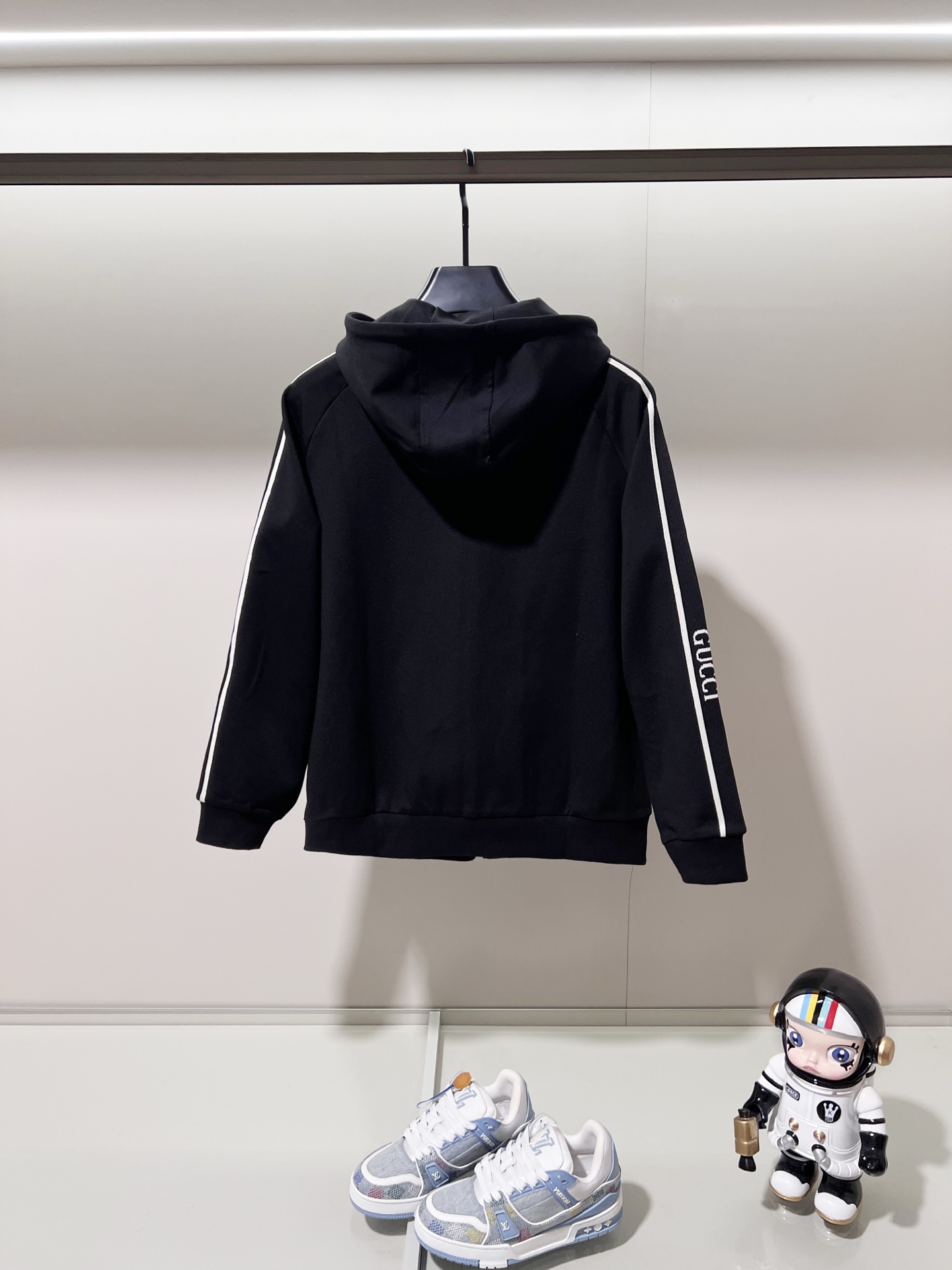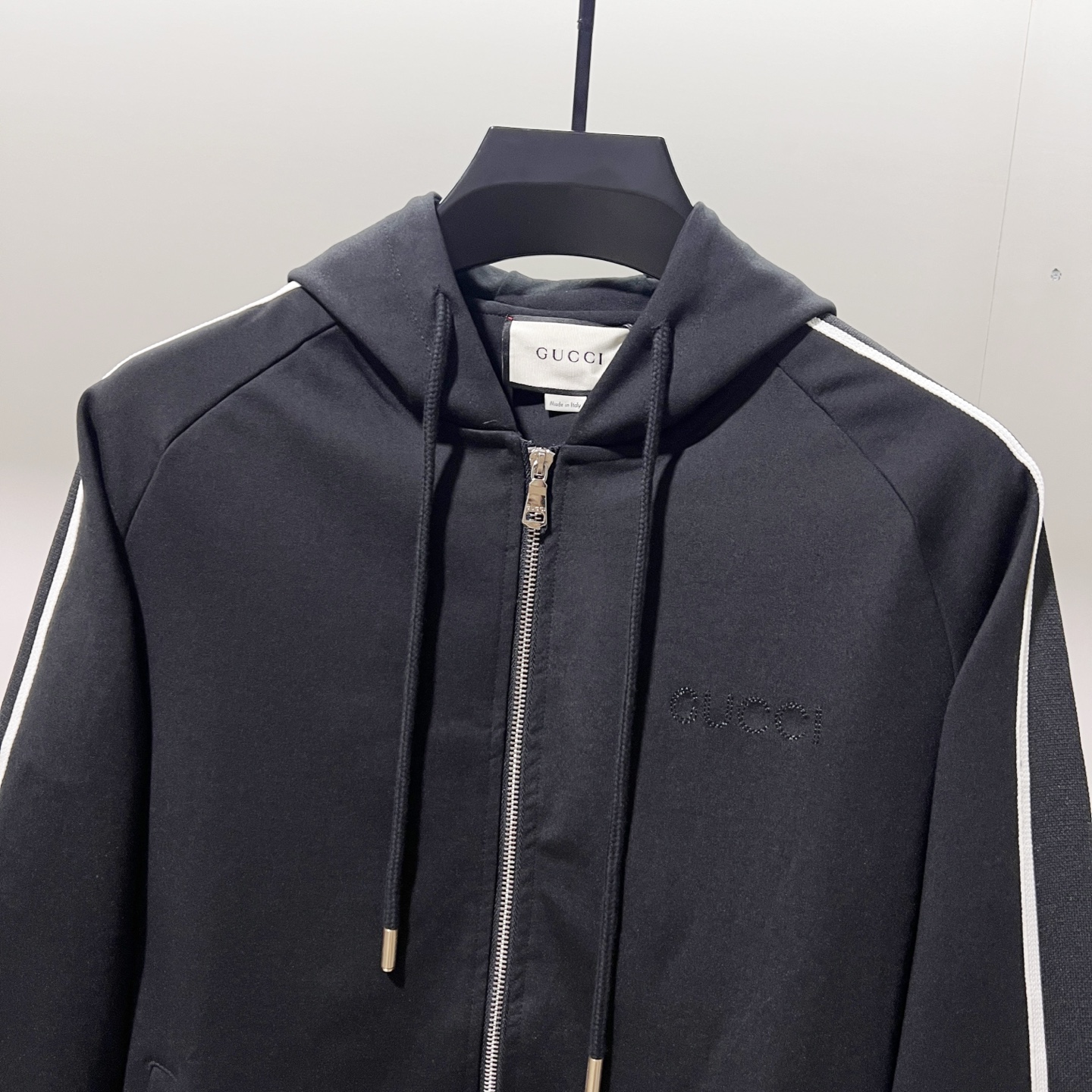 這款衣服是AAAAA 1:1 質量(非常棒). 使用了和原版一模一樣的材料. 商標部分也保持了和古奇/Gucci一樣. 圖片拍攝是實物衣服拍攝, 您所收到的實物保證和我們圖片一模一樣.
