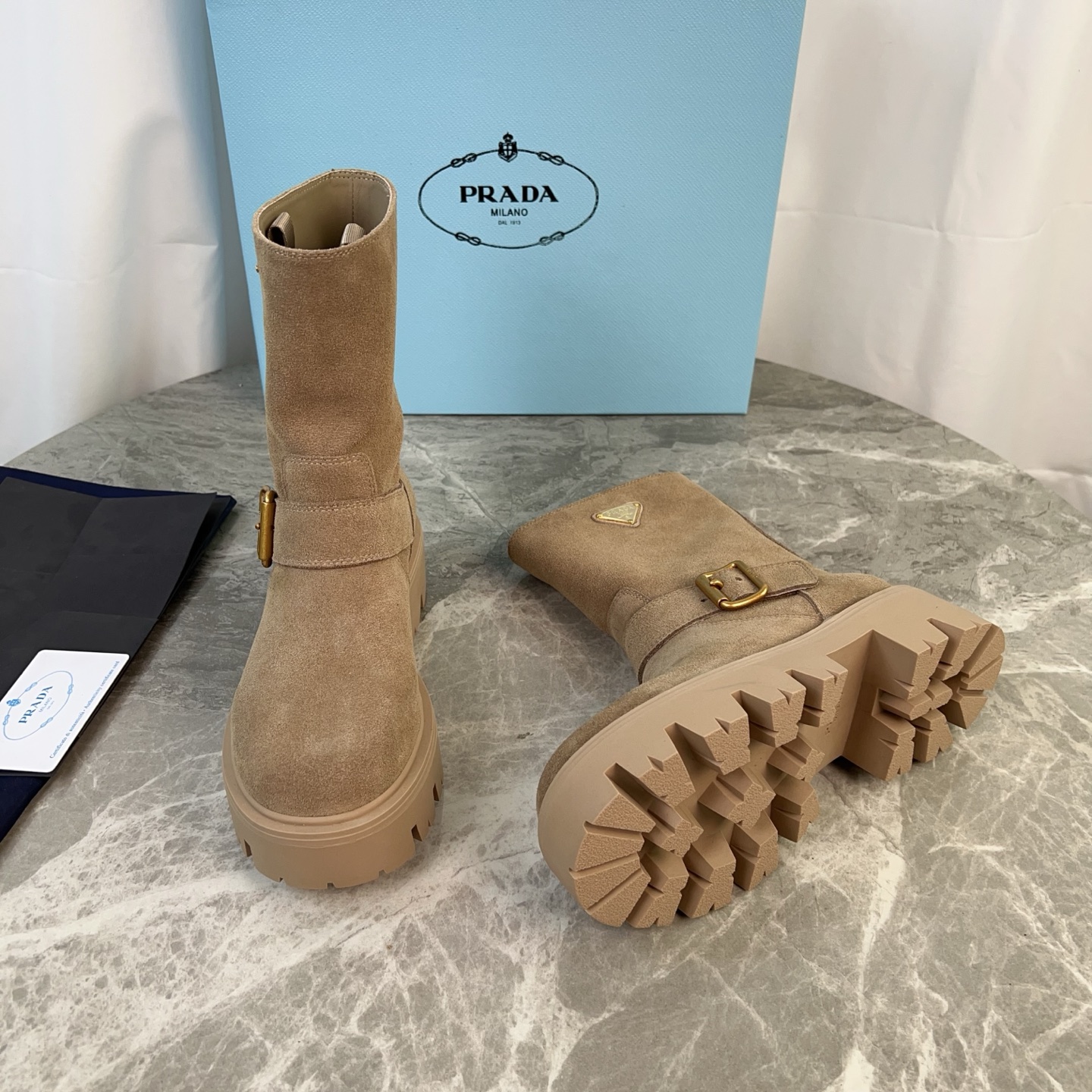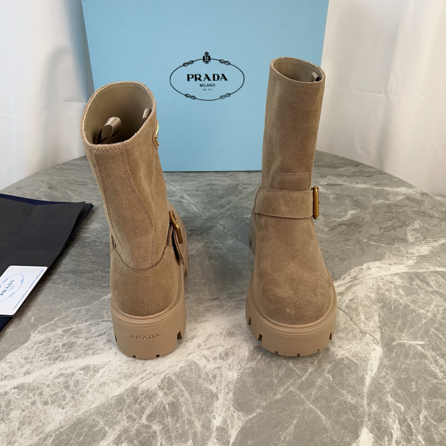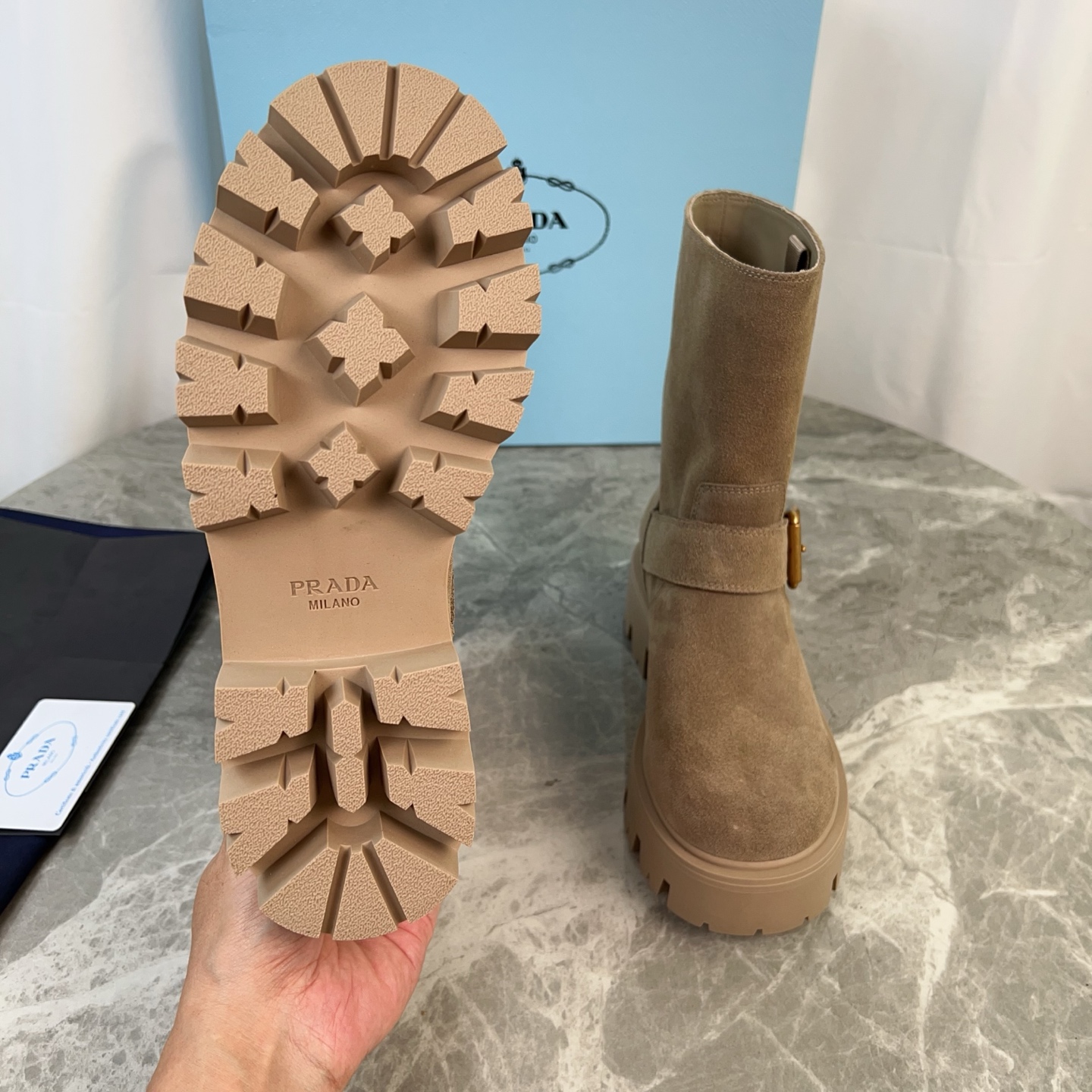 這款鞋子是AAAAA 1:1 質量(非常棒). 使用了和原版一模一樣的材料. 商標部分也保持了和普拉達/Prada一樣. 圖片拍攝是實物鞋子拍攝, 您所收到的實物保證和我們圖片一模一樣.