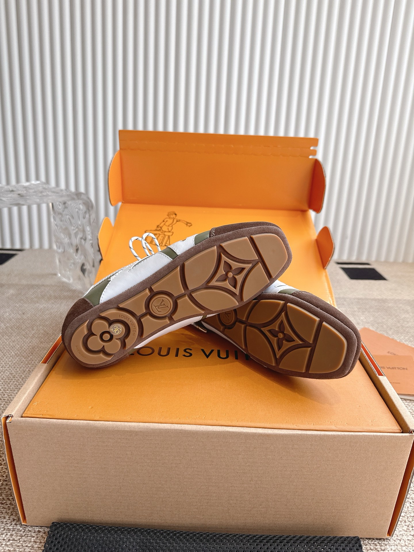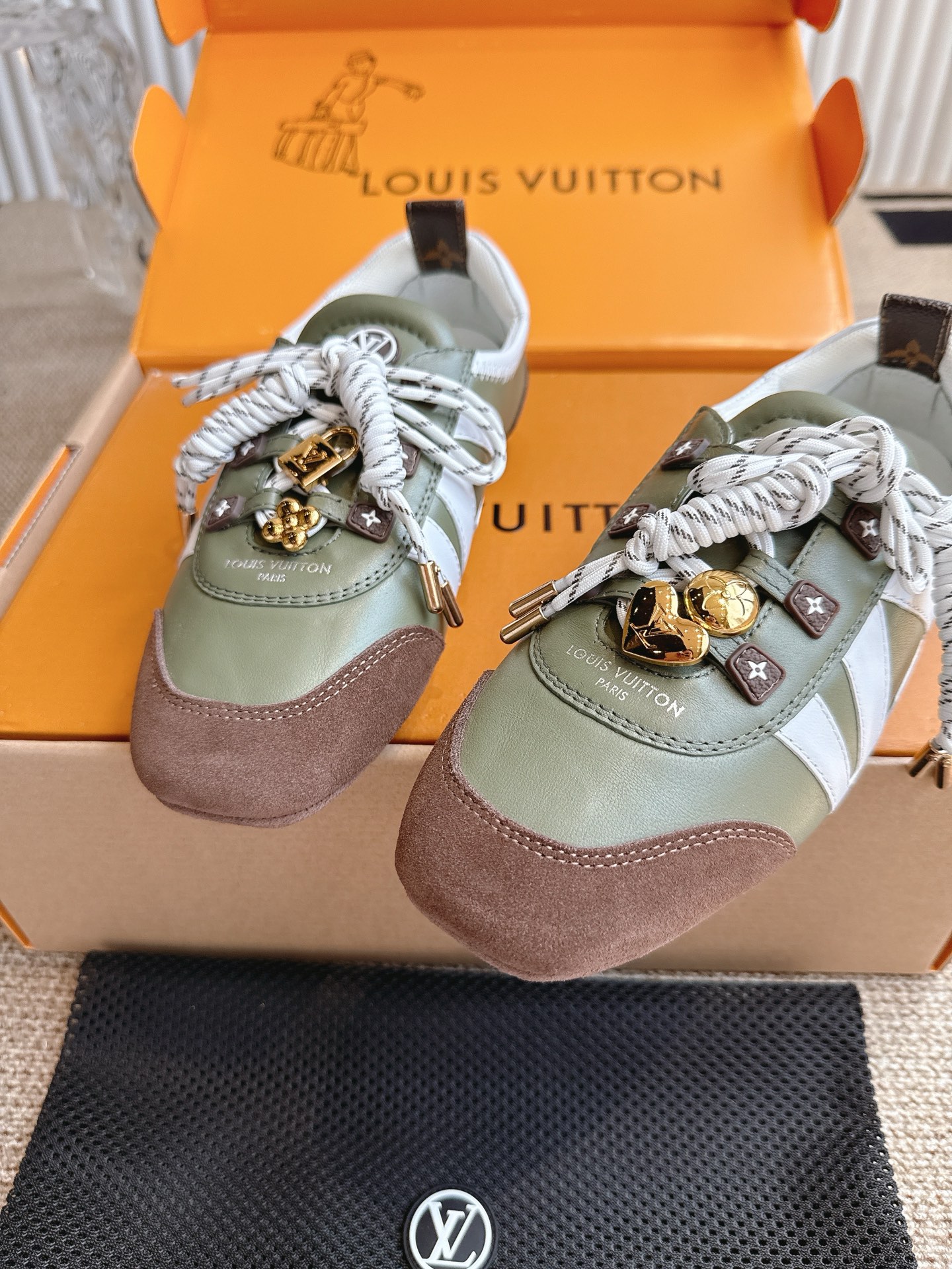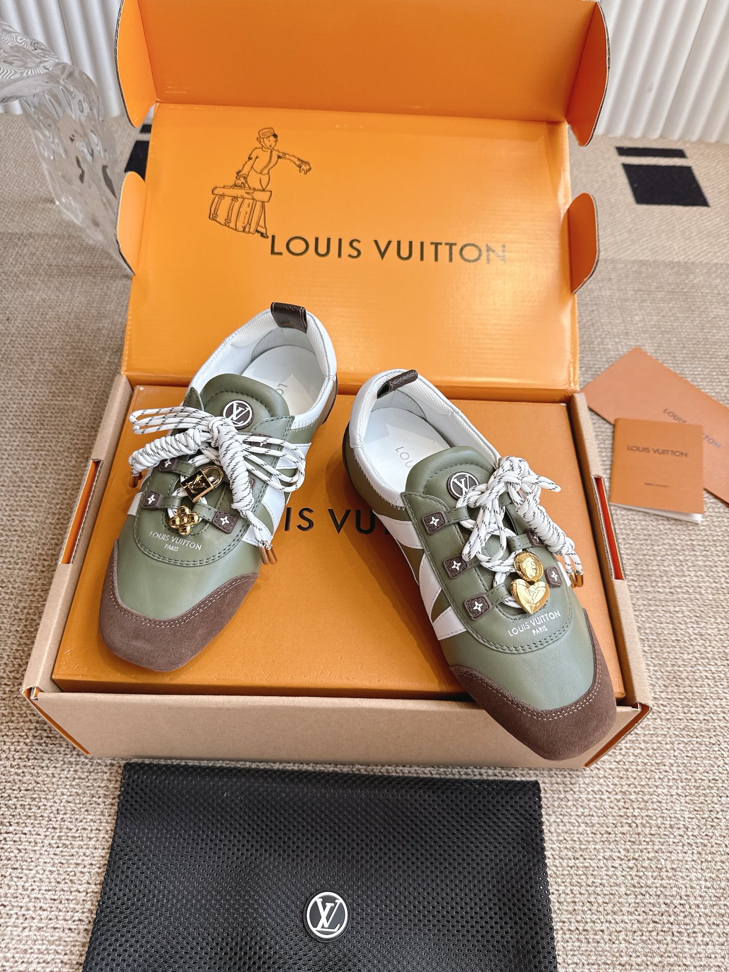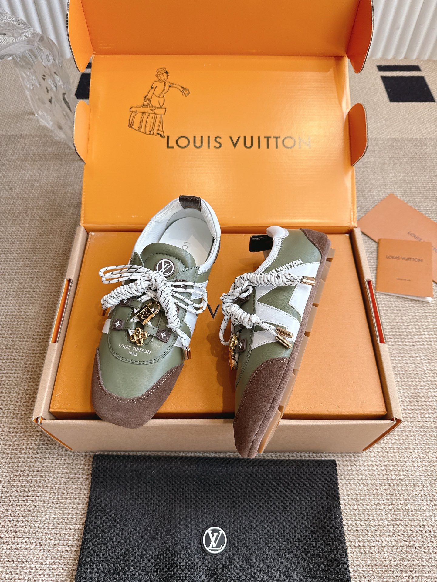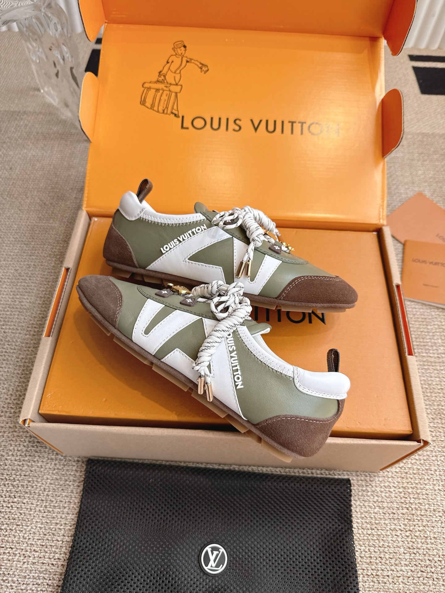 這款鞋子是AAAAA 1:1 質量(非常棒). 使用了和原版一模一樣的材料. 商標部分也保持了和路易威登/Louis Vuitton一樣. 圖片拍攝是實物鞋子拍攝, 您所收到的實物保證和我們圖片一模一樣.