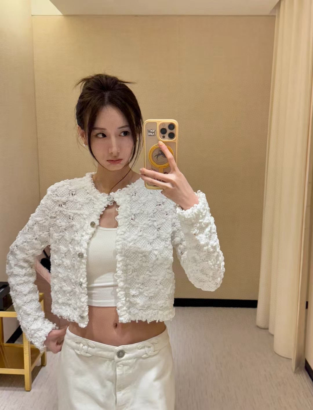 這款衣服是AAAAA 1:1 質量(非常棒). 使用了和原版一模一樣的材料. 商標部分也保持了和香奈兒/Chanel一樣. 圖片拍攝是實物衣服拍攝, 您所收到的實物保證和我們圖片一模一樣.