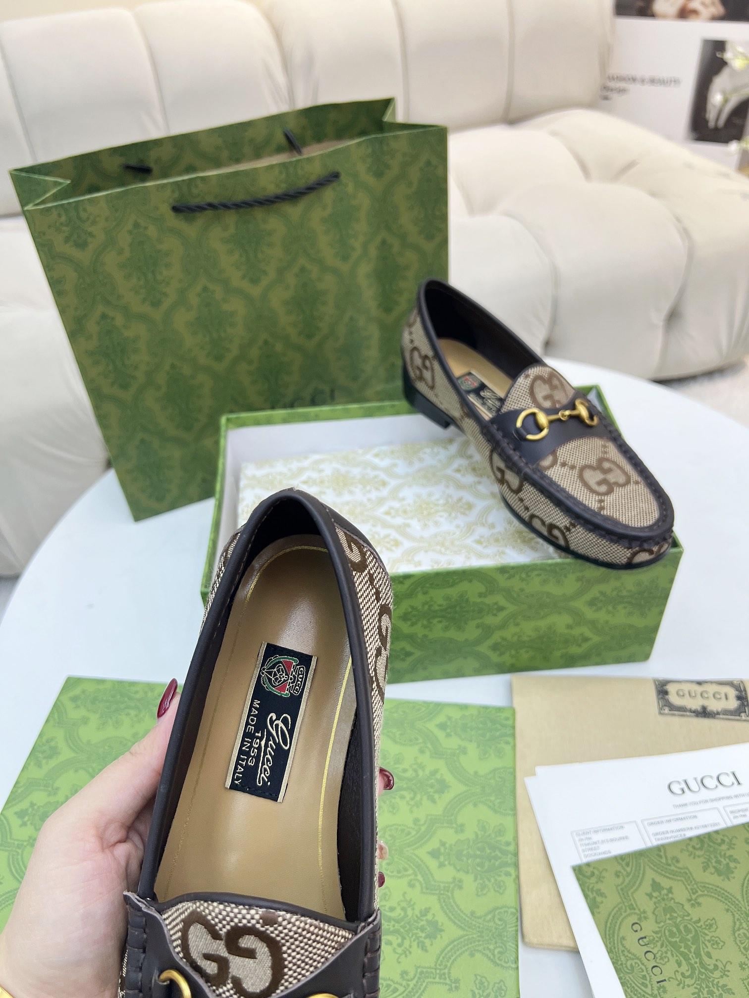 這款鞋子是AAAAA 1:1 質量(非常棒). 使用了和原版一模一樣的材料. 商標部分也保持了和古奇/Gucci一樣. 圖片拍攝是實物鞋子拍攝, 您所收到的實物保證和我們圖片一模一樣.