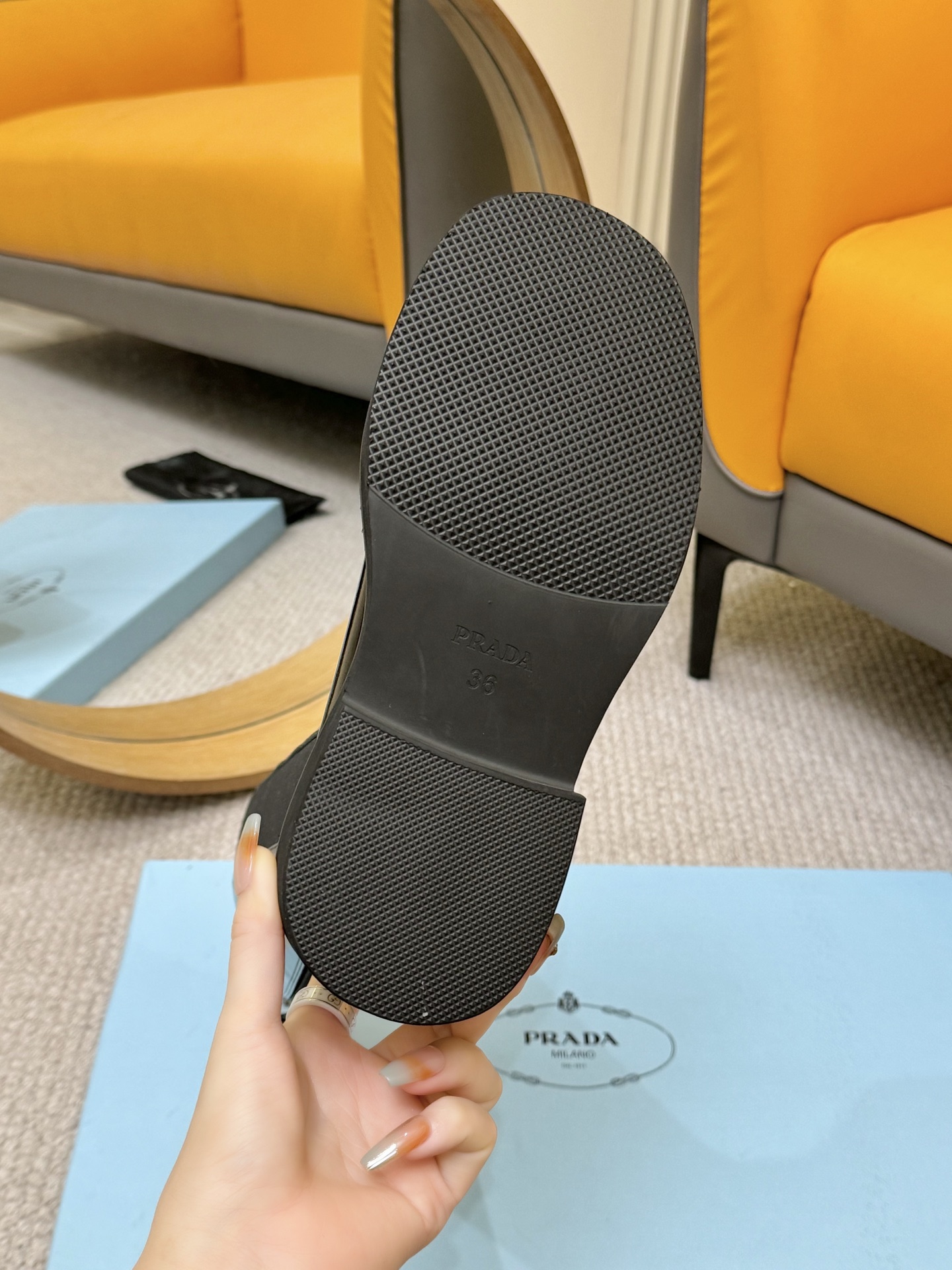 這款鞋子是AAAAA 1:1 質量(非常棒). 使用了和原版一模一樣的材料. 商標部分也保持了和普拉達/Prada一樣. 圖片拍攝是實物鞋子拍攝, 您所收到的實物保證和我們圖片一模一樣.