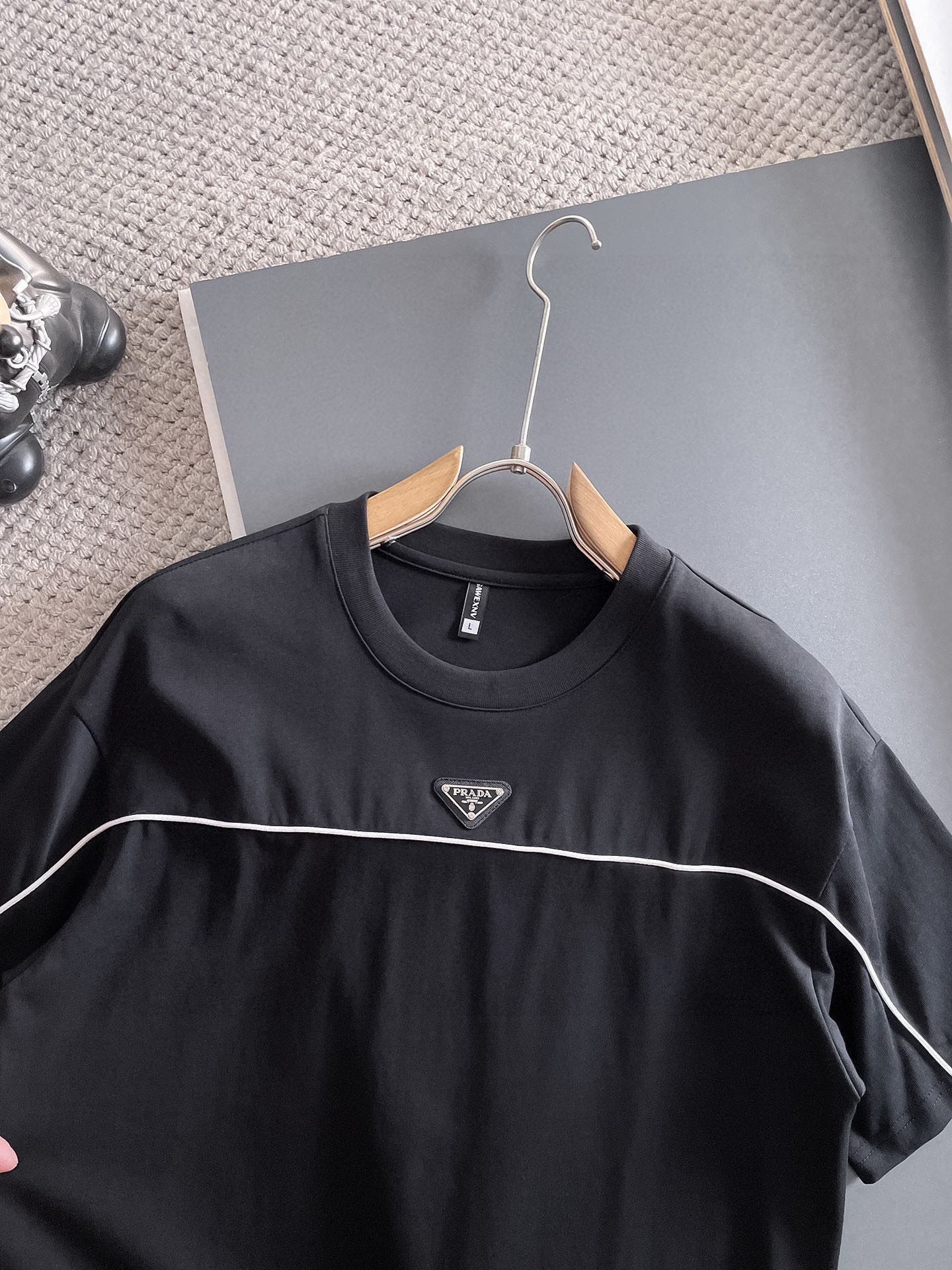 這款衣服是AAAAA 1:1 質量(非常棒). 使用了和原版一模一樣的材料. 商標部分也保持了和普拉達/Prada一樣. 圖片拍攝是實物衣服拍攝, 您所收到的實物保證和我們圖片一模一樣.
