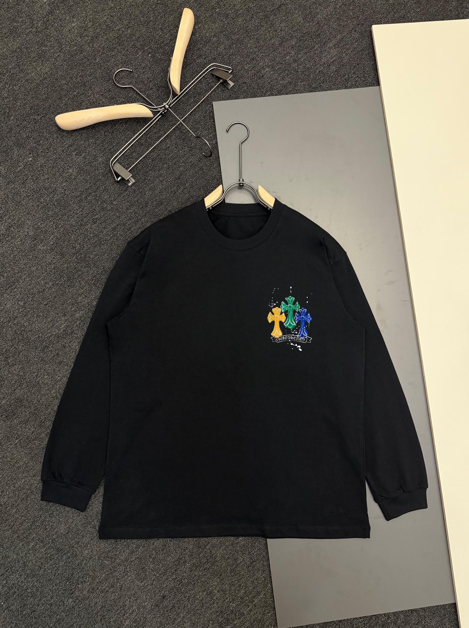 這款衣服是AAAAA 1:1 質量(非常棒). 使用了和原版一模一樣的材料. 商標部分也保持了和鉻心/Chrome Hearts一樣. 圖片拍攝是實物衣服拍攝, 您所收到的實物保證和我們圖片一模一樣.