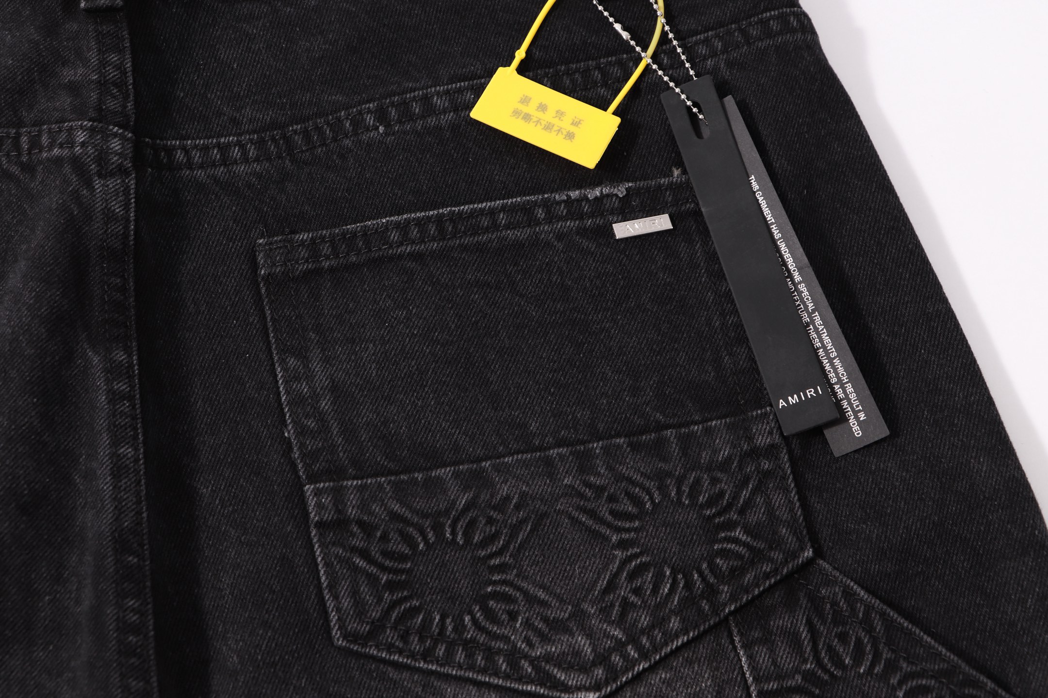 這款衣服是AAAAA 1:1 質量(非常棒). 使用了和原版一模一樣的材料. 商標部分也保持了和AMIRI一樣. 圖片拍攝是實物衣服拍攝, 您所收到的實物保證和我們圖片一模一樣.