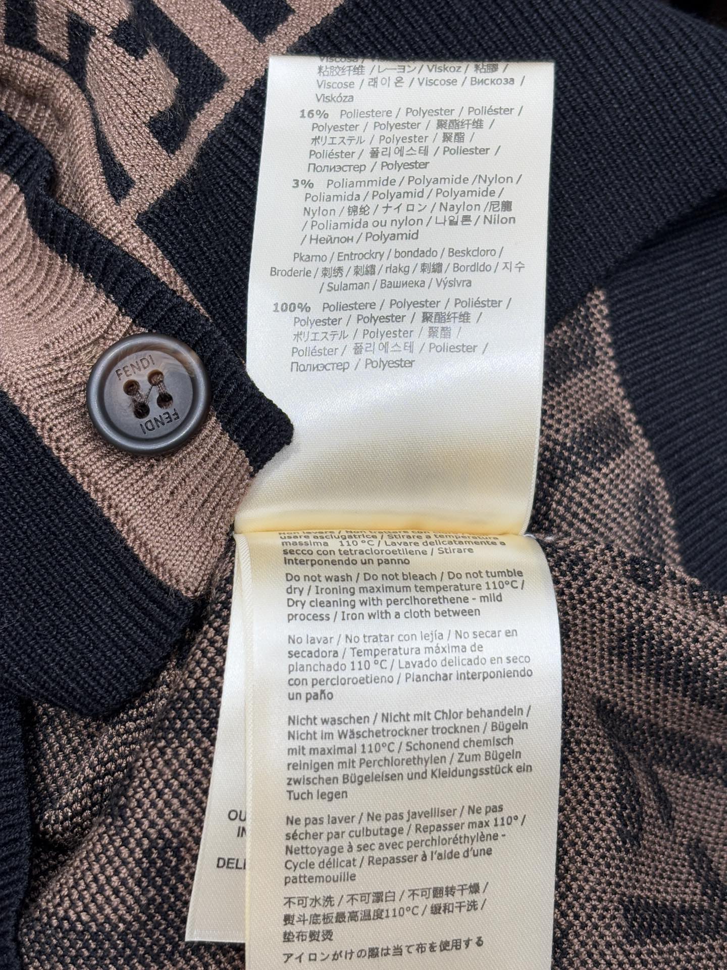 這款衣服是AAAAA 1:1 質量(非常棒). 使用了和原版一模一樣的材料. 商標部分也保持了和芬迪/Fendi一樣. 圖片拍攝是實物衣服拍攝, 您所收到的實物保證和我們圖片一模一樣.