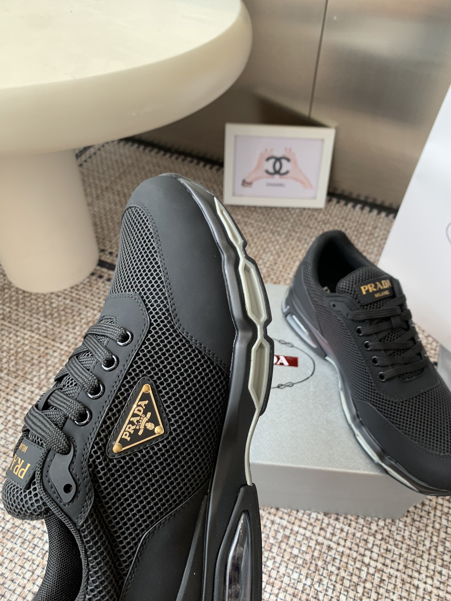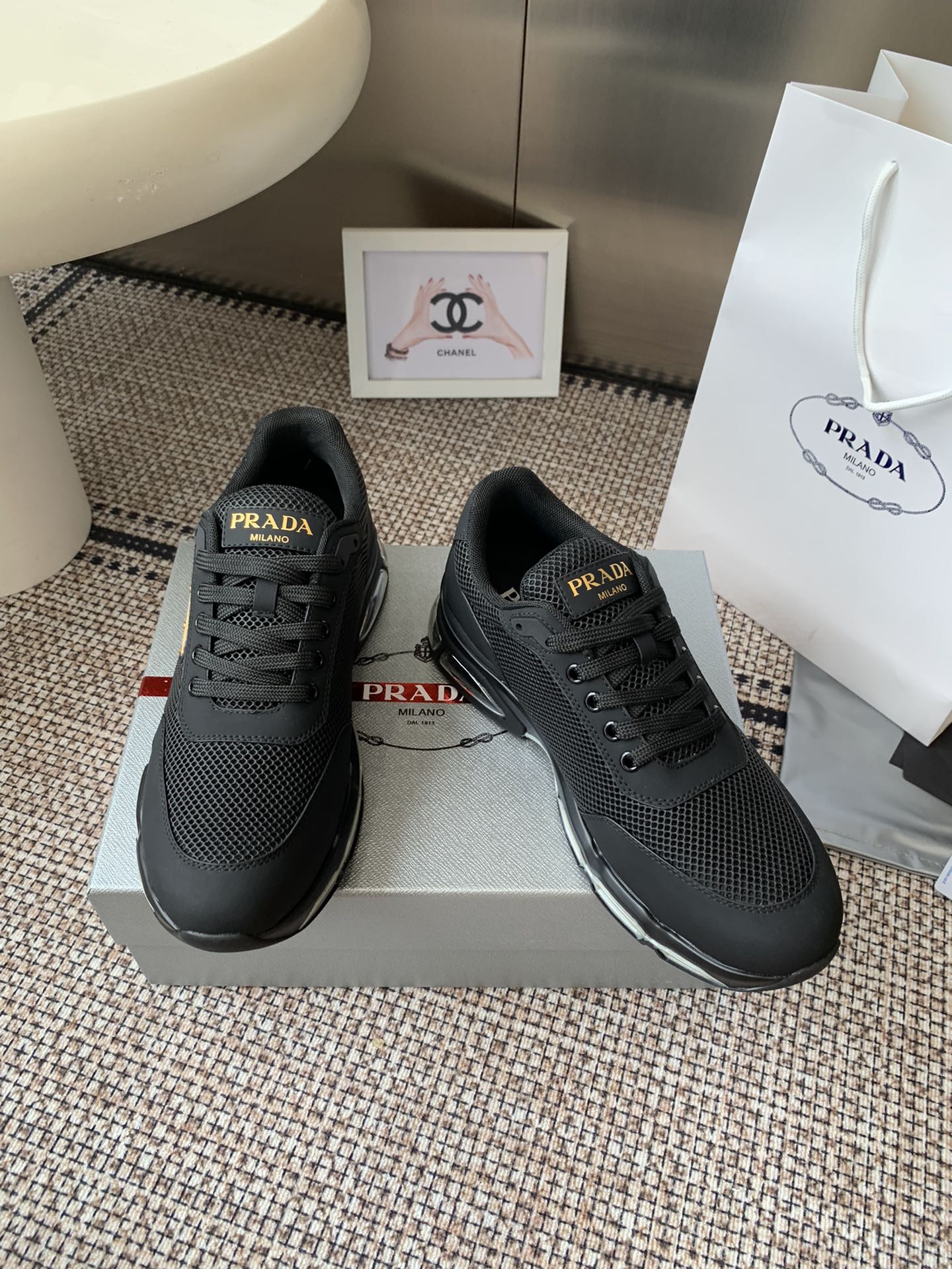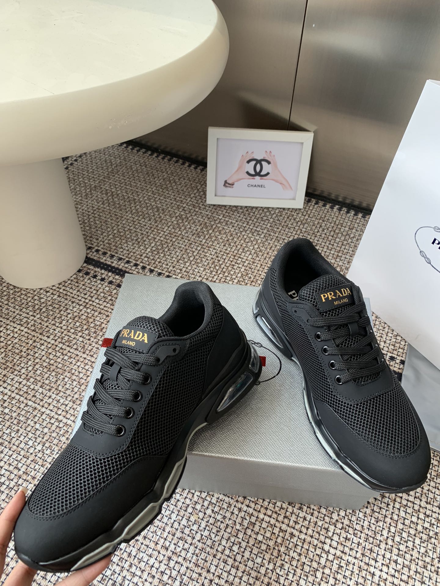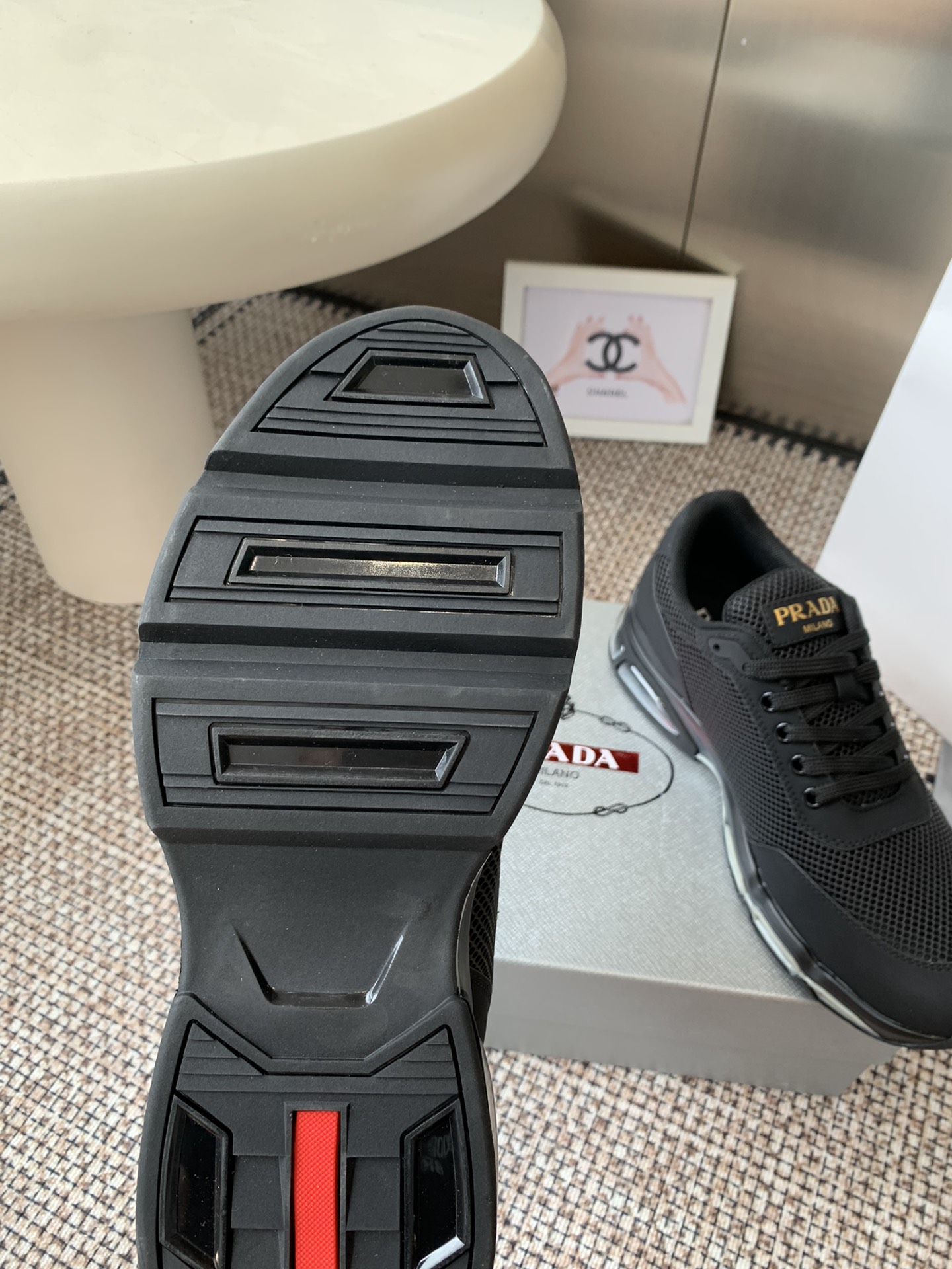 這款鞋子是AAAAA 1:1 質量(非常棒). 使用了和原版一模一樣的材料. 商標部分也保持了和普拉達/Prada一樣. 圖片拍攝是實物鞋子拍攝, 您所收到的實物保證和我們圖片一模一樣.