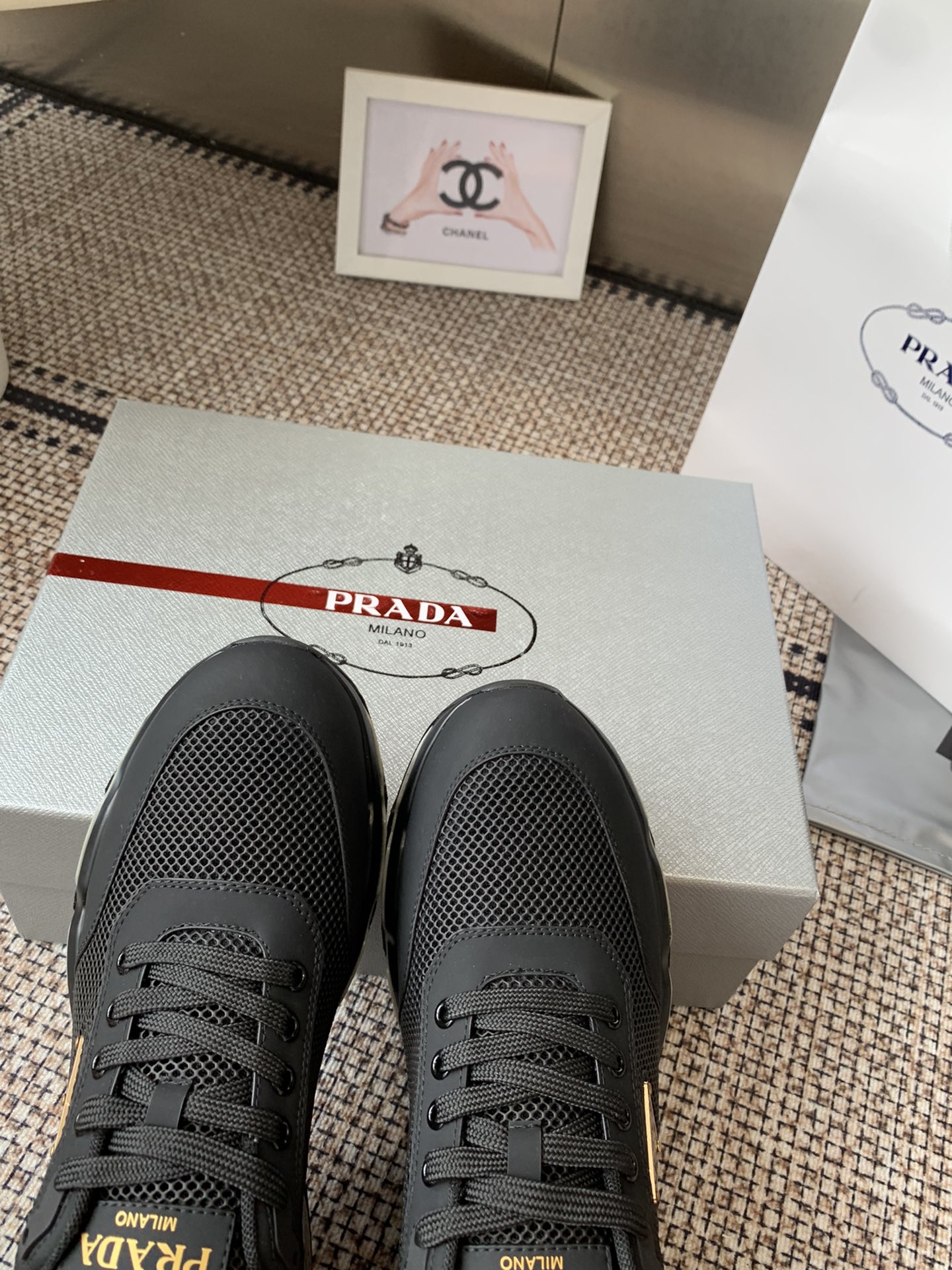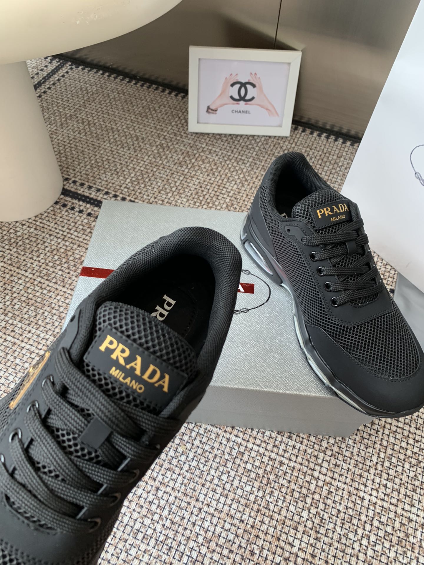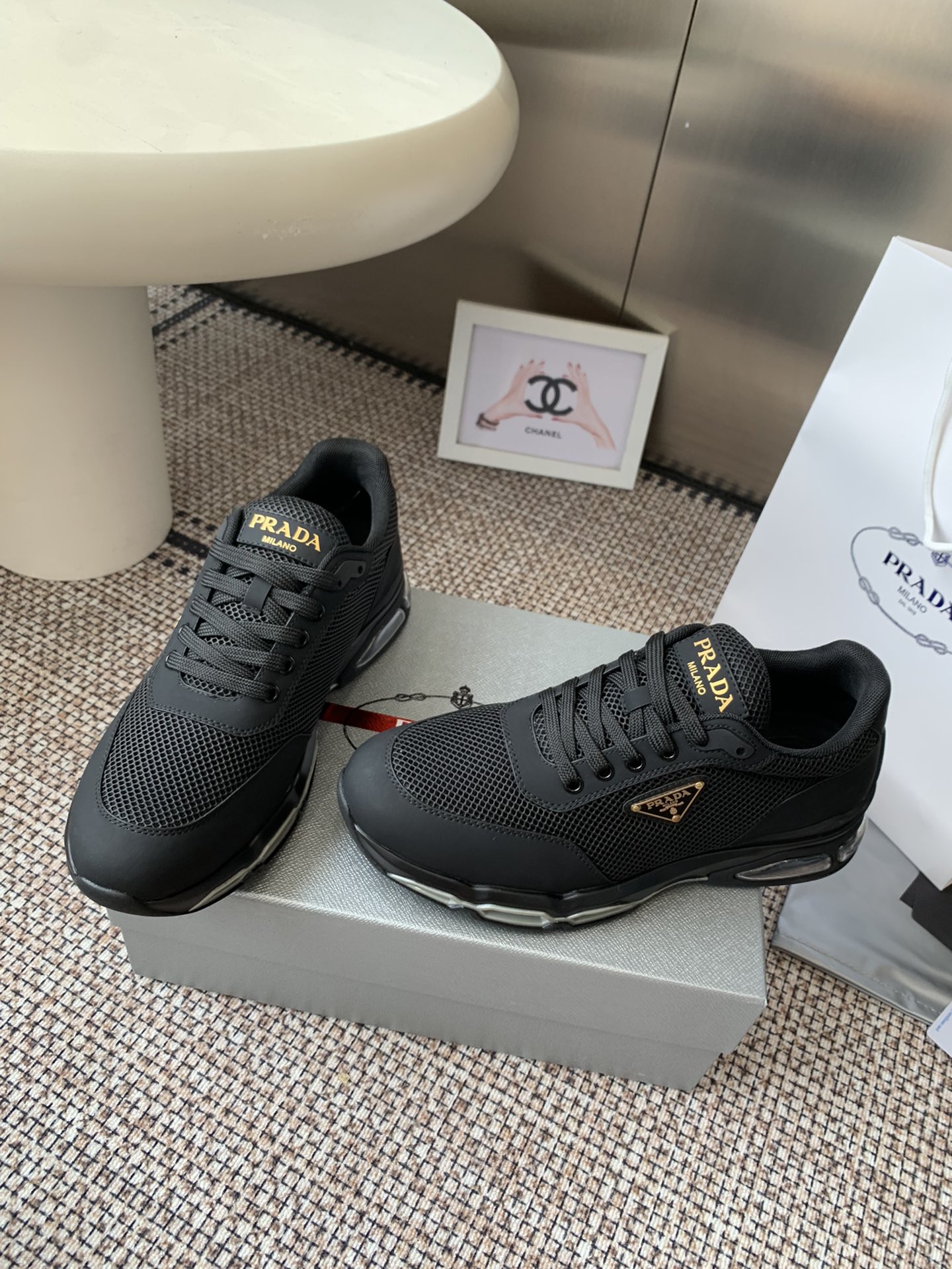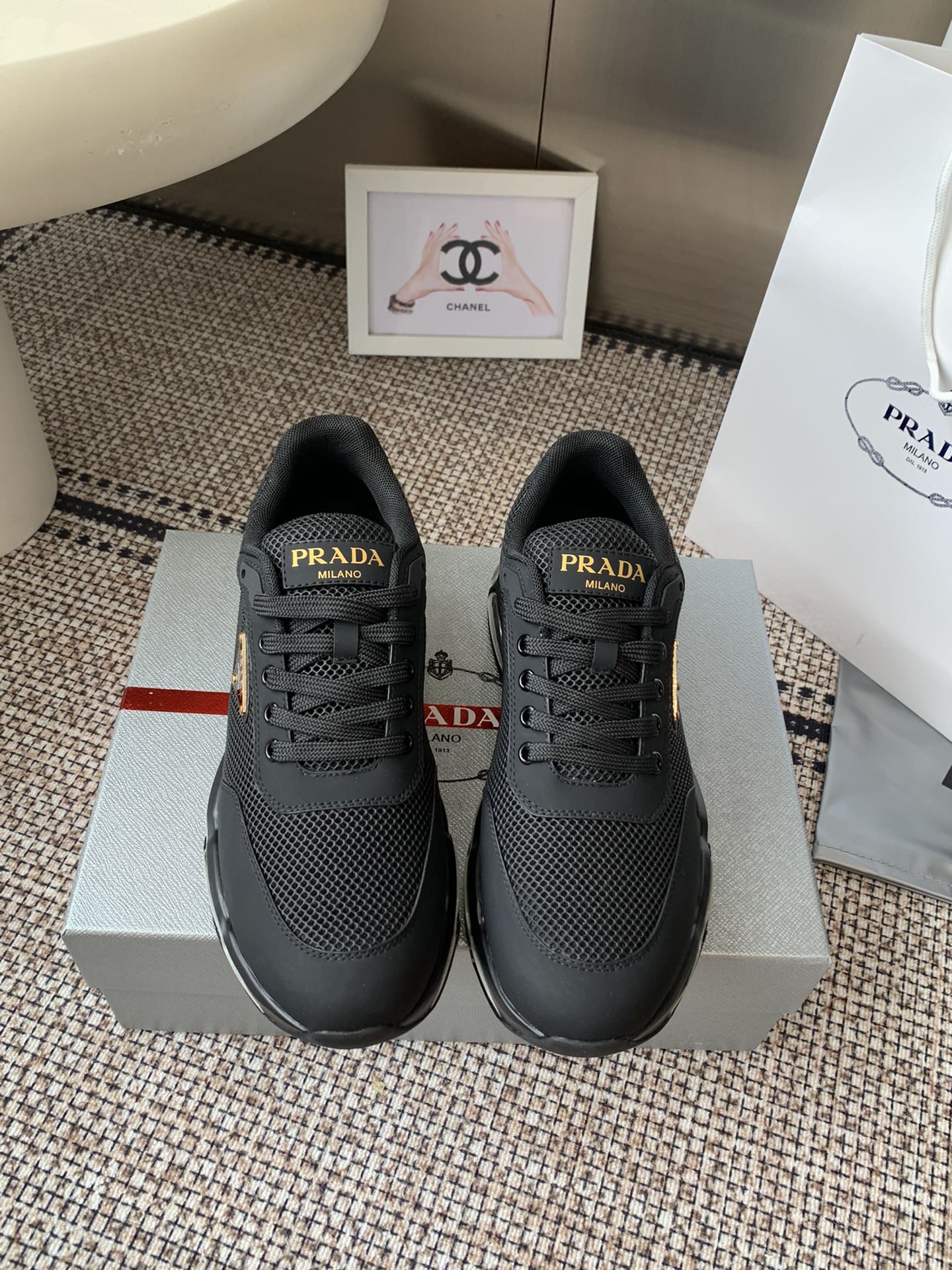 這款鞋子是AAAAA 1:1 質量(非常棒). 使用了和原版一模一樣的材料. 商標部分也保持了和普拉達/Prada一樣. 圖片拍攝是實物鞋子拍攝, 您所收到的實物保證和我們圖片一模一樣.