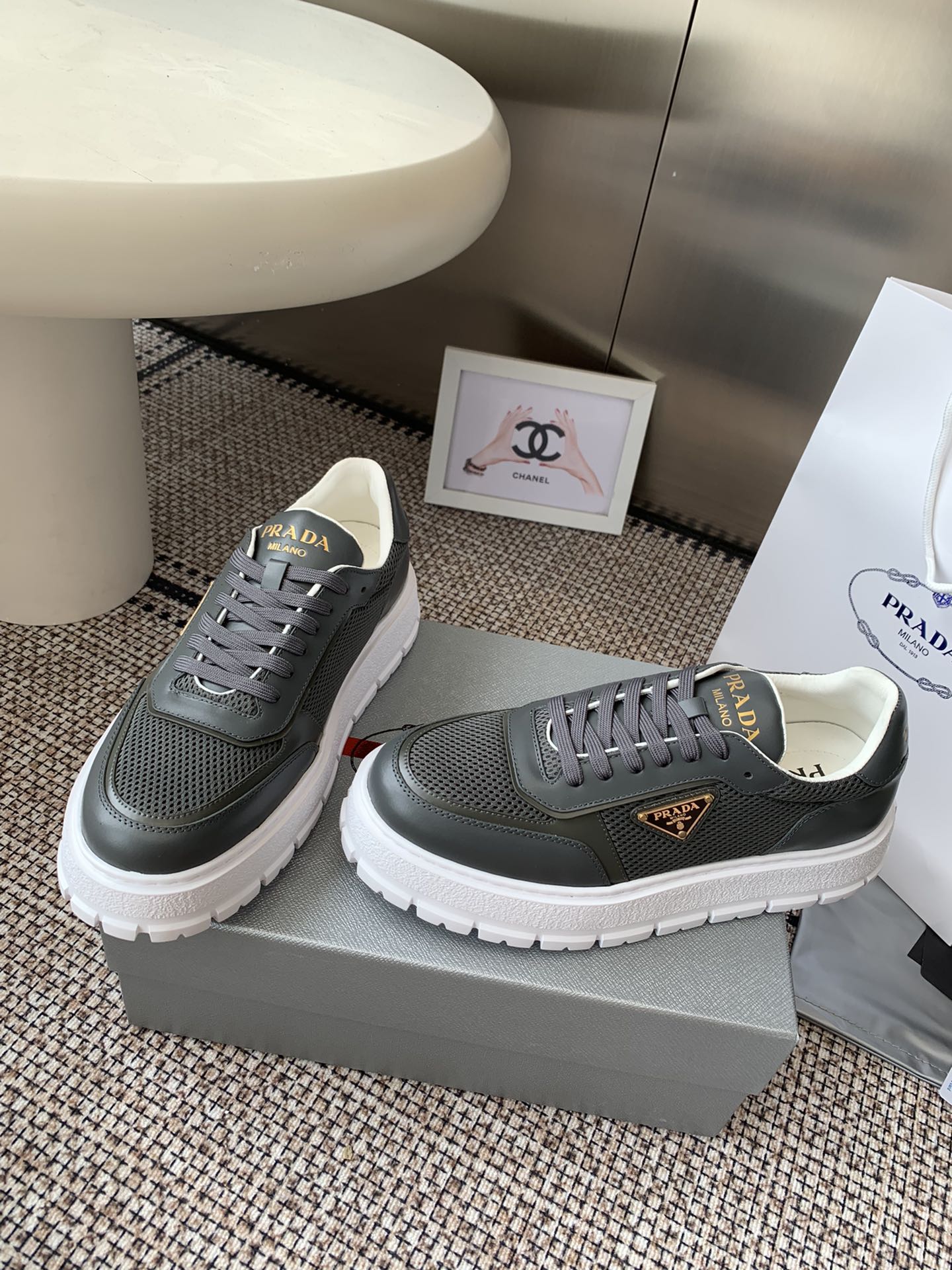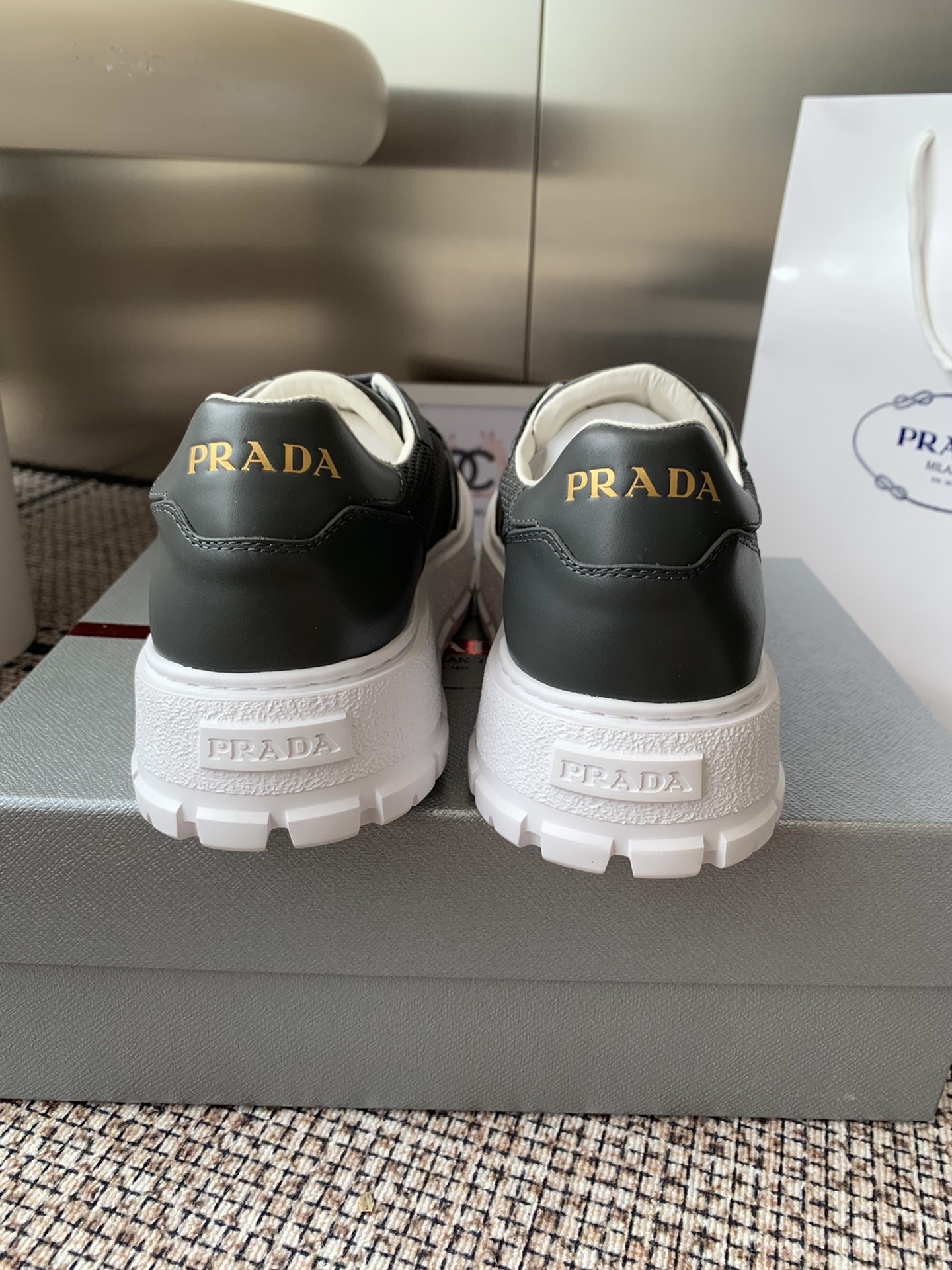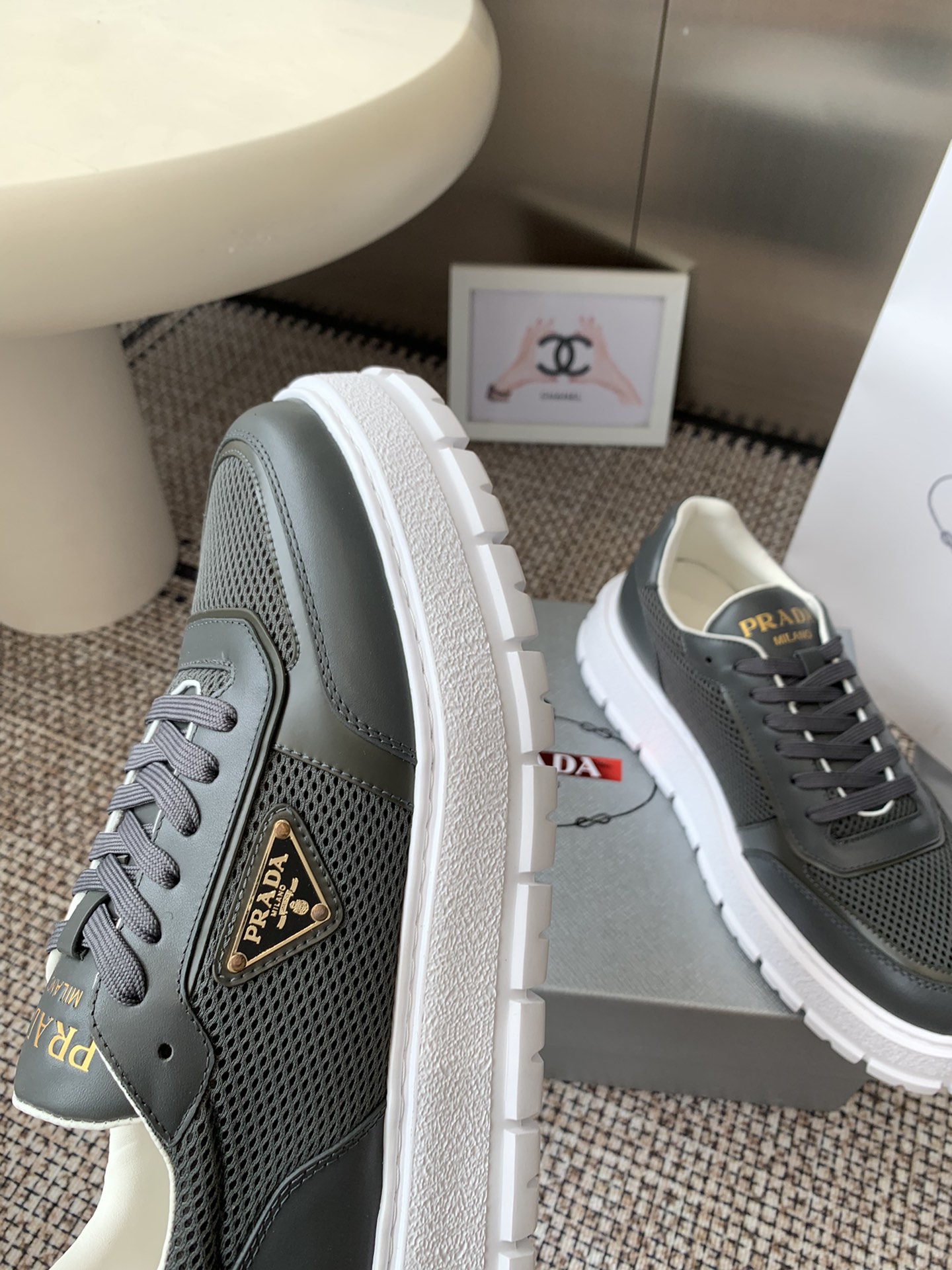 這款鞋子是AAAAA 1:1 質量(非常棒). 使用了和原版一模一樣的材料. 商標部分也保持了和普拉達/Prada一樣. 圖片拍攝是實物鞋子拍攝, 您所收到的實物保證和我們圖片一模一樣.