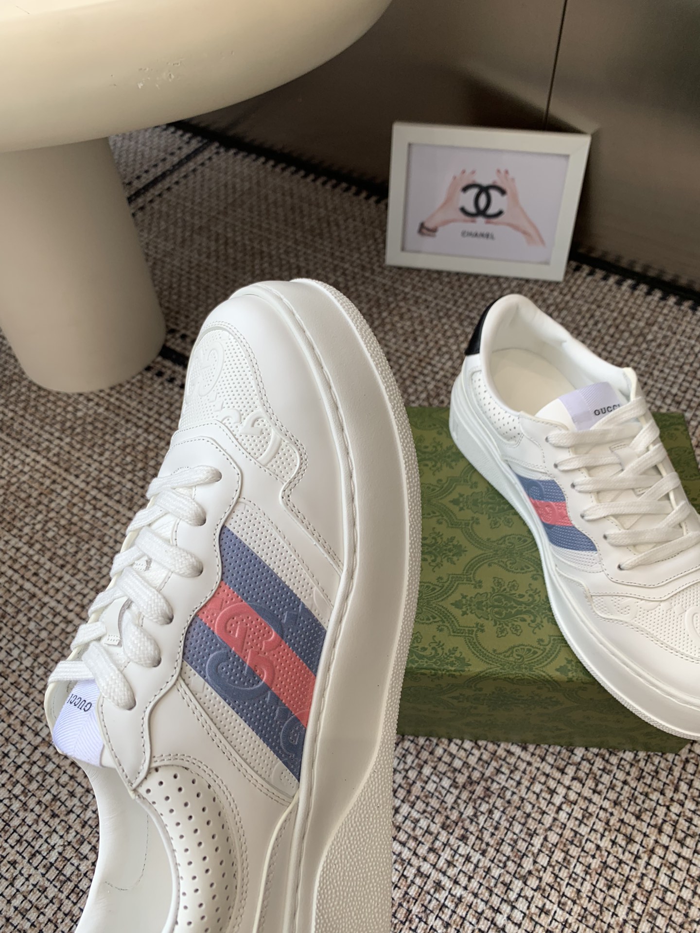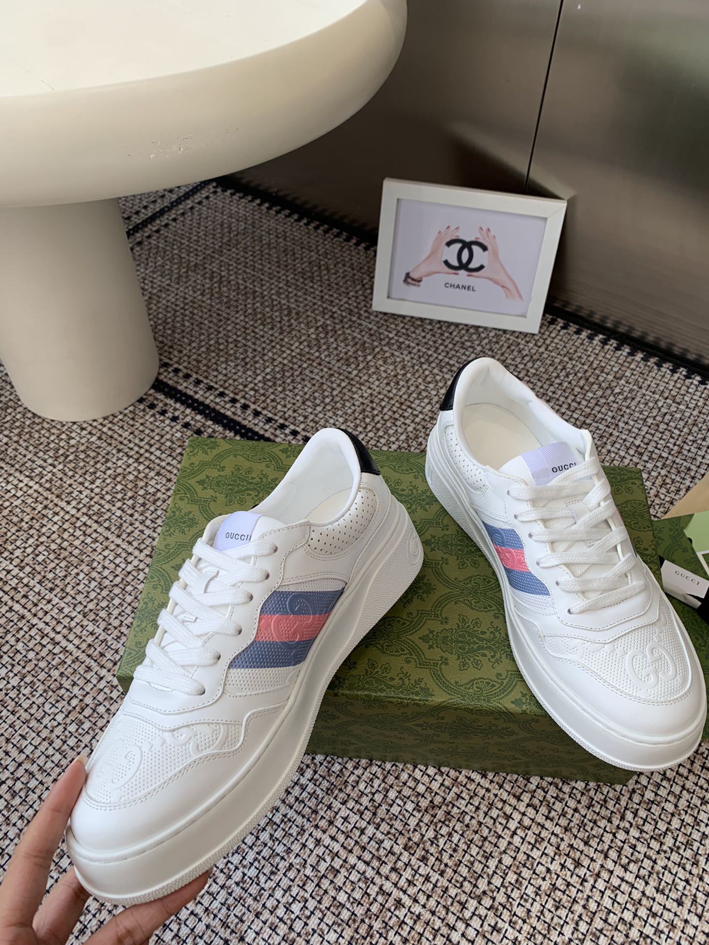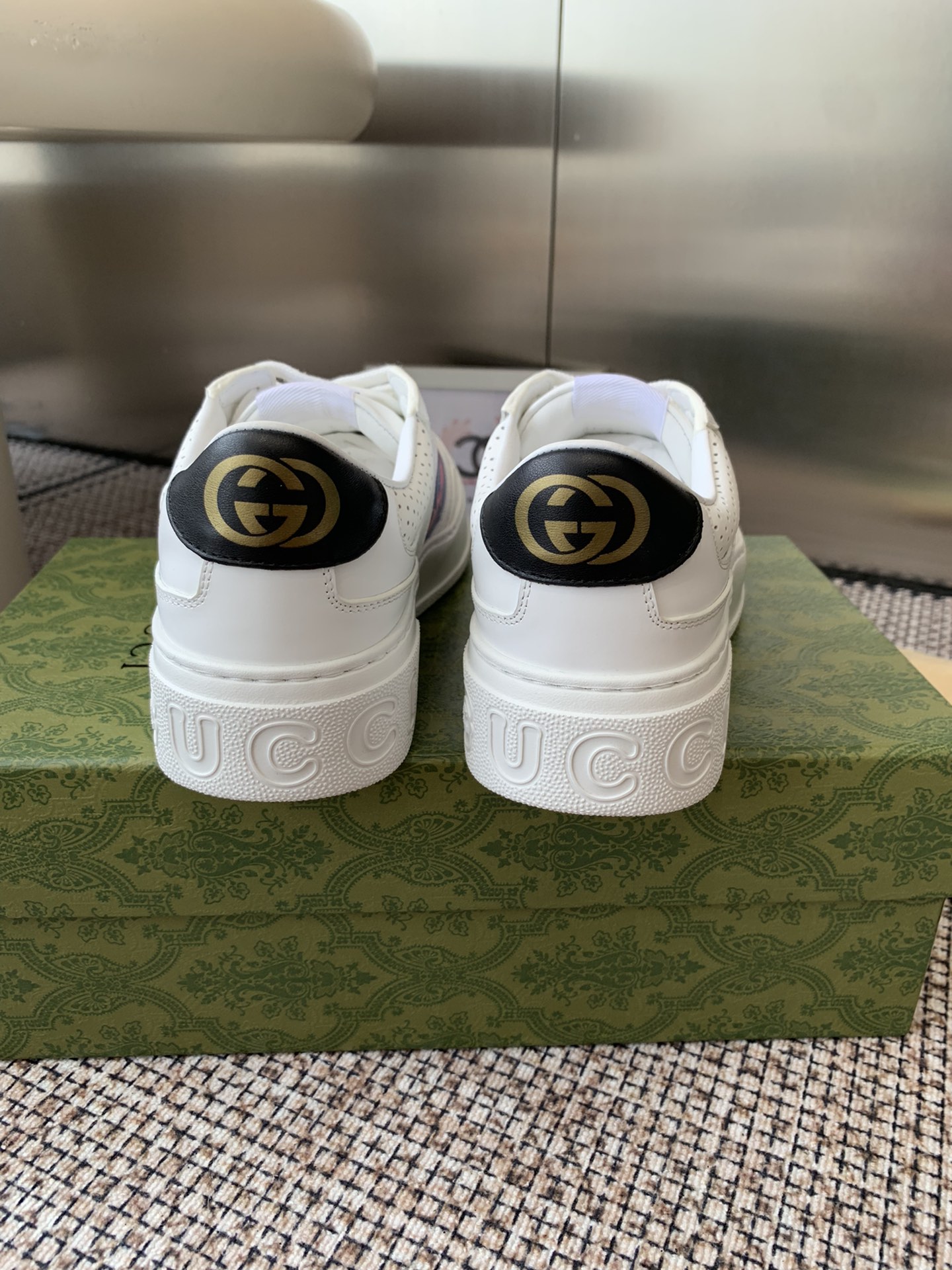 這款鞋子是AAAAA 1:1 質量(非常棒). 使用了和原版一模一樣的材料. 商標部分也保持了和古奇/Gucci一樣. 圖片拍攝是實物鞋子拍攝, 您所收到的實物保證和我們圖片一模一樣.