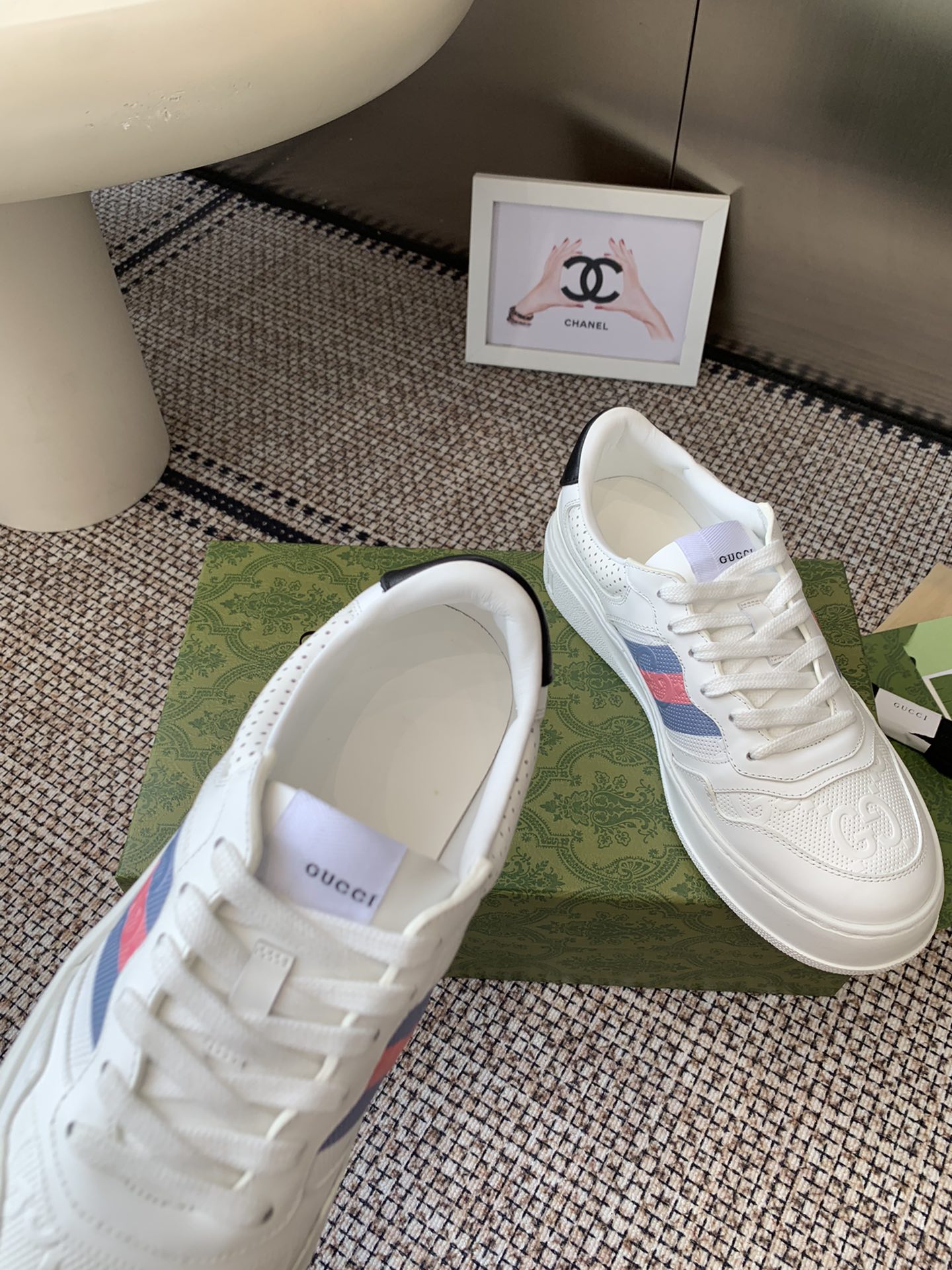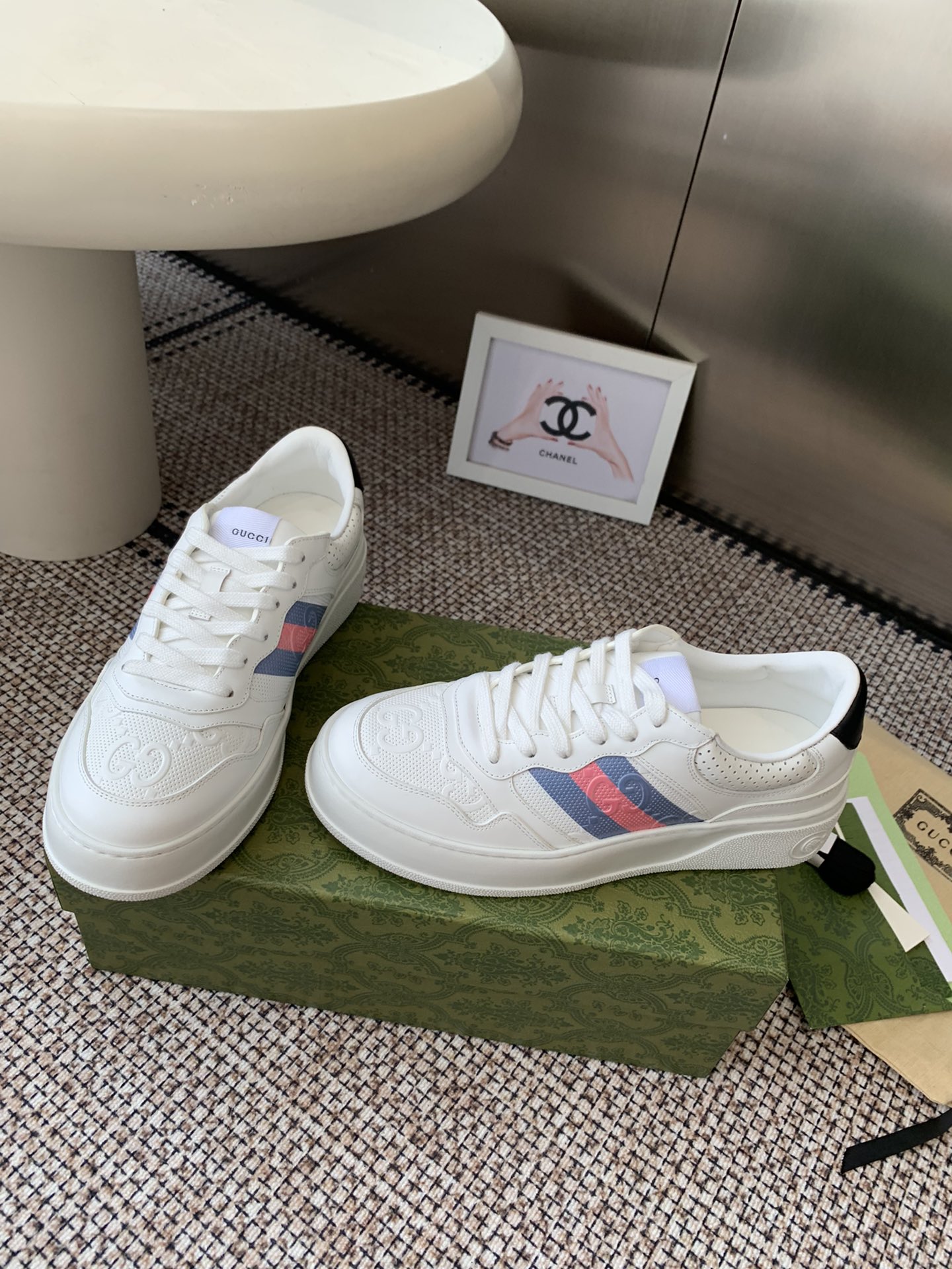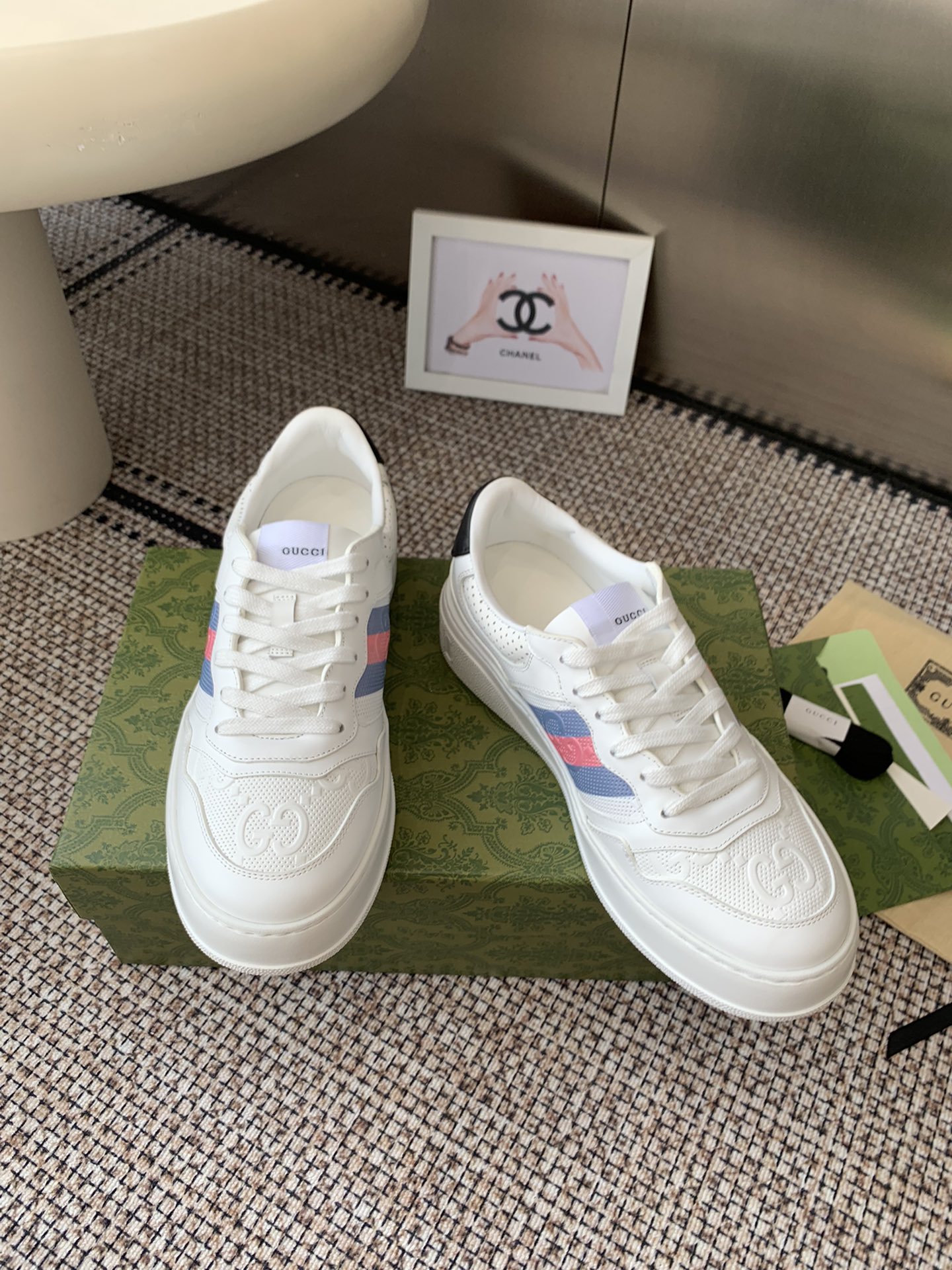 這款鞋子是AAAAA 1:1 質量(非常棒). 使用了和原版一模一樣的材料. 商標部分也保持了和古奇/Gucci一樣. 圖片拍攝是實物鞋子拍攝, 您所收到的實物保證和我們圖片一模一樣.