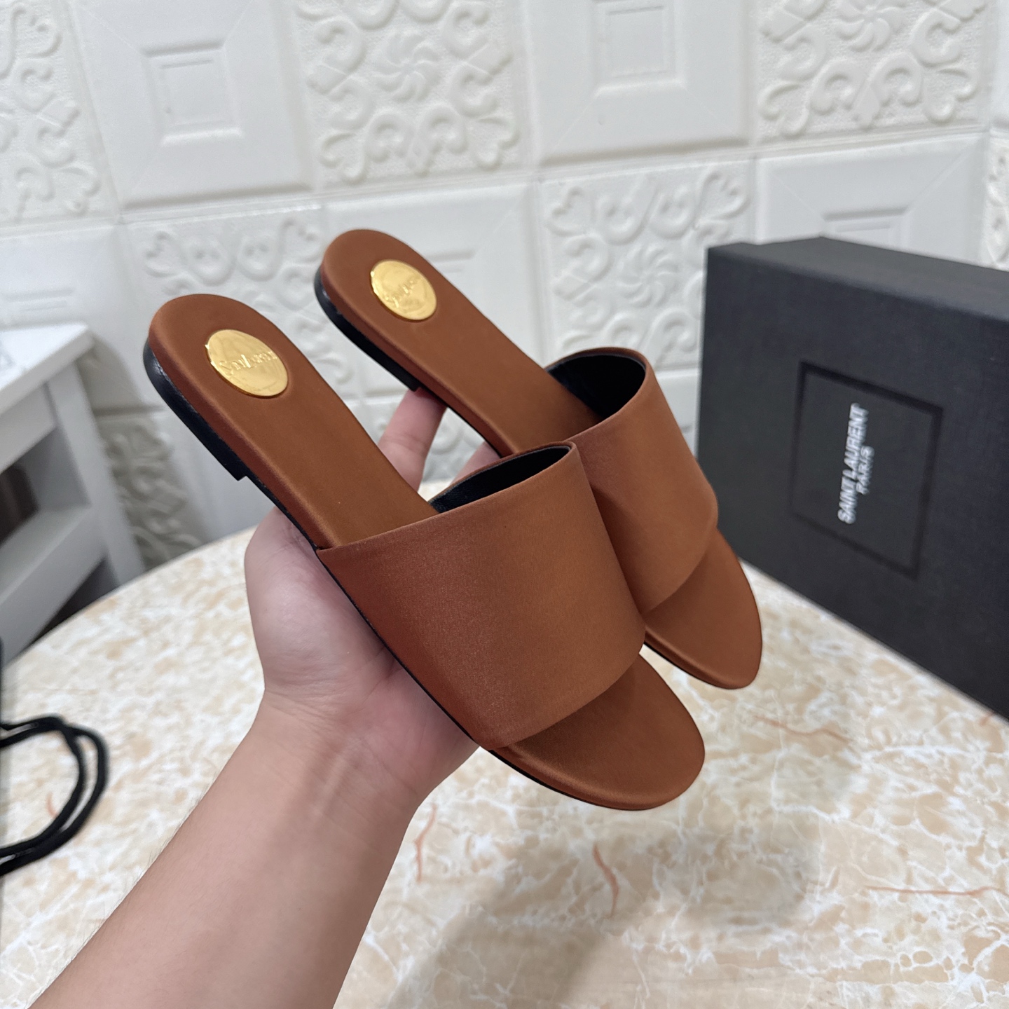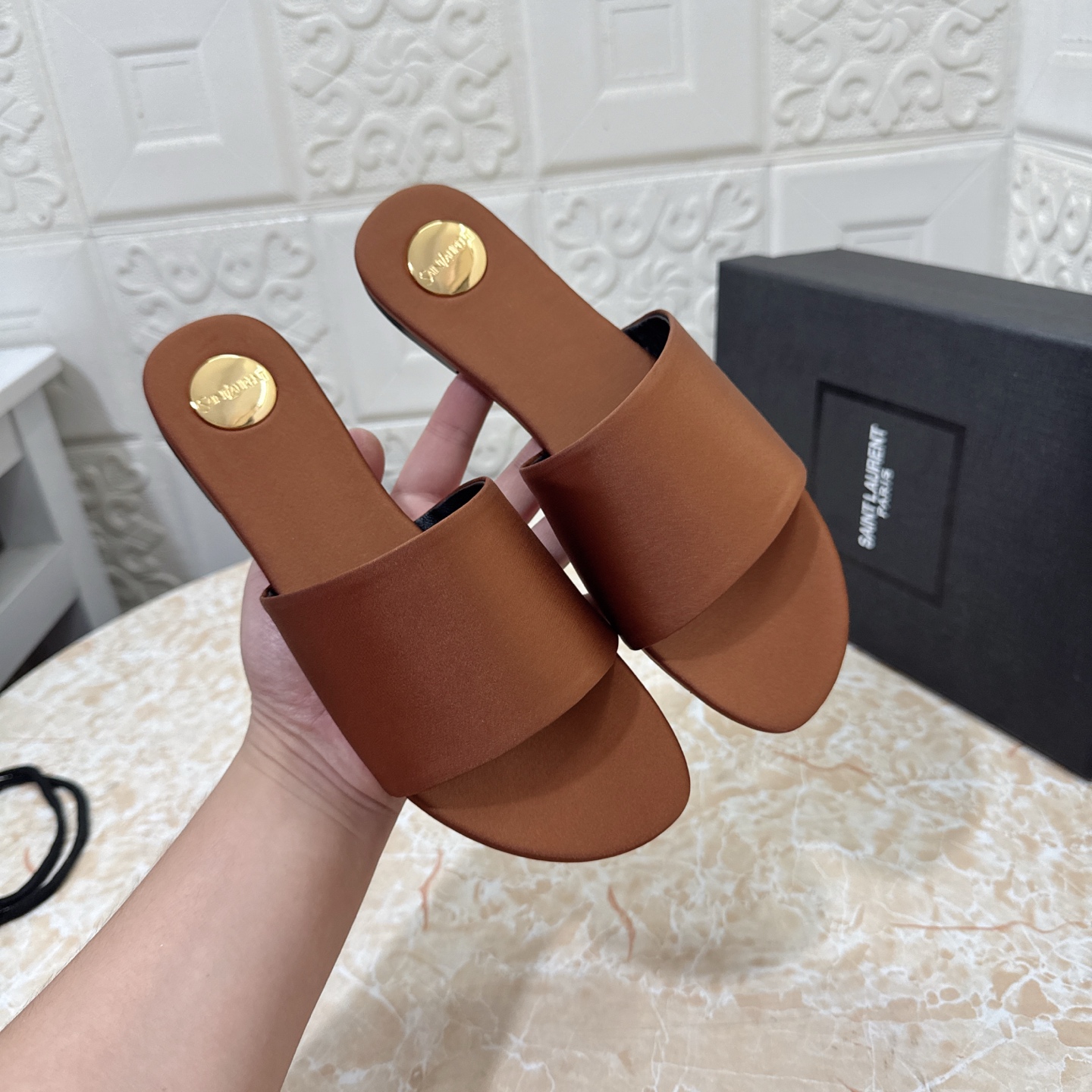 這款鞋子是AAAAA 1:1 質量(非常棒). 使用了和原版一模一樣的材料. 商標部分也保持了和聖羅蘭/Saint Laurent一樣. 圖片拍攝是實物鞋子拍攝, 您所收到的實物保證和我們圖片一模一樣.