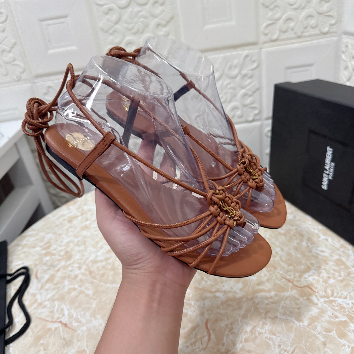 這款鞋子是AAAAA 1:1 質量(非常棒). 使用了和原版一模一樣的材料. 商標部分也保持了和聖羅蘭/Saint Laurent一樣. 圖片拍攝是實物鞋子拍攝, 您所收到的實物保證和我們圖片一模一樣.