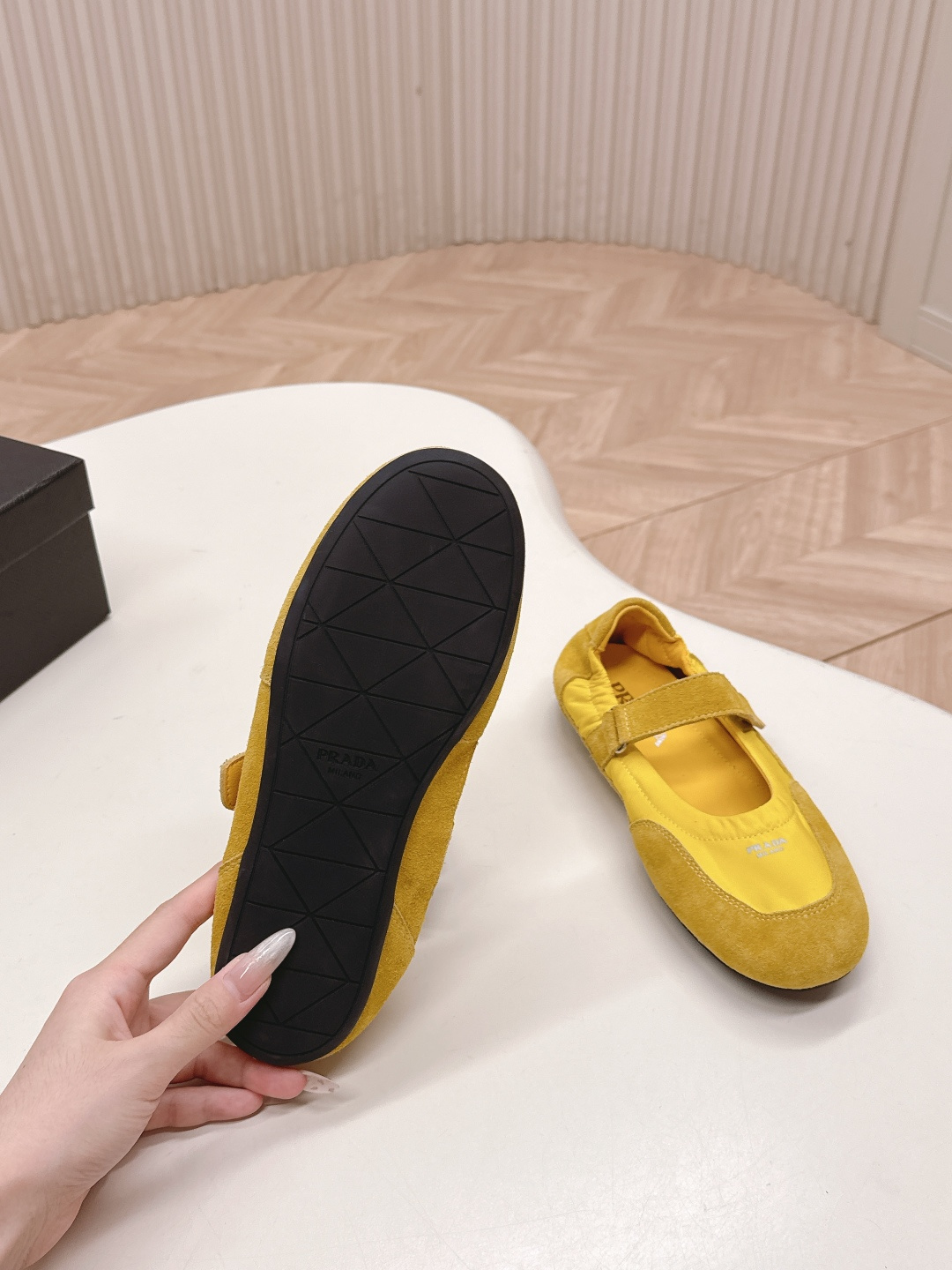 這款鞋子是AAAAA 1:1 質量(非常棒). 使用了和原版一模一樣的材料. 商標部分也保持了和普拉達/Prada一樣. 圖片拍攝是實物鞋子拍攝, 您所收到的實物保證和我們圖片一模一樣.