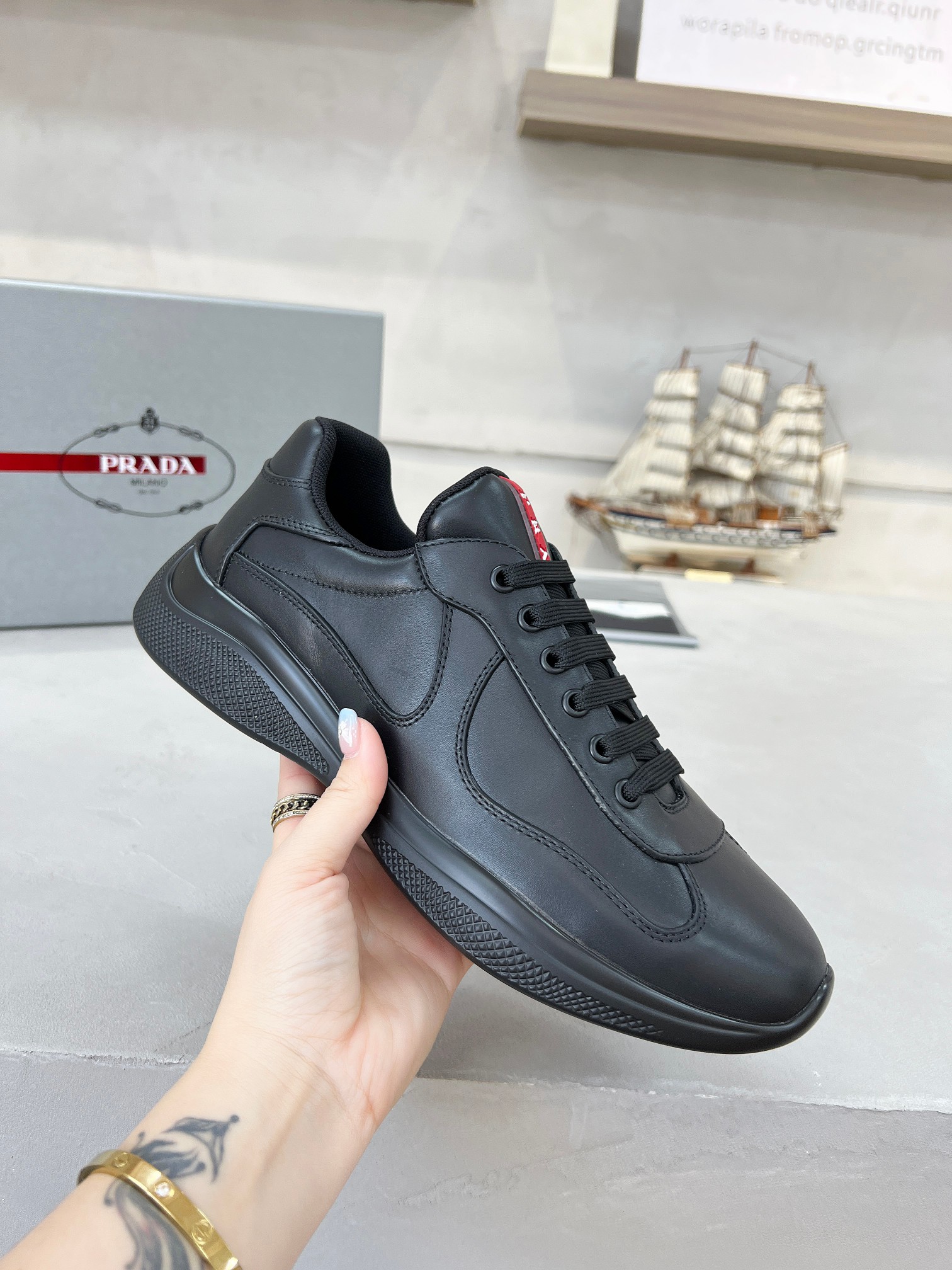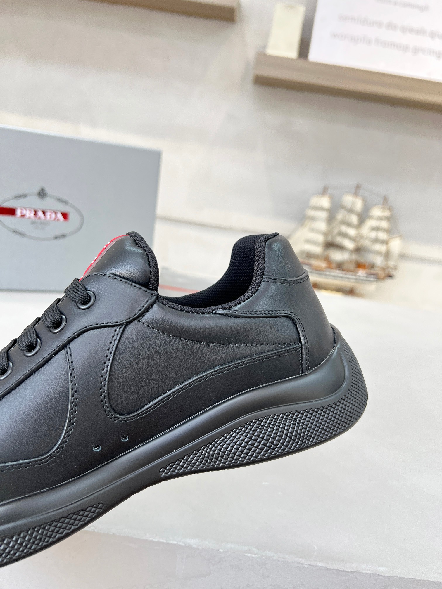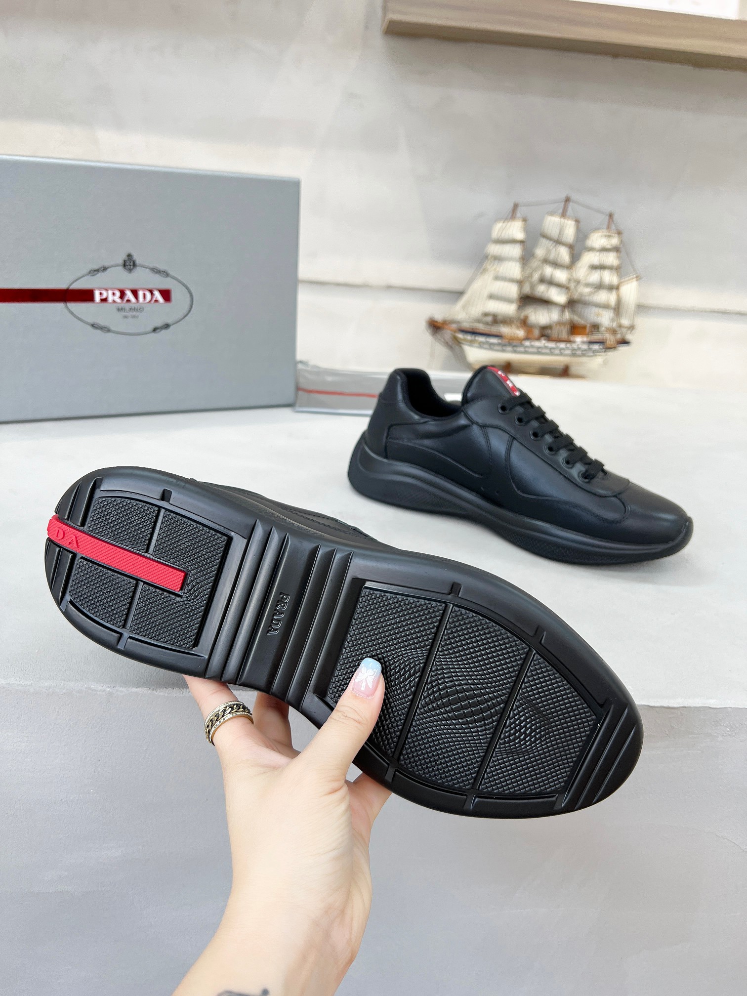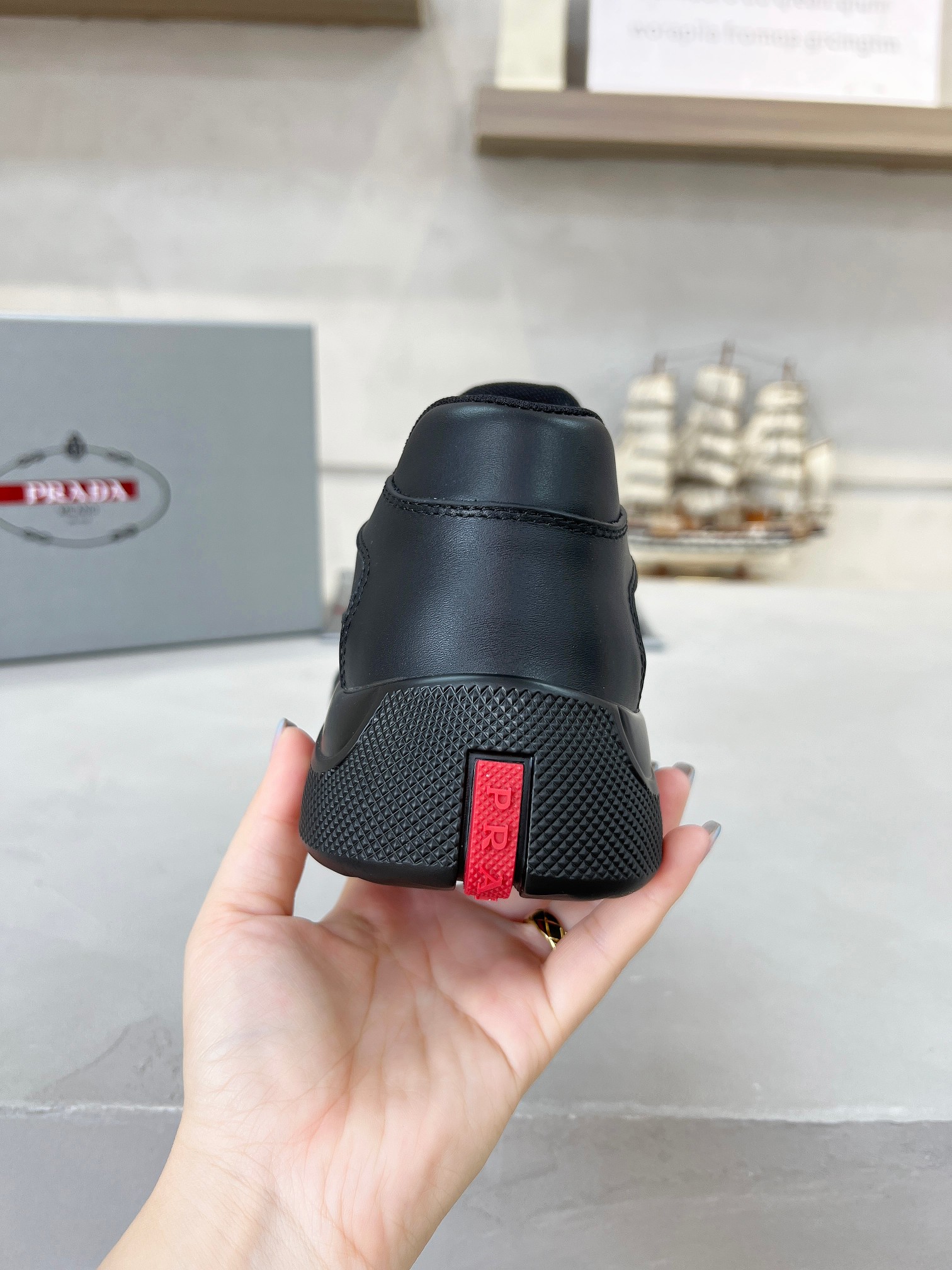 這款鞋子是AAAAA 1:1 質量(非常棒). 使用了和原版一模一樣的材料. 商標部分也保持了和普拉達/Prada一樣. 圖片拍攝是實物鞋子拍攝, 您所收到的實物保證和我們圖片一模一樣.
