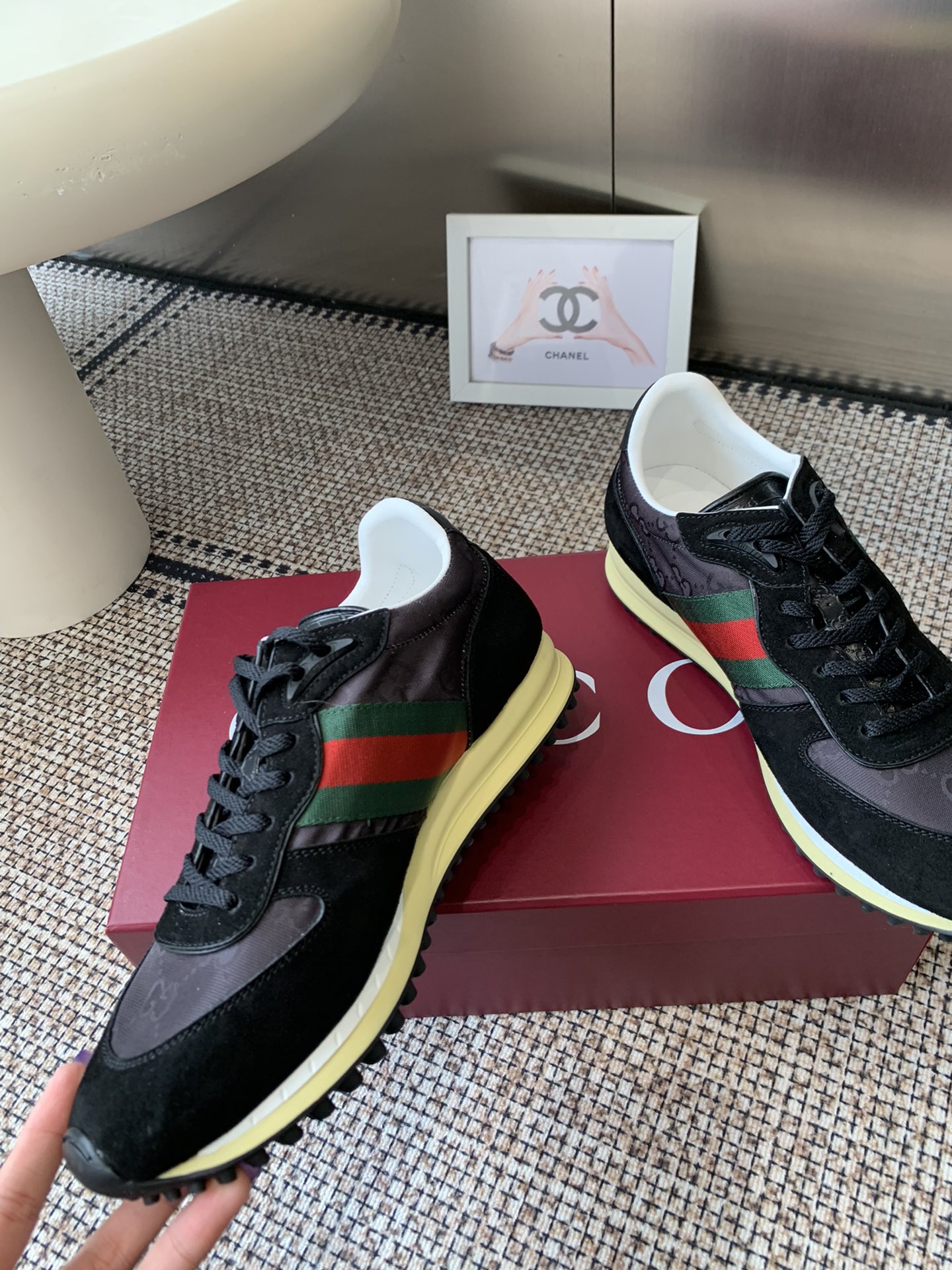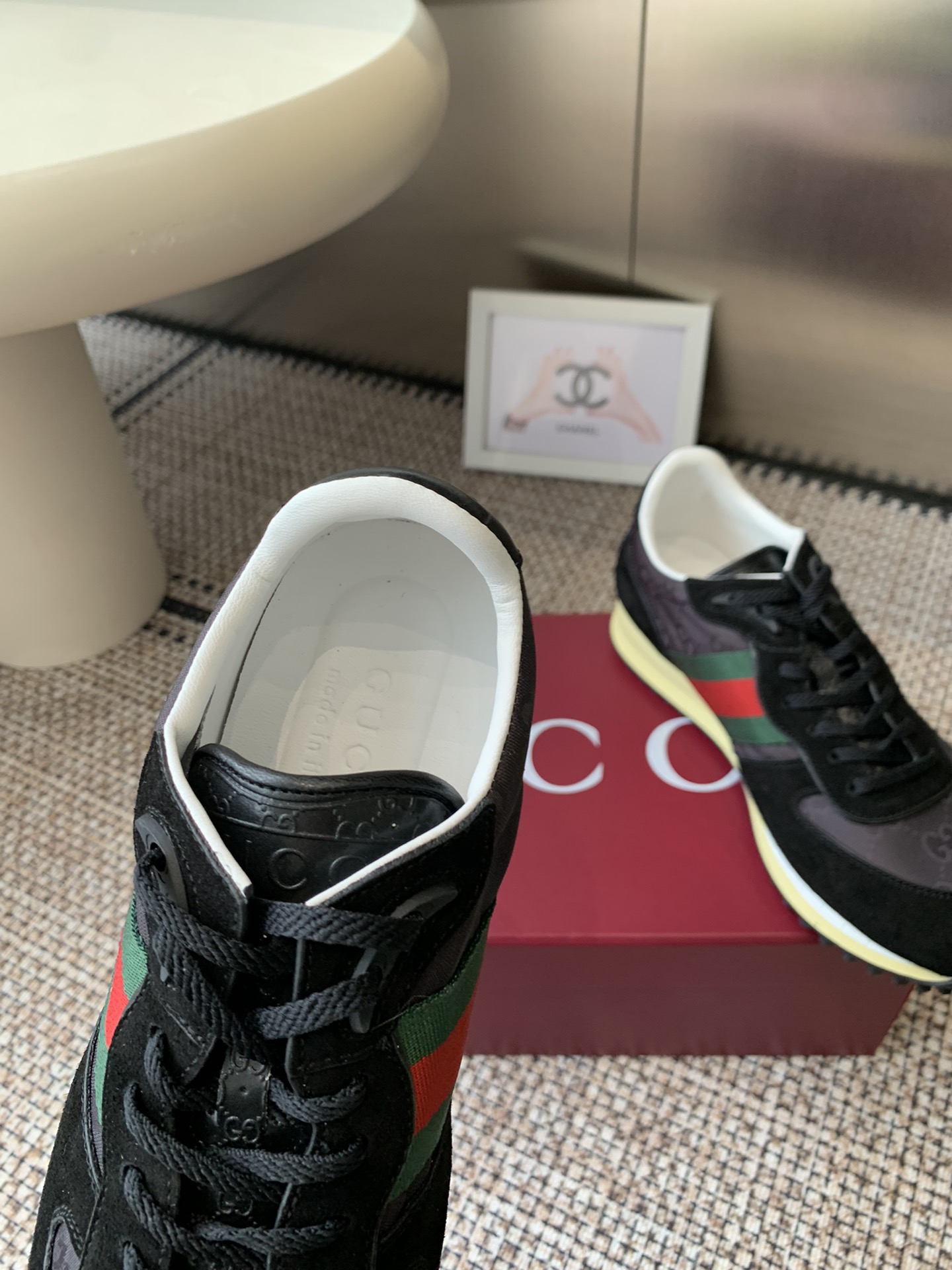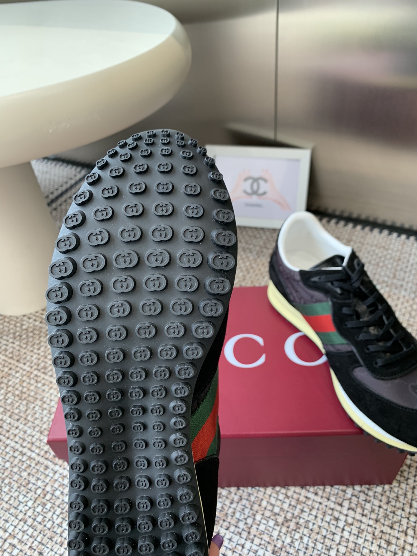 這款鞋子是AAAAA 1:1 質量(非常棒). 使用了和原版一模一樣的材料. 商標部分也保持了和古奇/Gucci一樣. 圖片拍攝是實物鞋子拍攝, 您所收到的實物保證和我們圖片一模一樣.