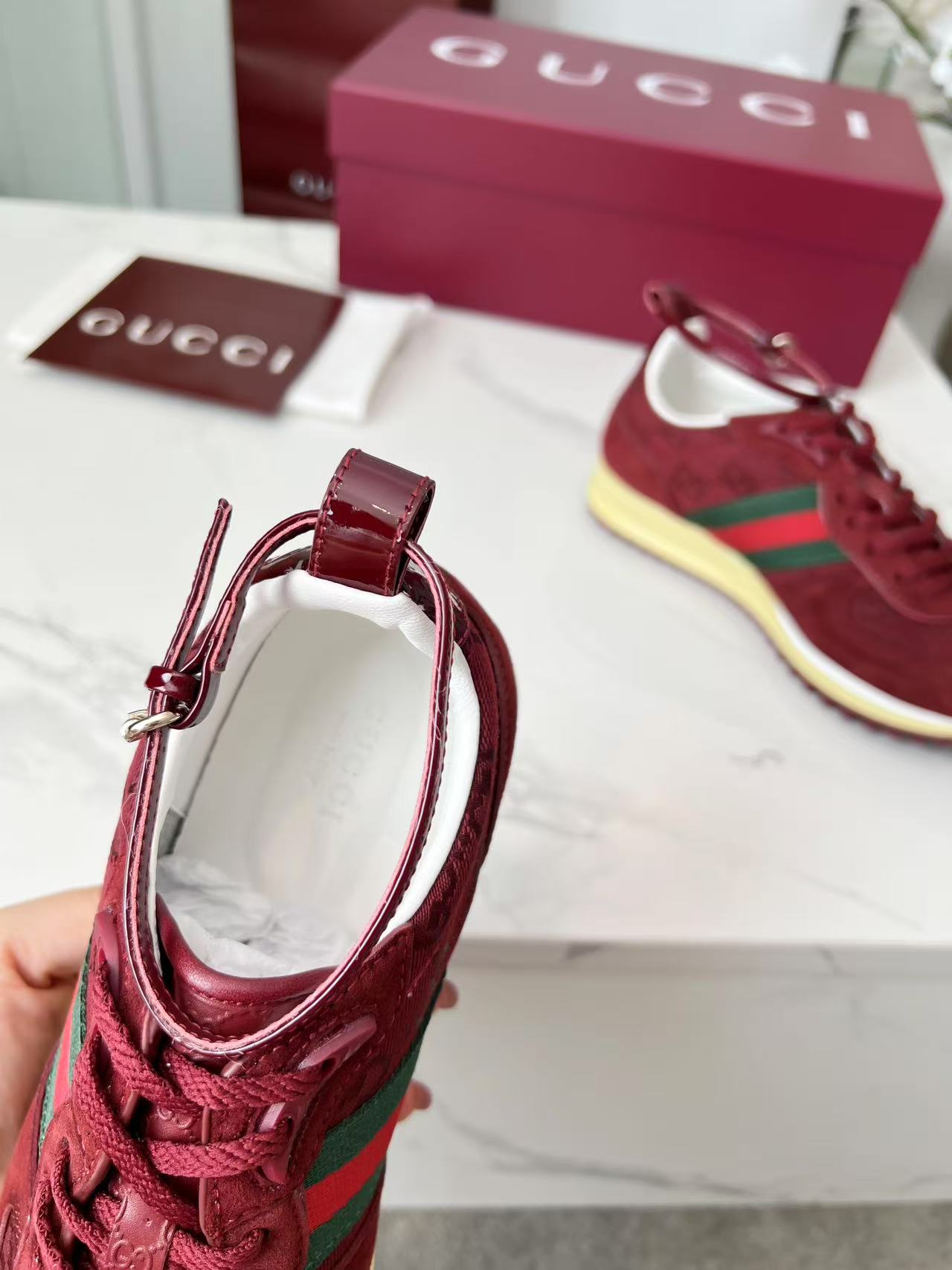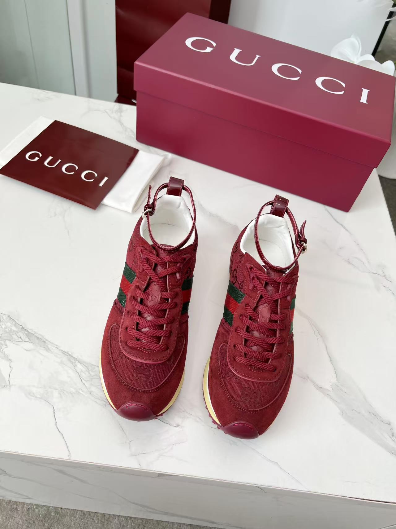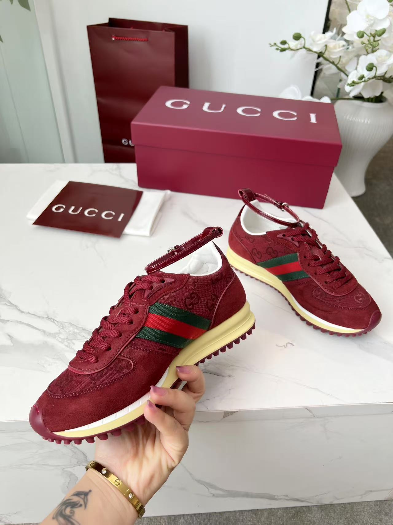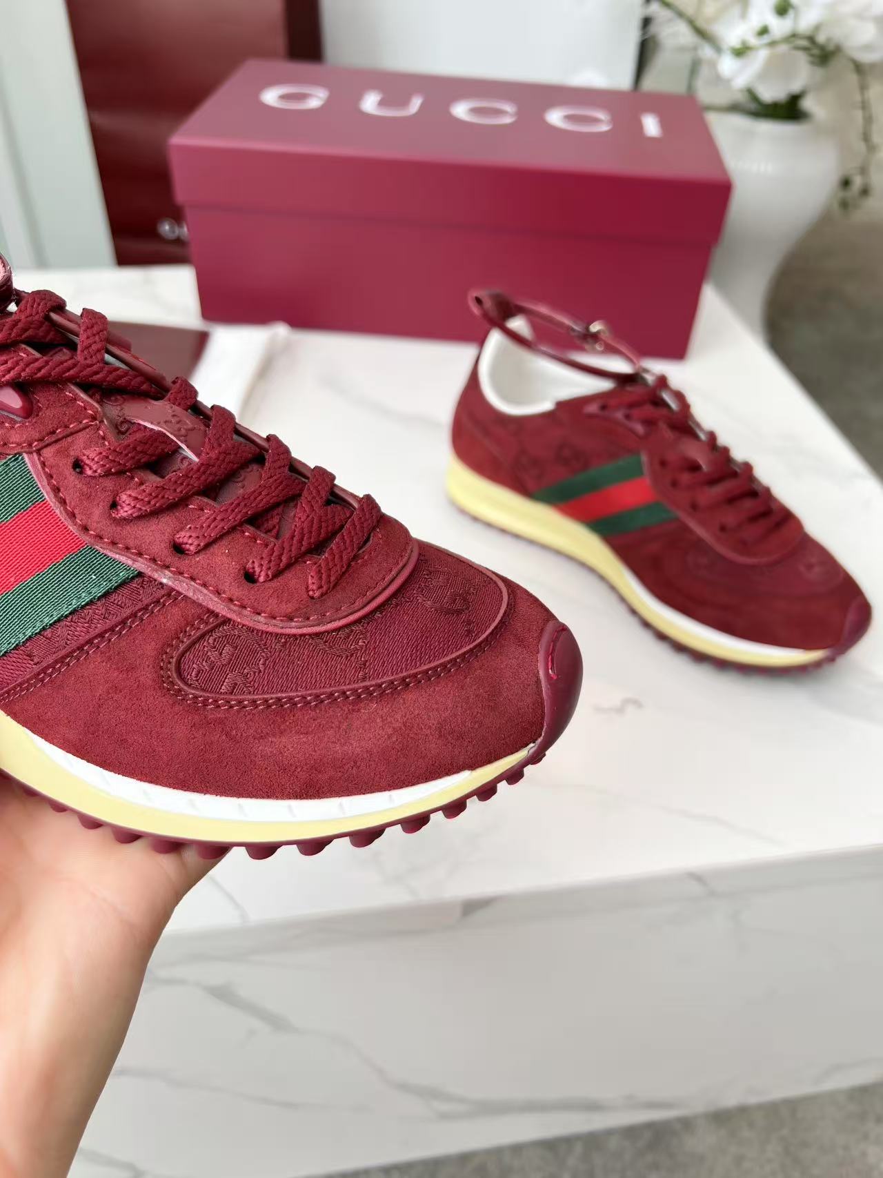 這款鞋子是AAAAA 1:1 質量(非常棒). 使用了和原版一模一樣的材料. 商標部分也保持了和古奇/Gucci一樣. 圖片拍攝是實物鞋子拍攝, 您所收到的實物保證和我們圖片一模一樣.