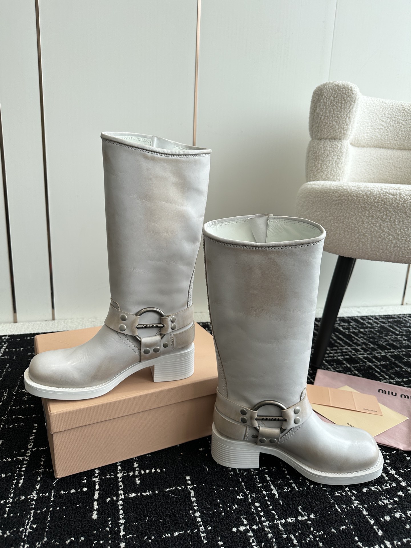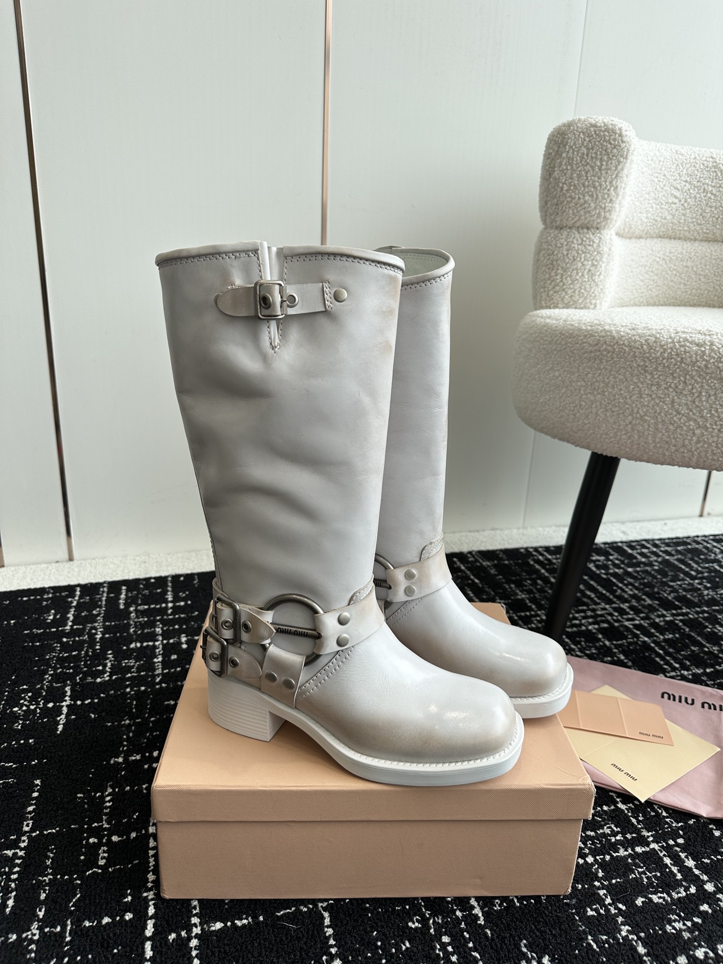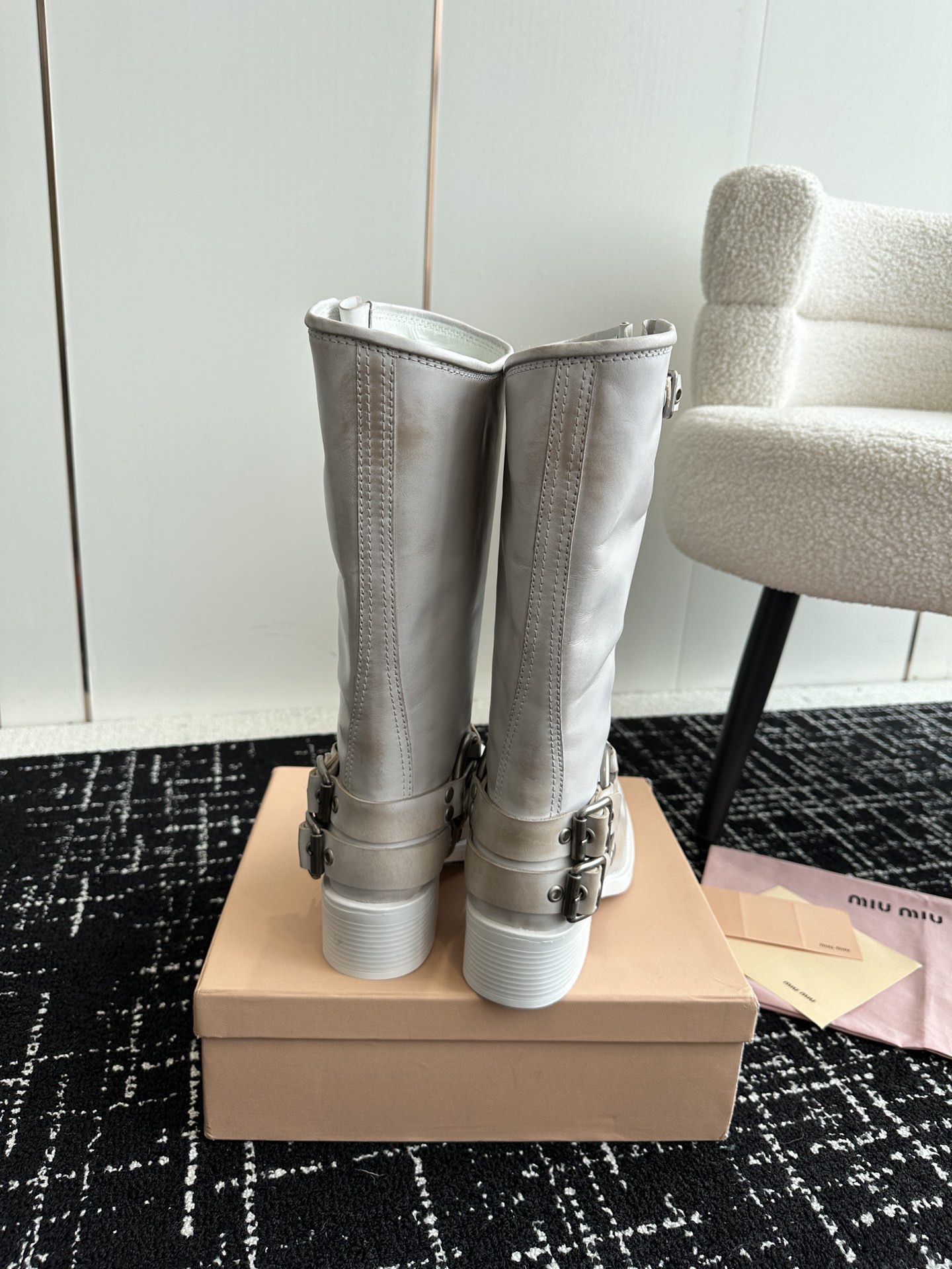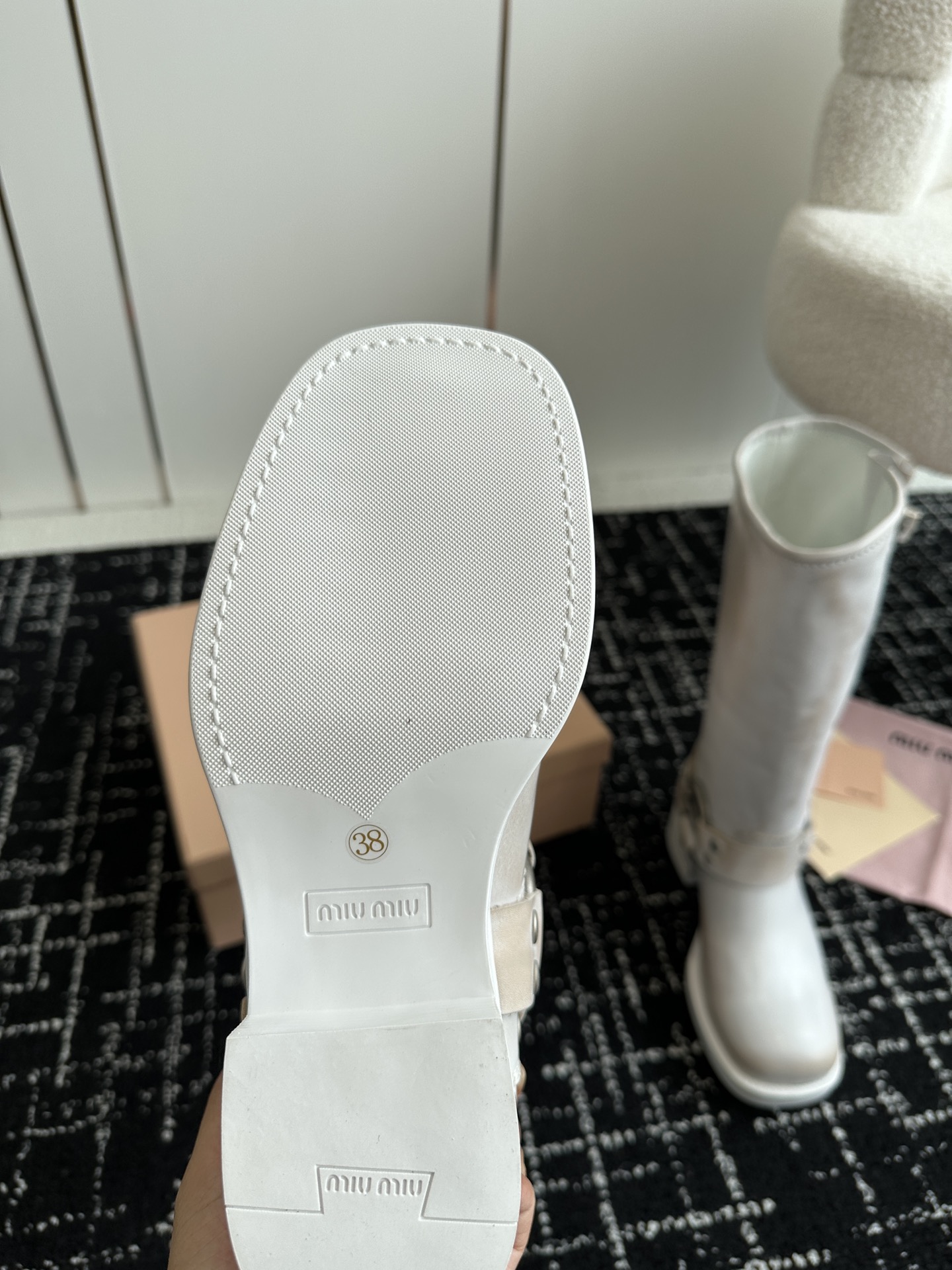 這款鞋子是AAAAA 1:1 質量(非常棒). 使用了和原版一模一樣的材料. 商標部分也保持了和繆繆/Miu Miu一樣. 圖片拍攝是實物鞋子拍攝, 您所收到的實物保證和我們圖片一模一樣.