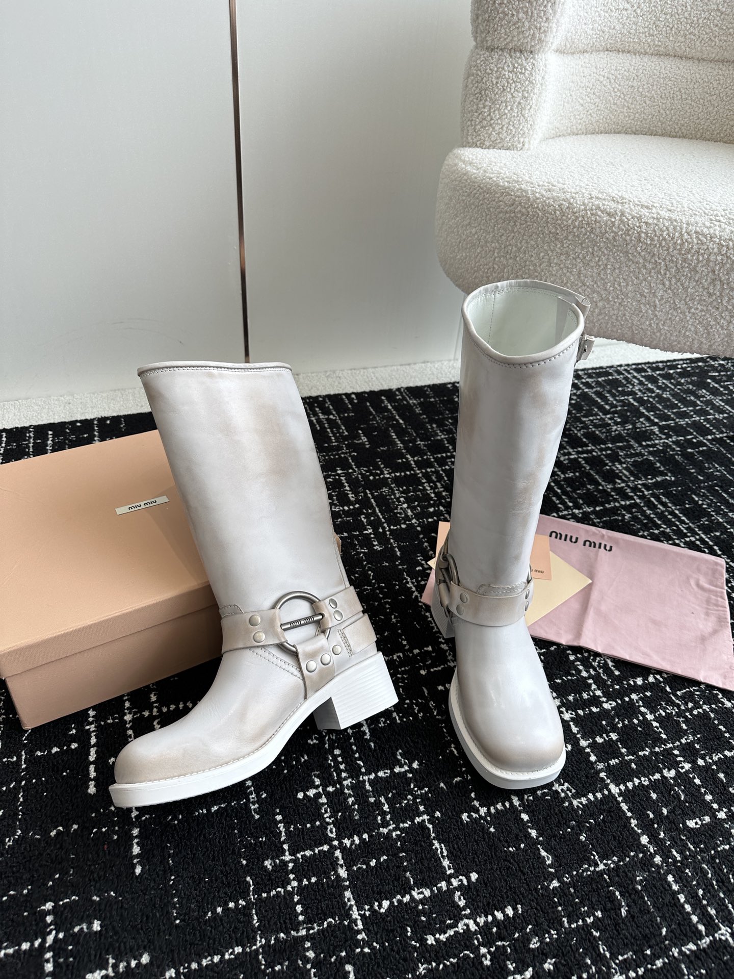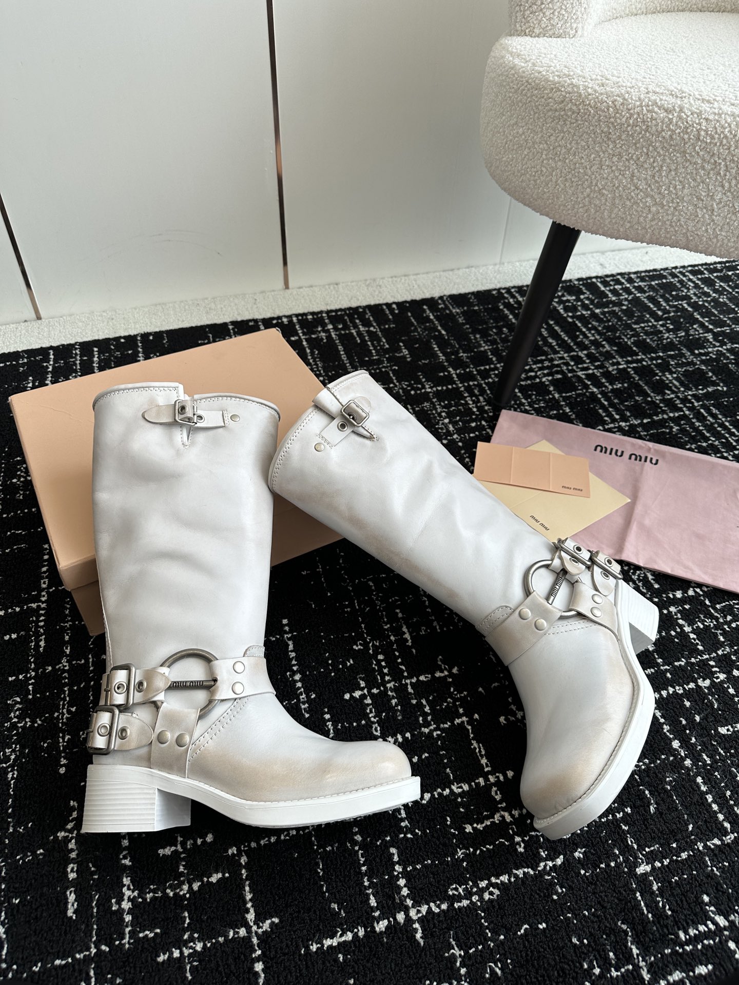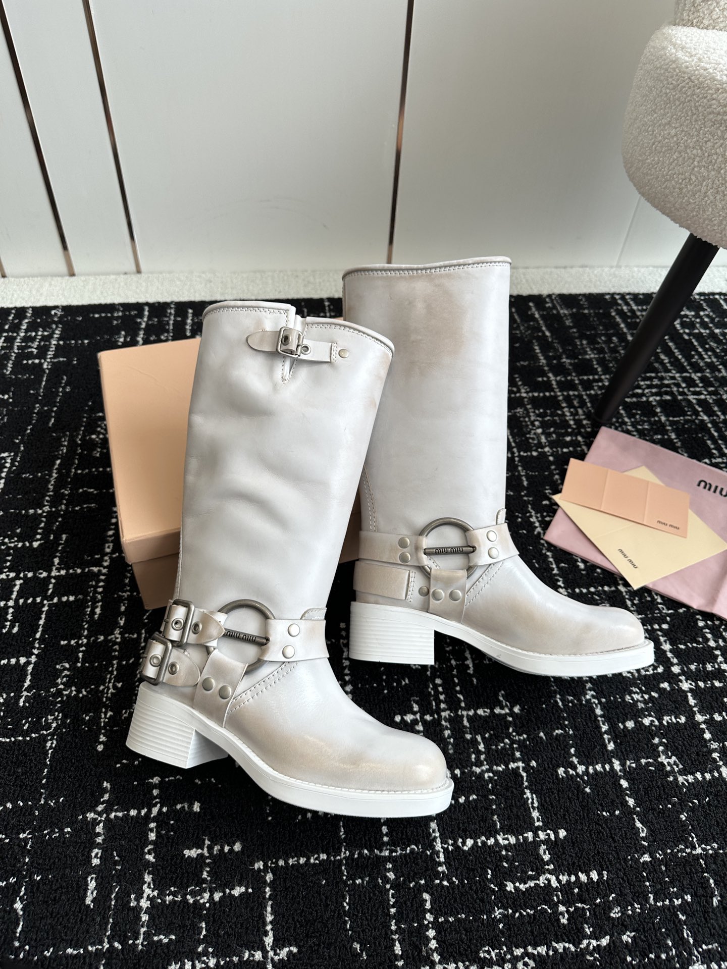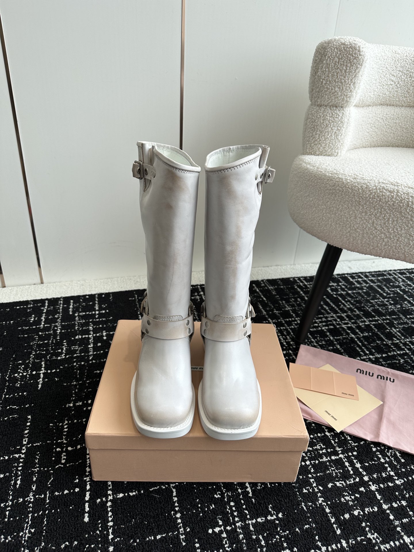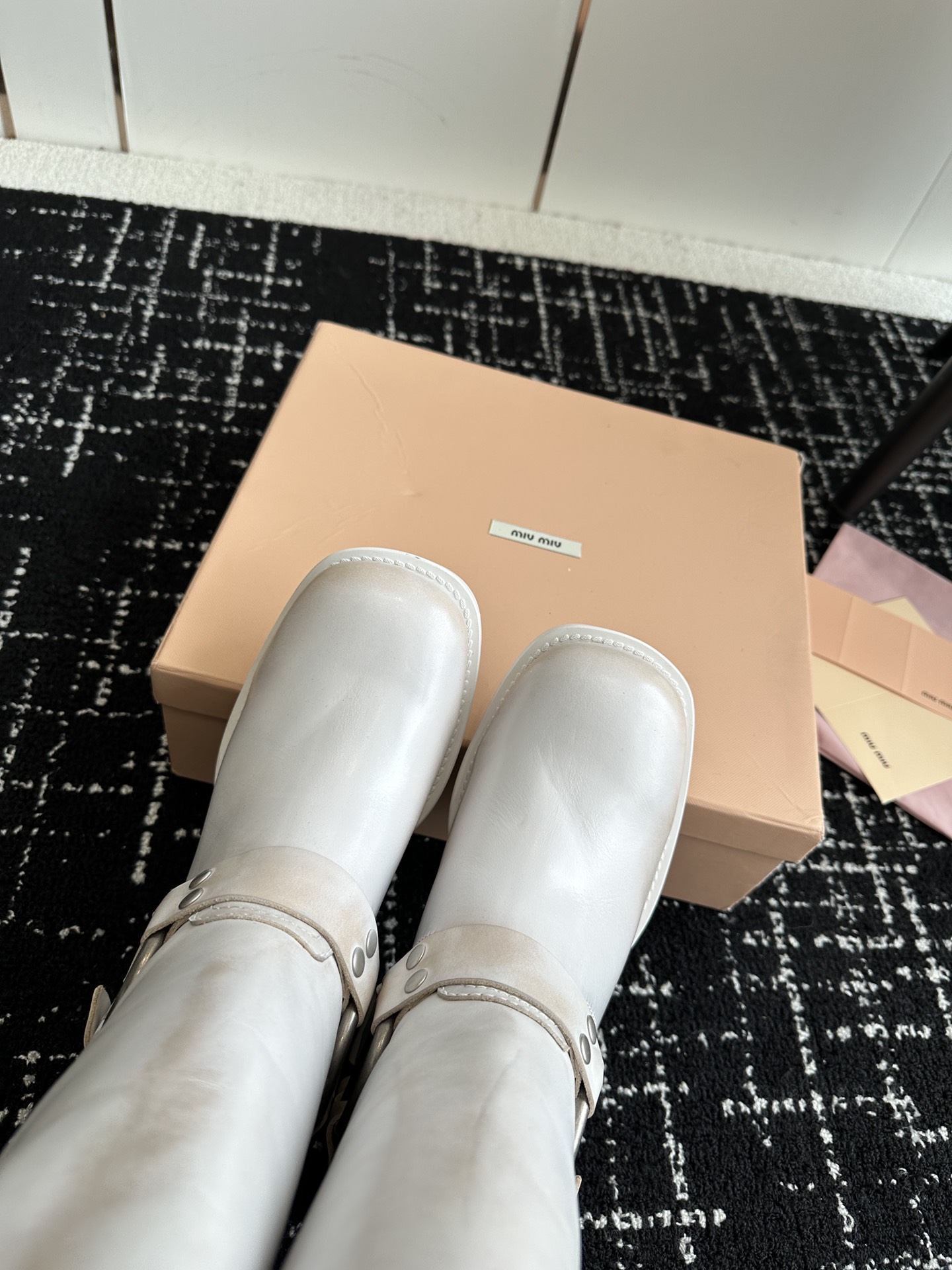 這款鞋子是AAAAA 1:1 質量(非常棒). 使用了和原版一模一樣的材料. 商標部分也保持了和繆繆/Miu Miu一樣. 圖片拍攝是實物鞋子拍攝, 您所收到的實物保證和我們圖片一模一樣.