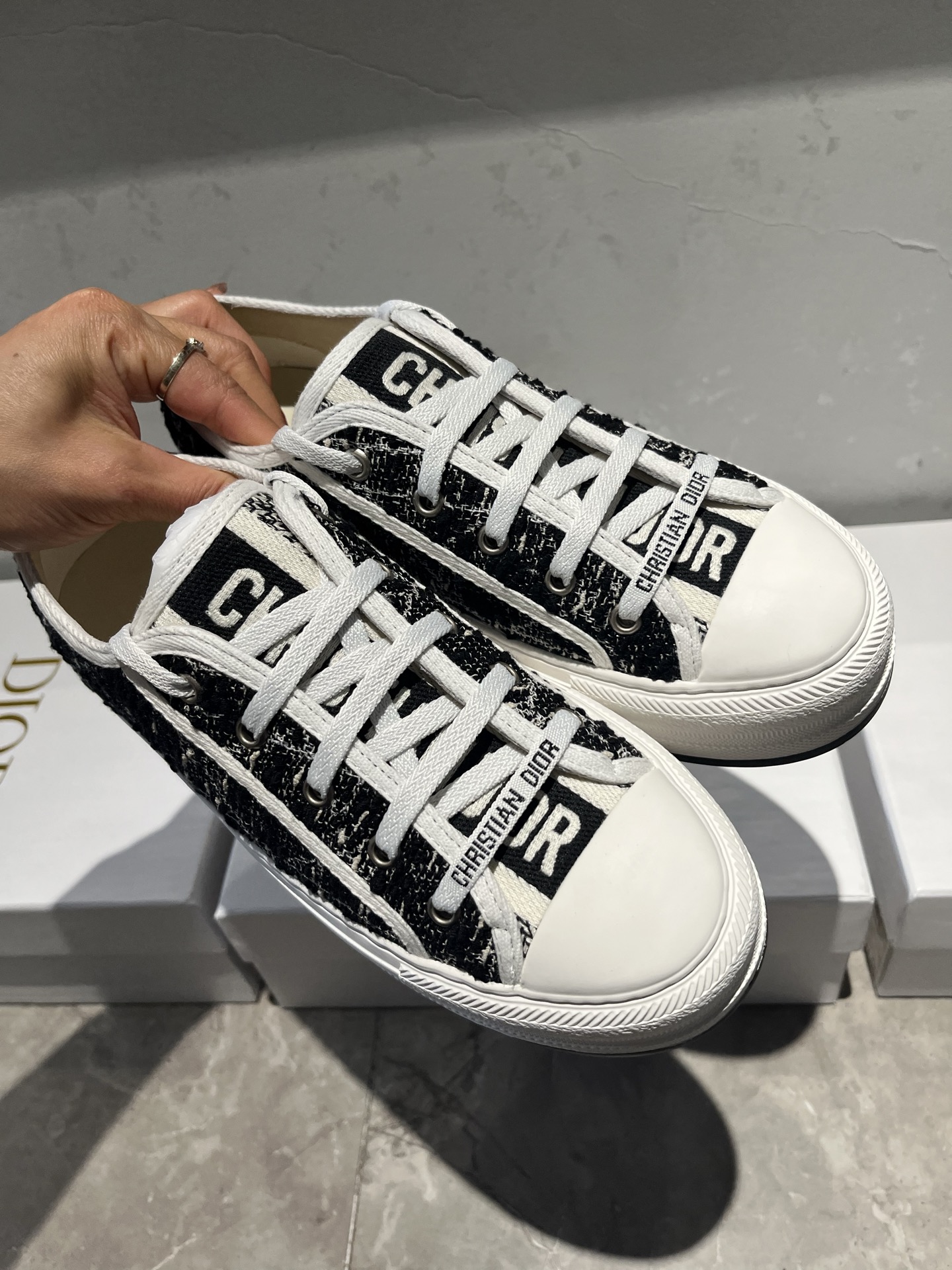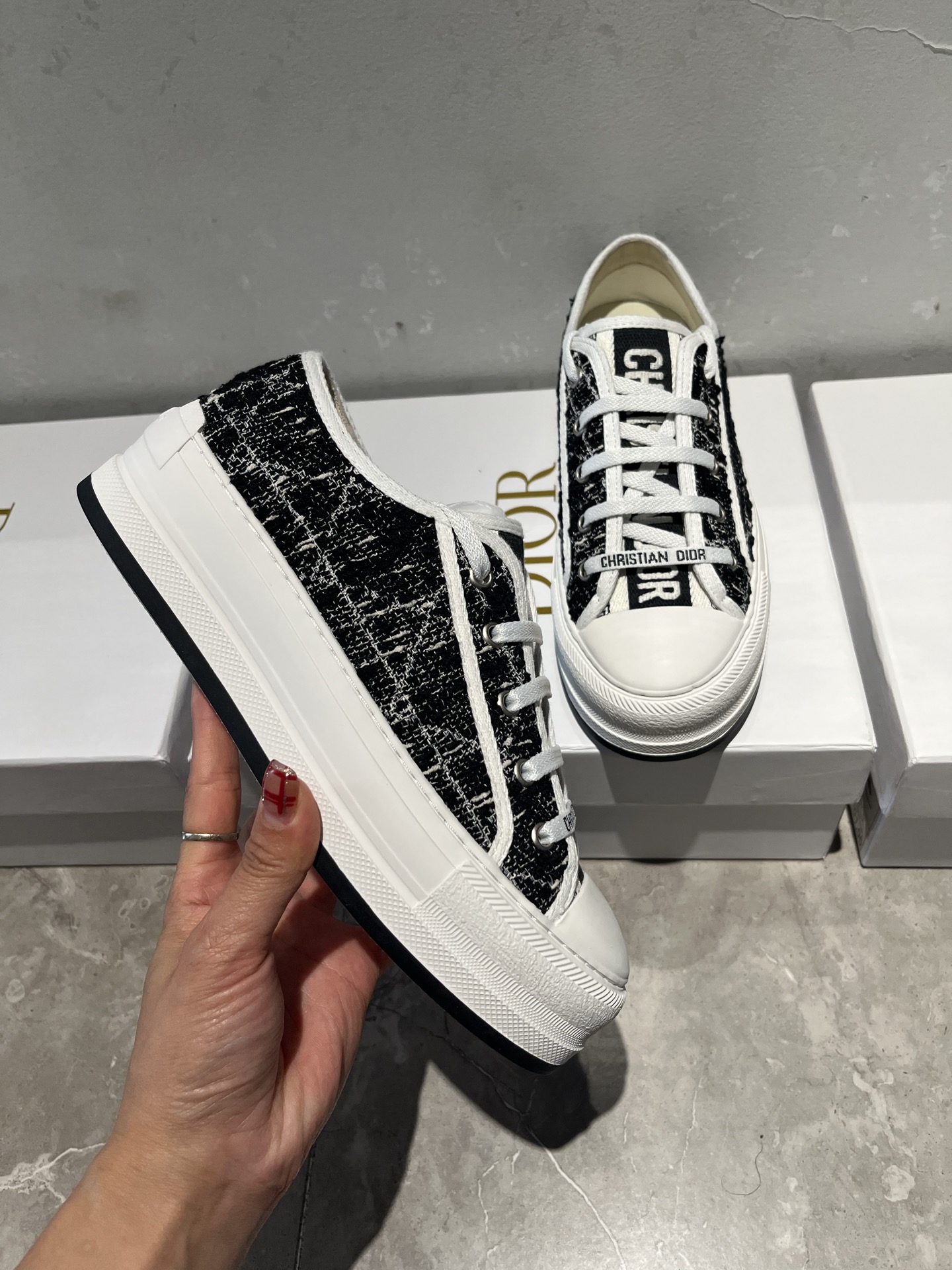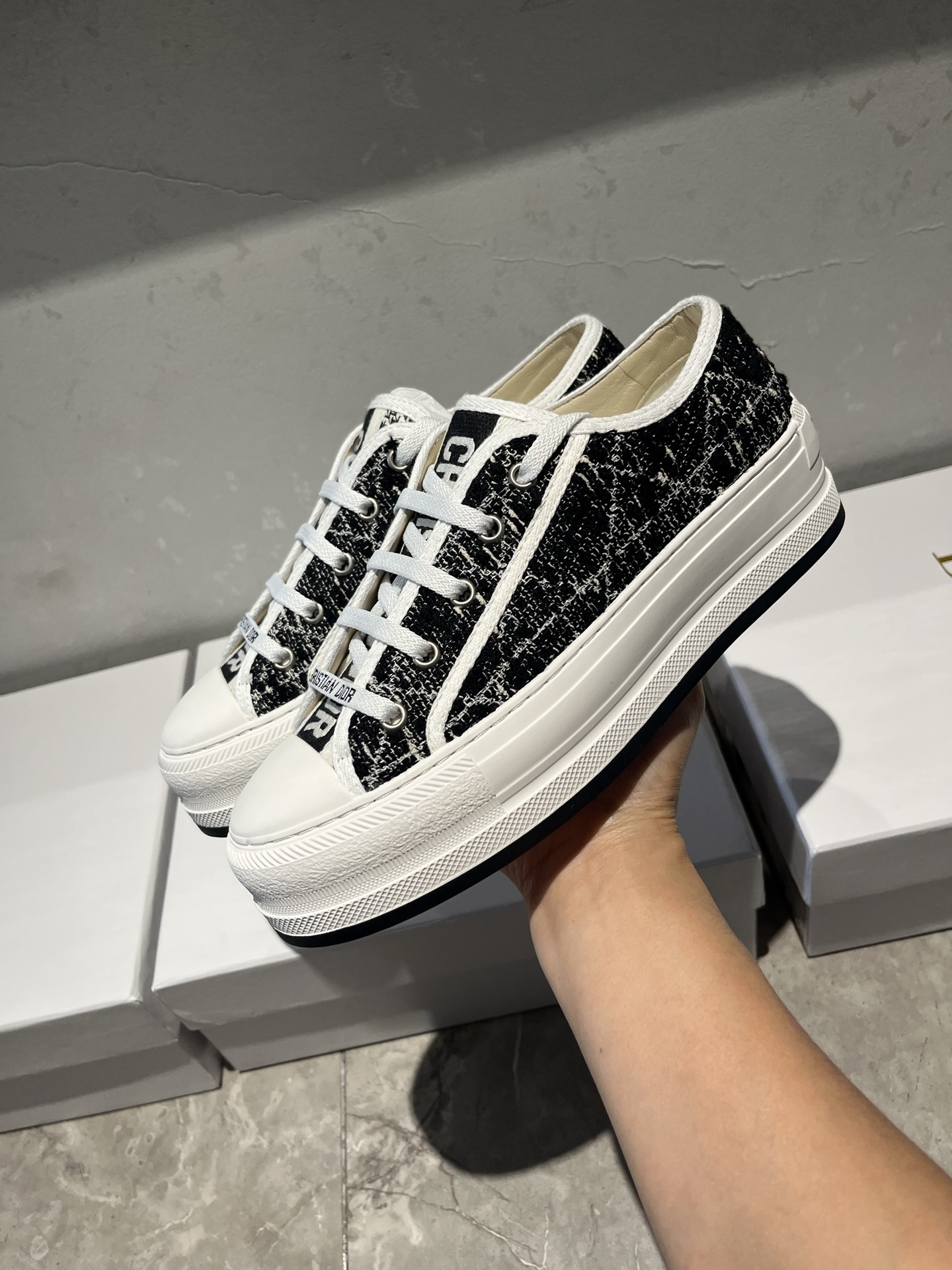 這款鞋子是AAAAA 1:1 質量(非常棒). 使用了和原版一模一樣的材料. 商標部分也保持了和迪奧/Dior一樣. 圖片拍攝是實物鞋子拍攝, 您所收到的實物保證和我們圖片一模一樣.