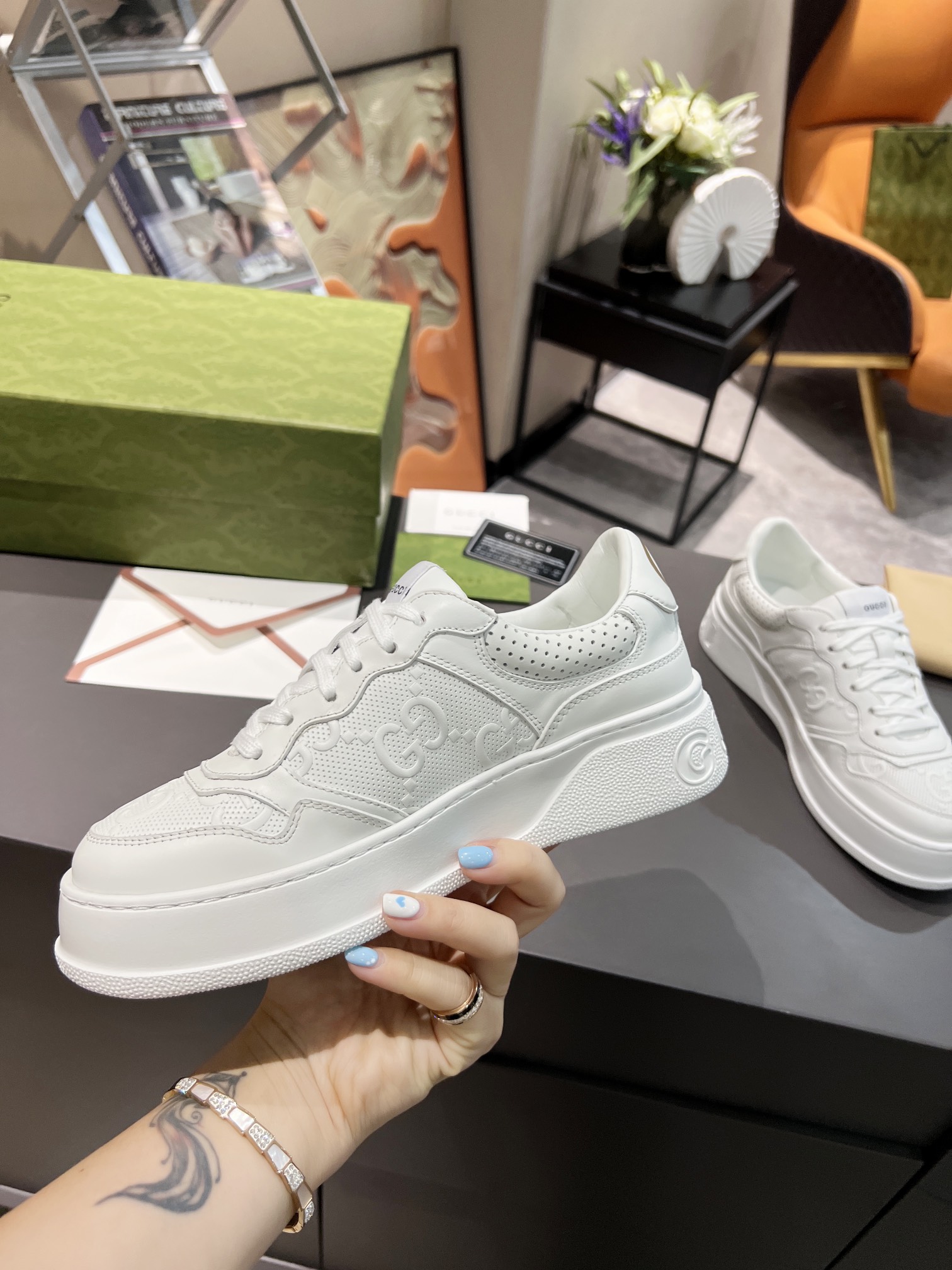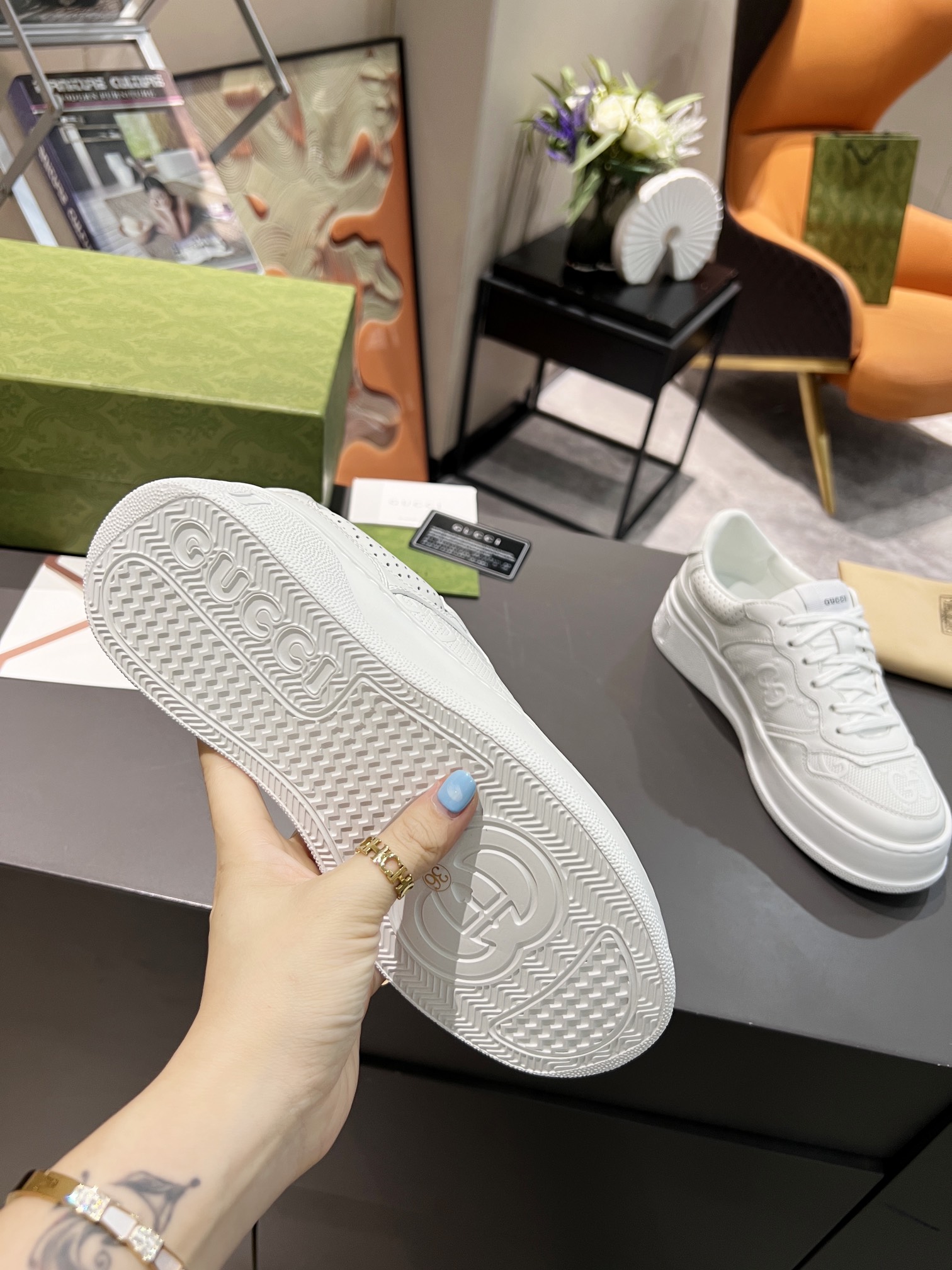 這款鞋子是AAAAA 1:1 質量(非常棒). 使用了和原版一模一樣的材料. 商標部分也保持了和古奇/Gucci一樣. 圖片拍攝是實物鞋子拍攝, 您所收到的實物保證和我們圖片一模一樣.