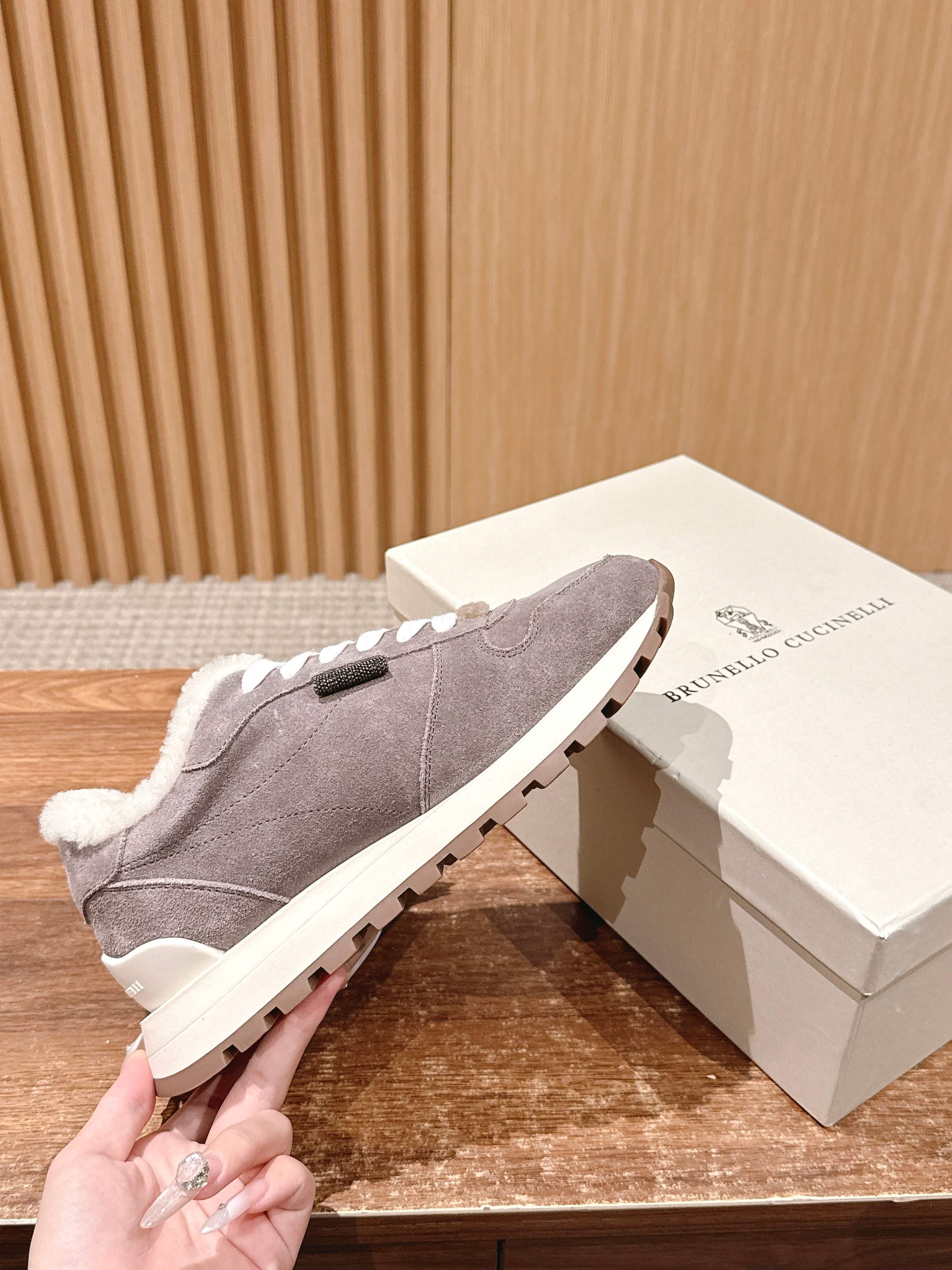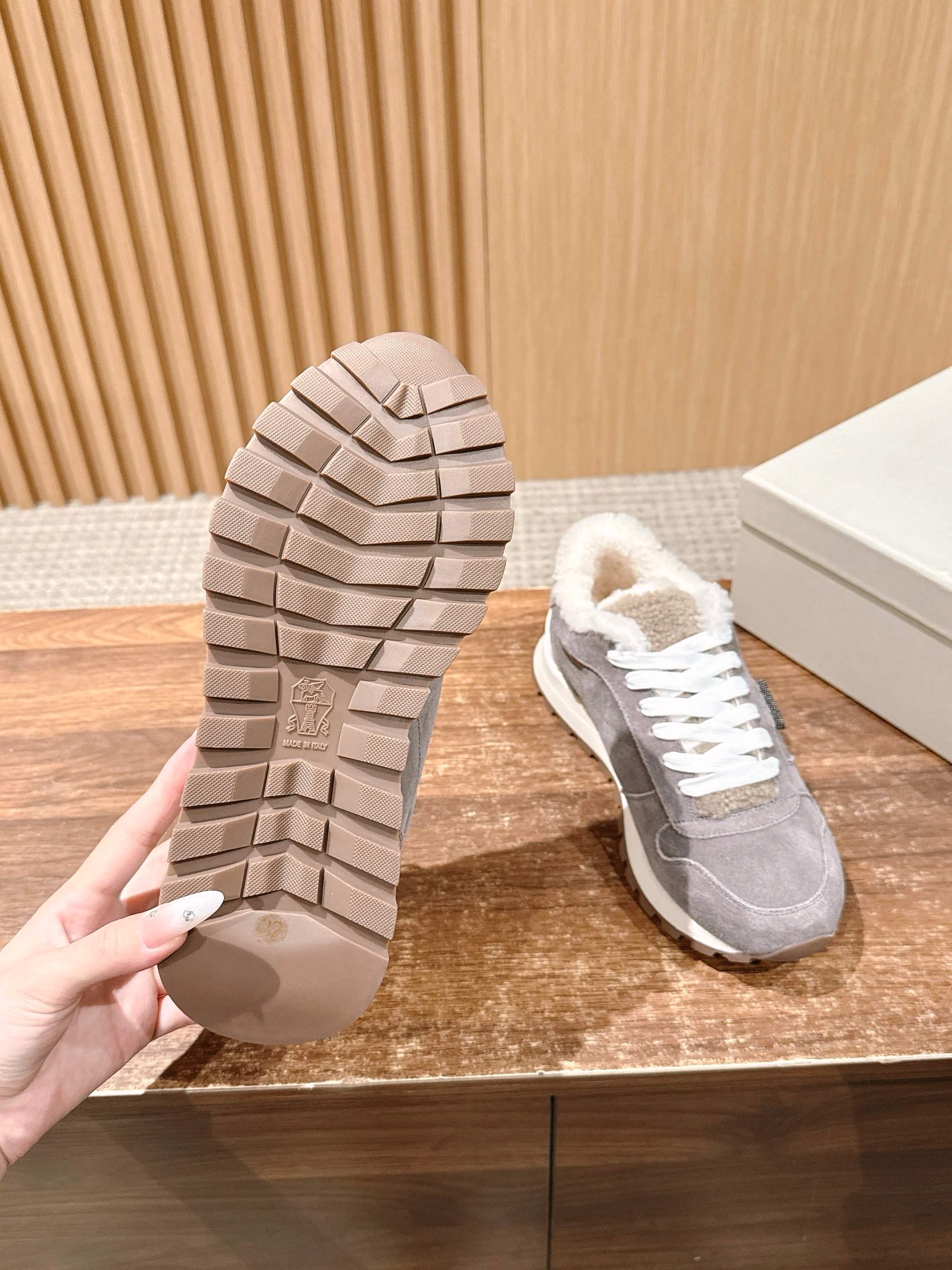 這款鞋子是AAAAA 1:1 質量(非常棒). 使用了和原版一模一樣的材料. 商標部分也保持了和Brunello Cucinelli一樣. 圖片拍攝是實物鞋子拍攝, 您所收到的實物保證和我們圖片一模一樣.