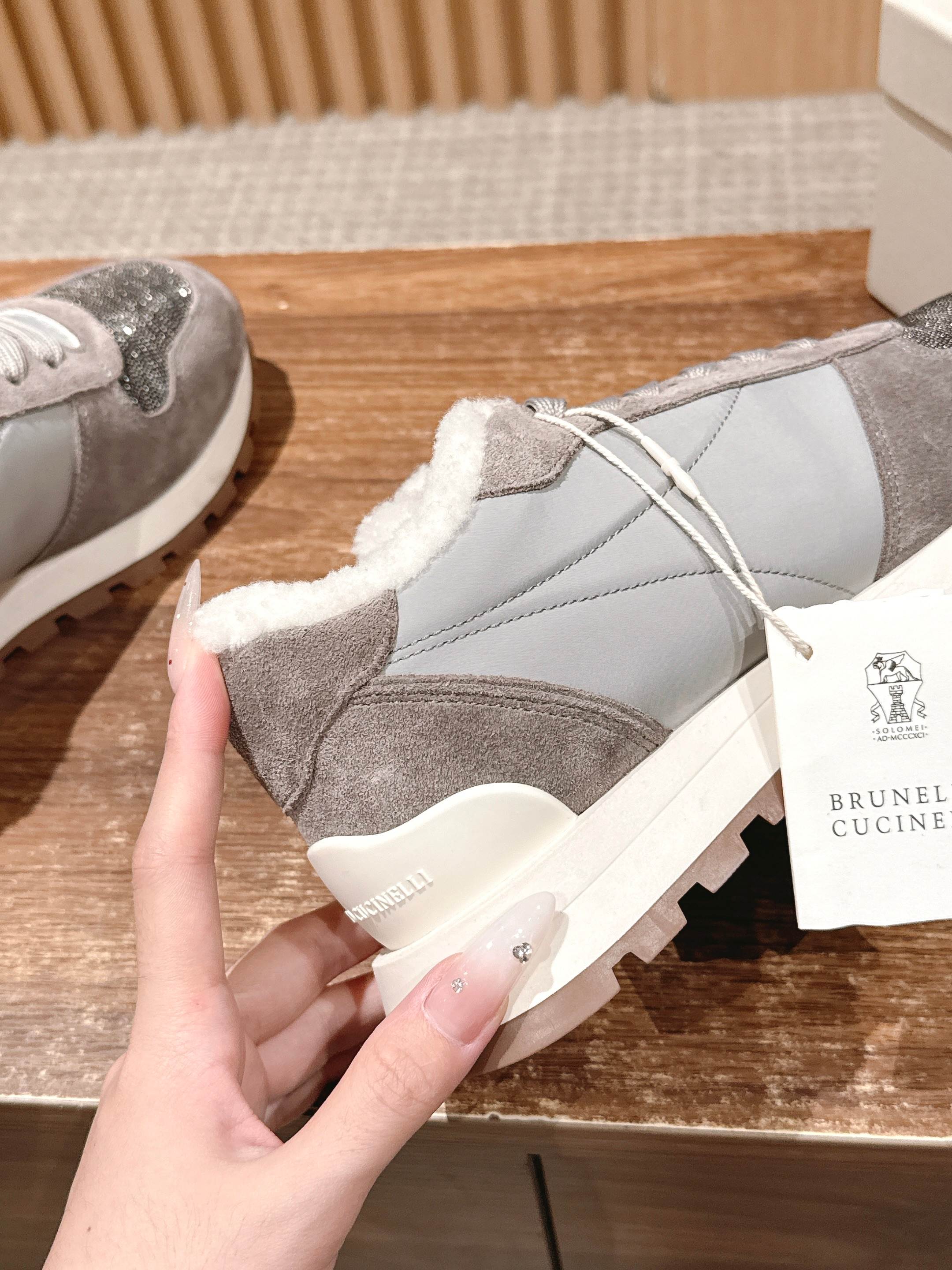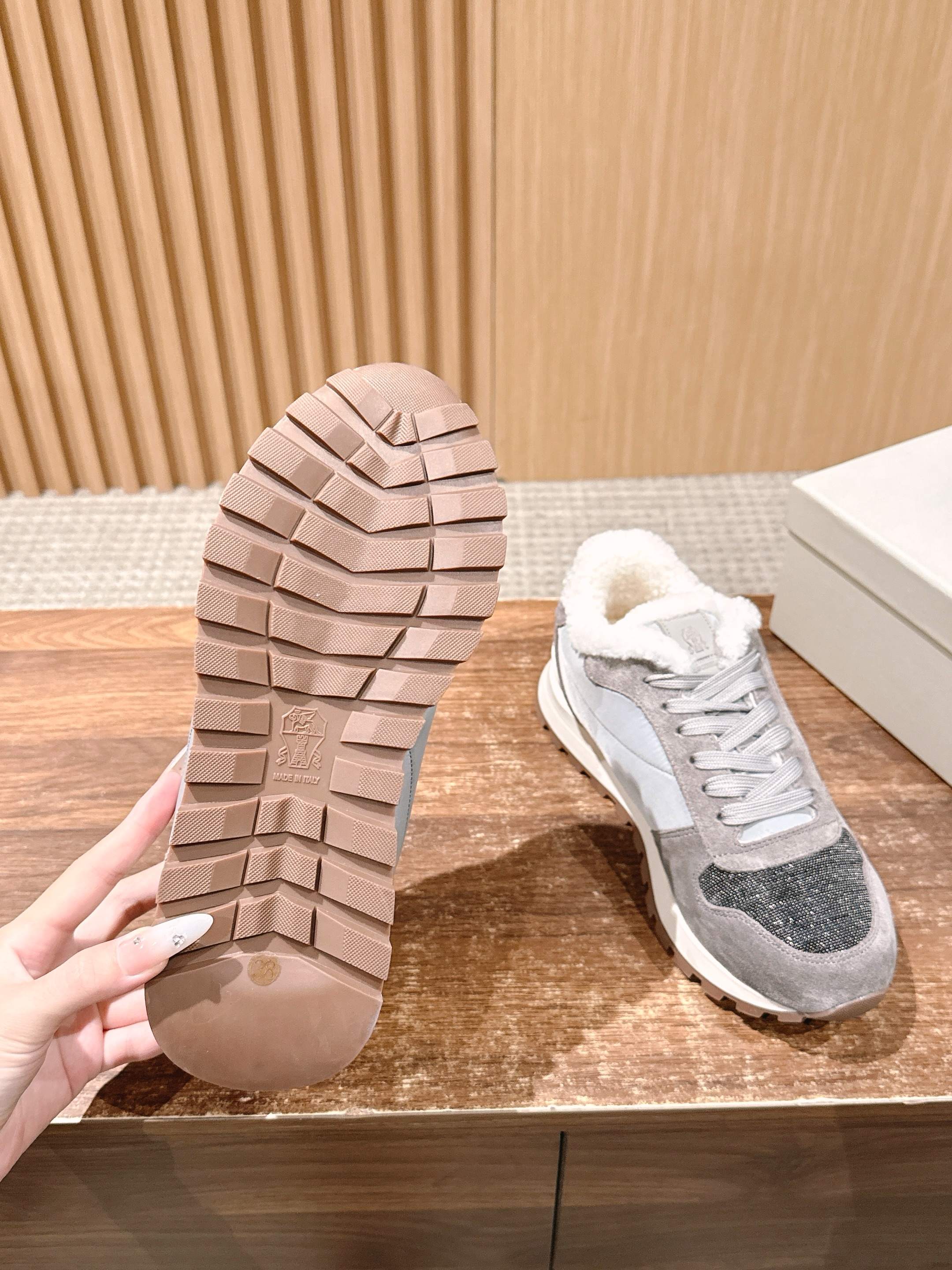 這款鞋子是AAAAA 1:1 質量(非常棒). 使用了和原版一模一樣的材料. 商標部分也保持了和Brunello Cucinelli一樣. 圖片拍攝是實物鞋子拍攝, 您所收到的實物保證和我們圖片一模一樣.