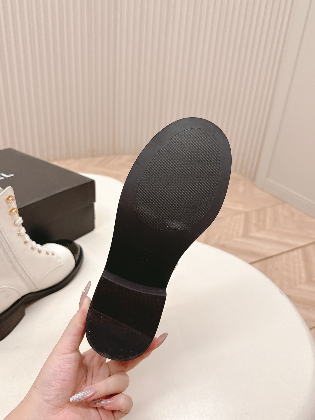 這款鞋子是AAAAA 1:1 質量(非常棒). 使用了和原版一模一樣的材料. 商標部分也保持了和香奈兒/Chanel一樣. 圖片拍攝是實物鞋子拍攝, 您所收到的實物保證和我們圖片一模一樣.