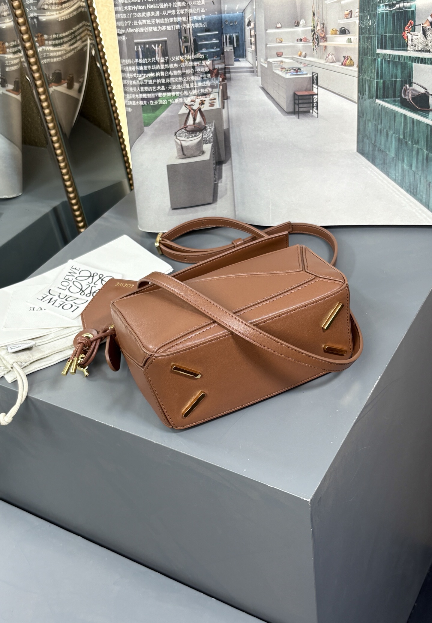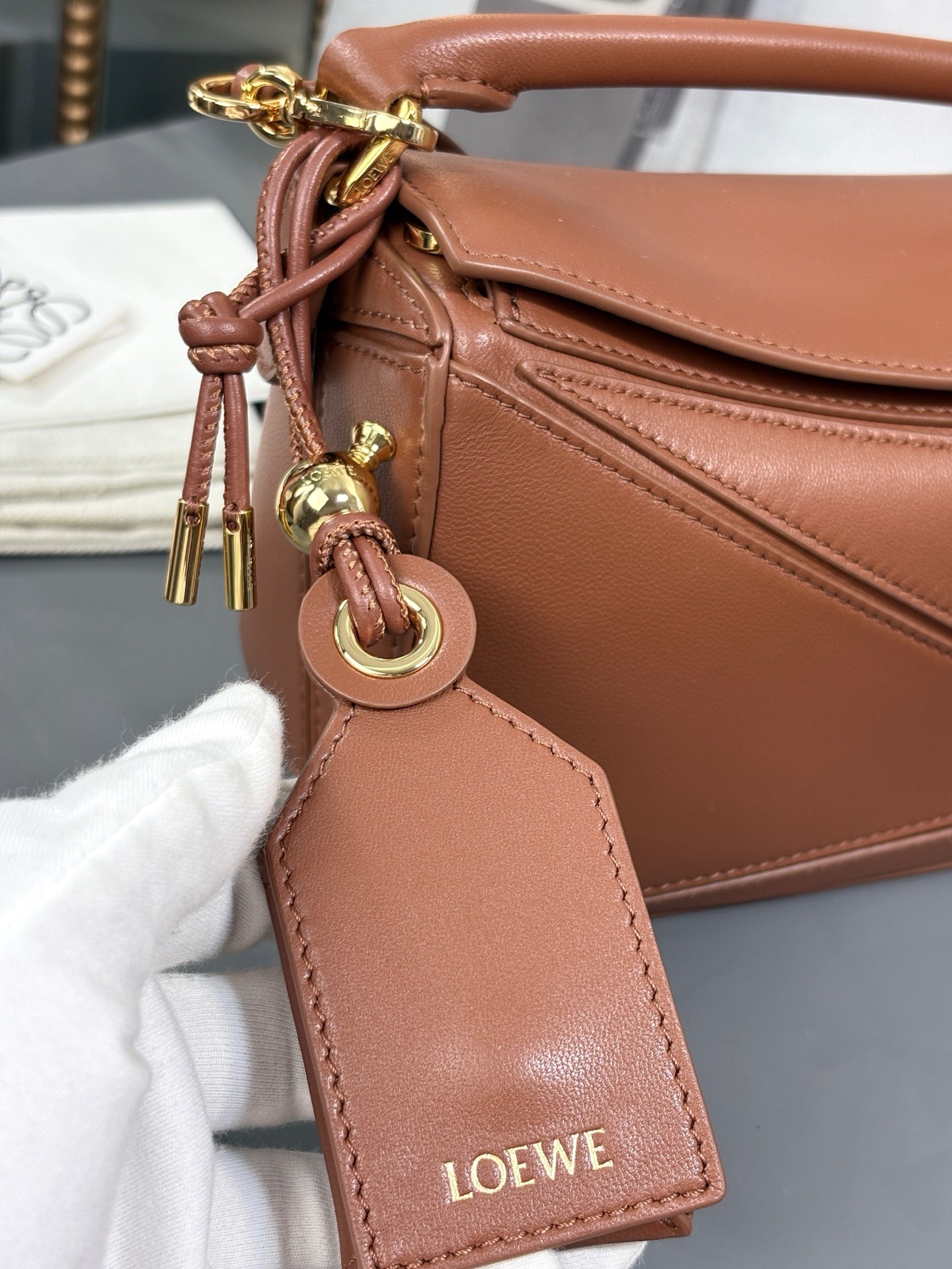 這款包包是AAAAA 1:1 質量(非常棒). 使用了和原版一模一樣的材料. 商標部分也保持了和Loewe一樣. 圖片拍攝是實物包包拍攝, 您所收到的實物保證和我們圖片一模一樣.