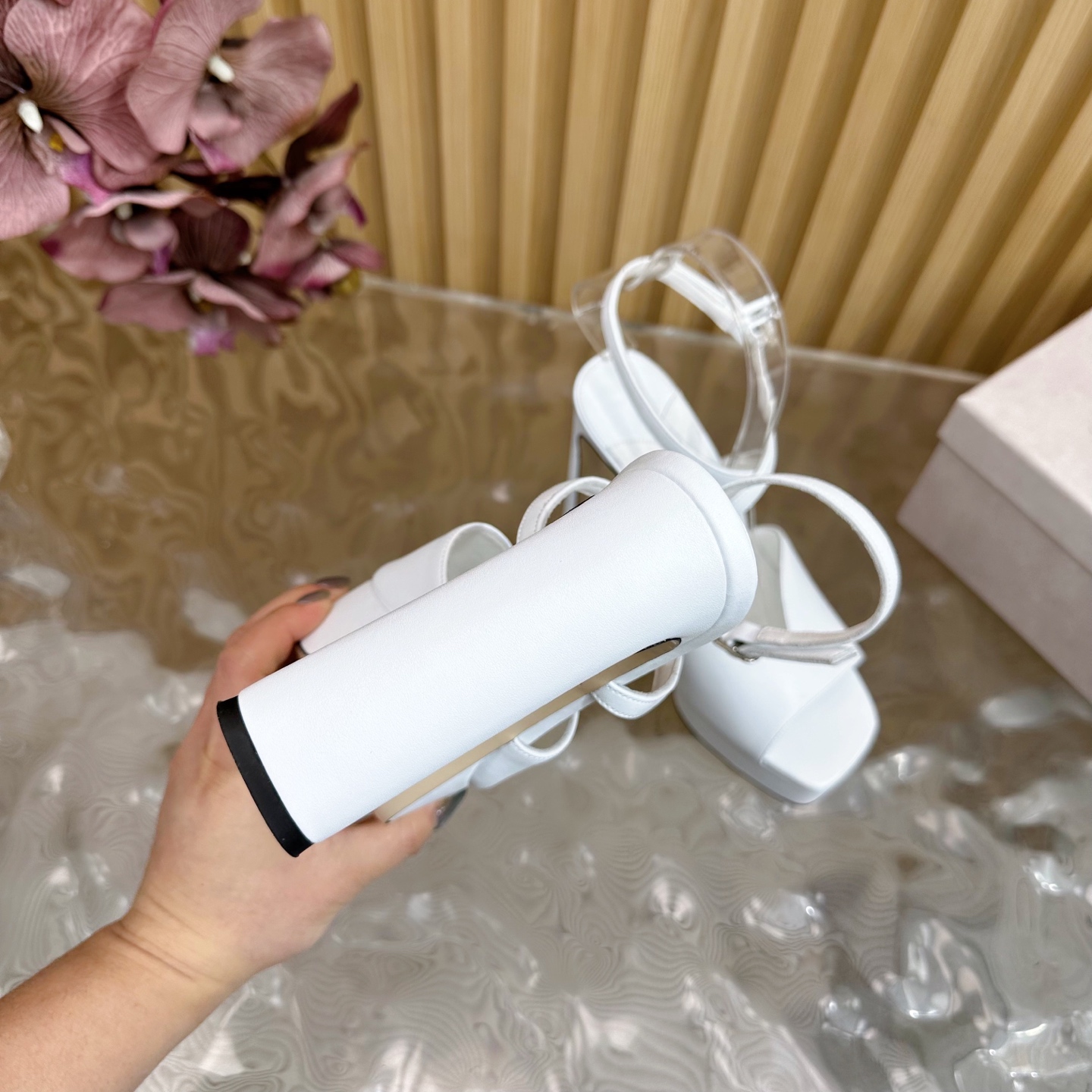 這款鞋子是AAAAA 1:1 質量(非常棒). 使用了和原版一模一樣的材料. 商標部分也保持了和吉米喬/JIMMY CHOO一樣. 圖片拍攝是實物鞋子拍攝, 您所收到的實物保證和我們圖片一模一樣.