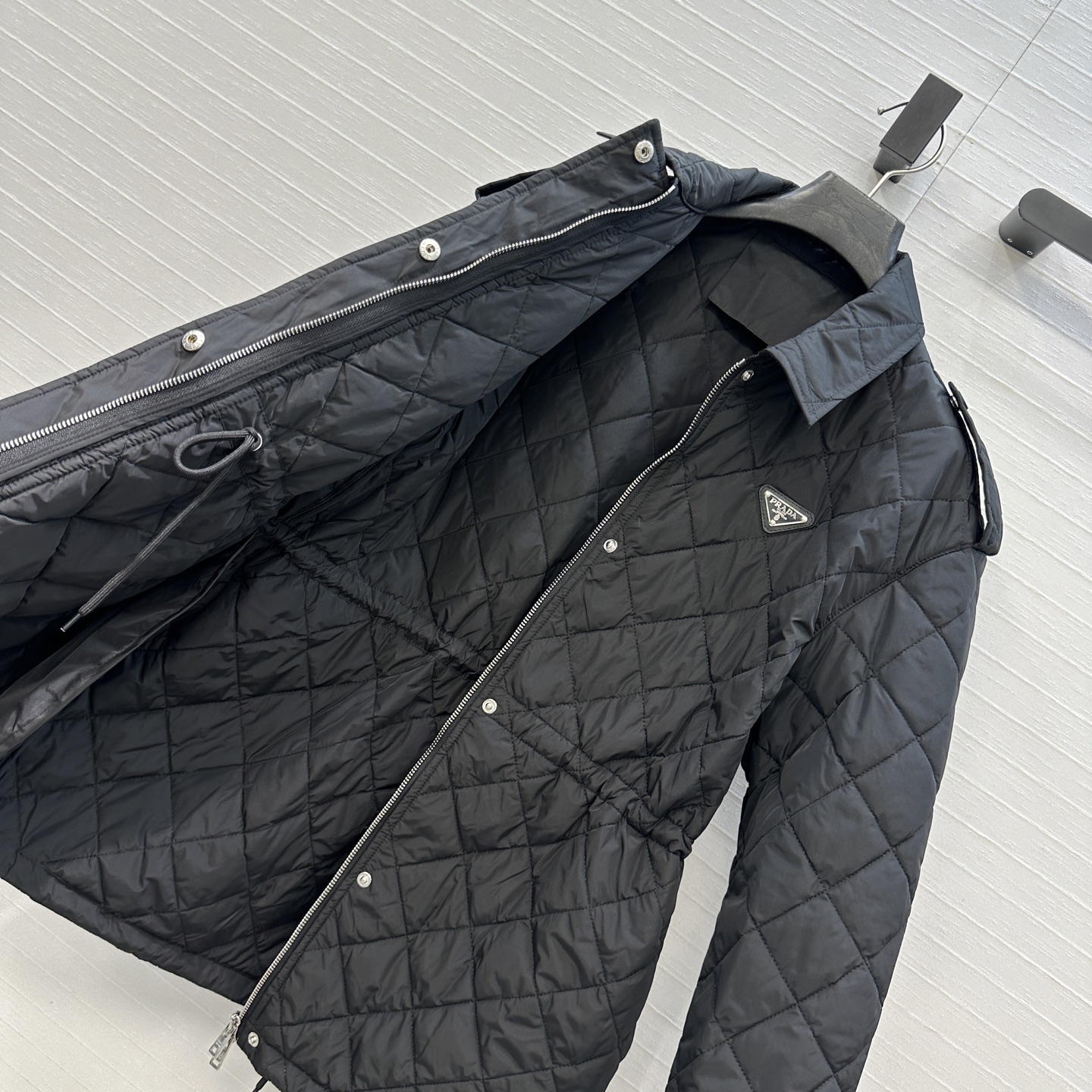 這款衣服是AAAAA 1:1 質量(非常棒). 使用了和原版一模一樣的材料. 商標部分也保持了和普拉達/Prada一樣. 圖片拍攝是實物衣服拍攝, 您所收到的實物保證和我們圖片一模一樣.