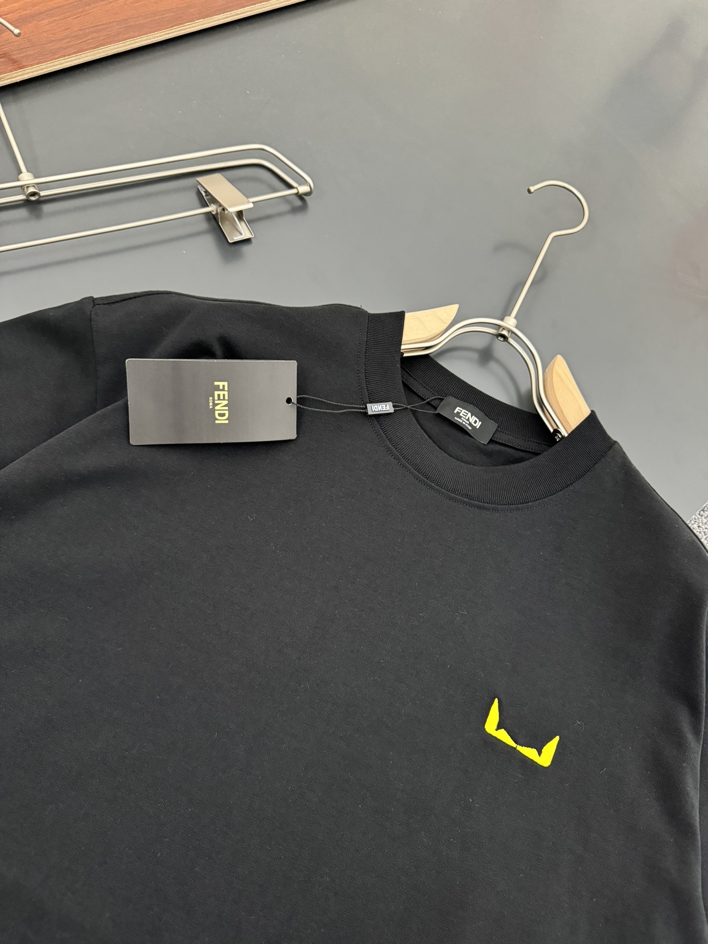 這款衣服是AAAAA 1:1 質量(非常棒). 使用了和原版一模一樣的材料. 商標部分也保持了和芬迪/Fendi一樣. 圖片拍攝是實物衣服拍攝, 您所收到的實物保證和我們圖片一模一樣.